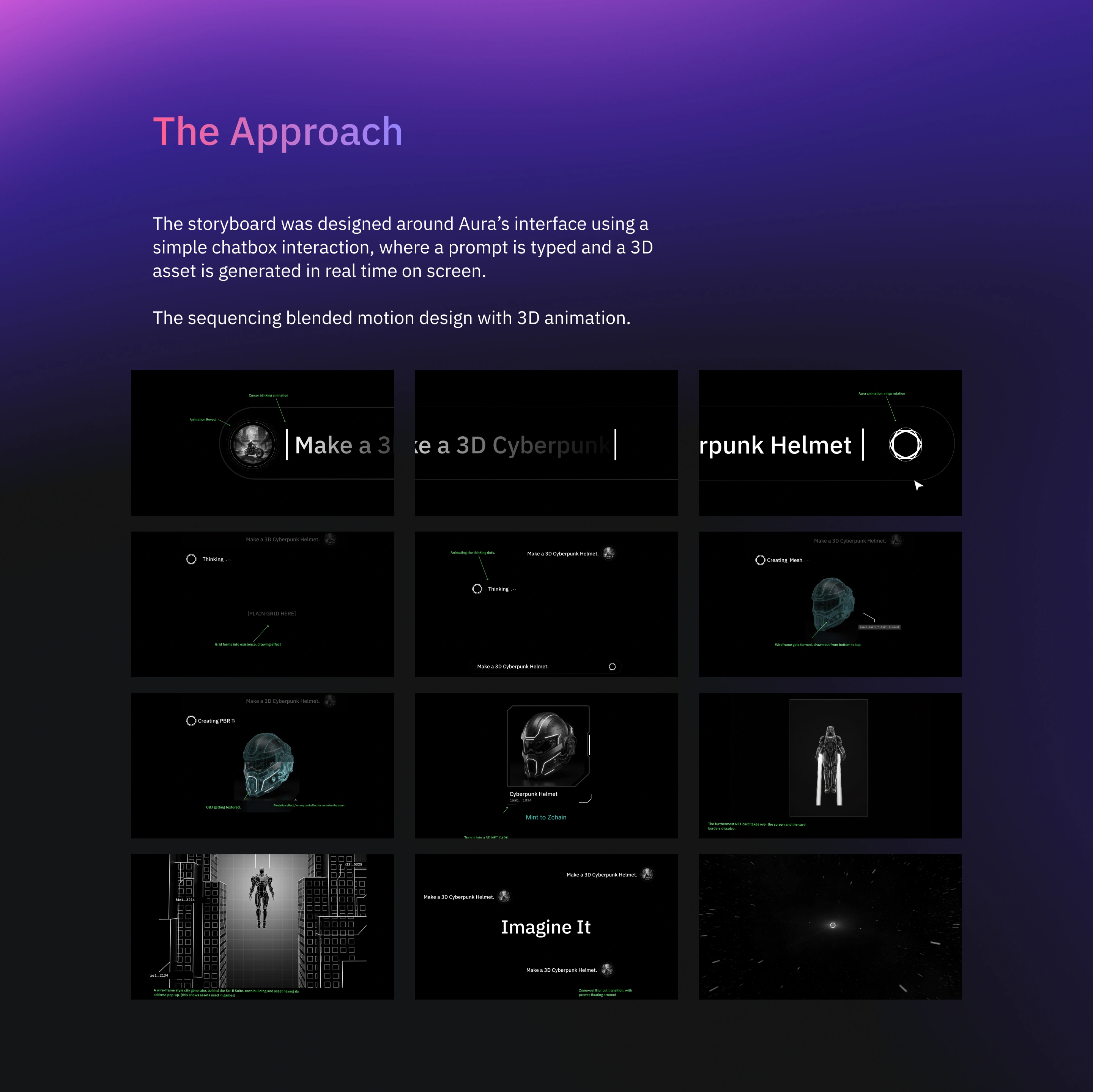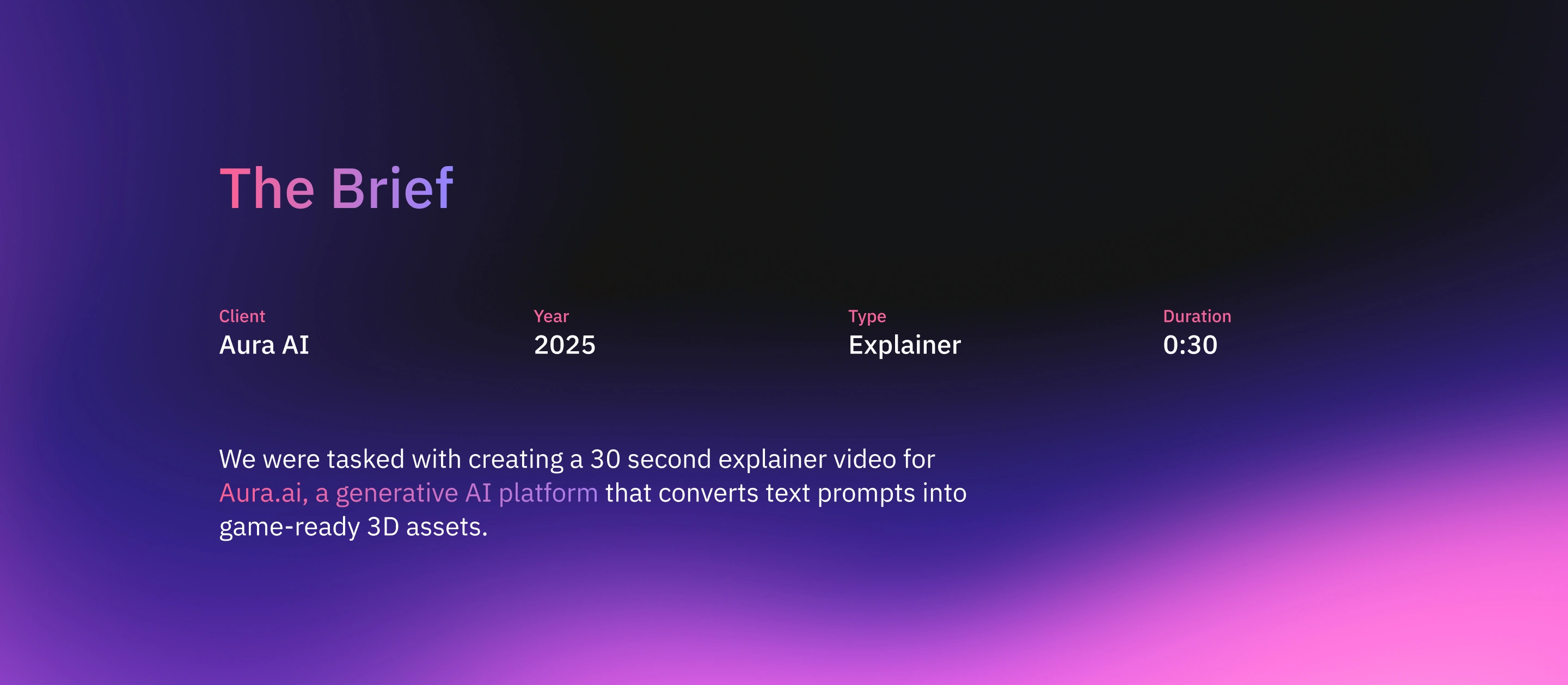 Launch / Explainer video for Aura.ai, a generative AI platform that converts text prompts into game-ready 3D assets.