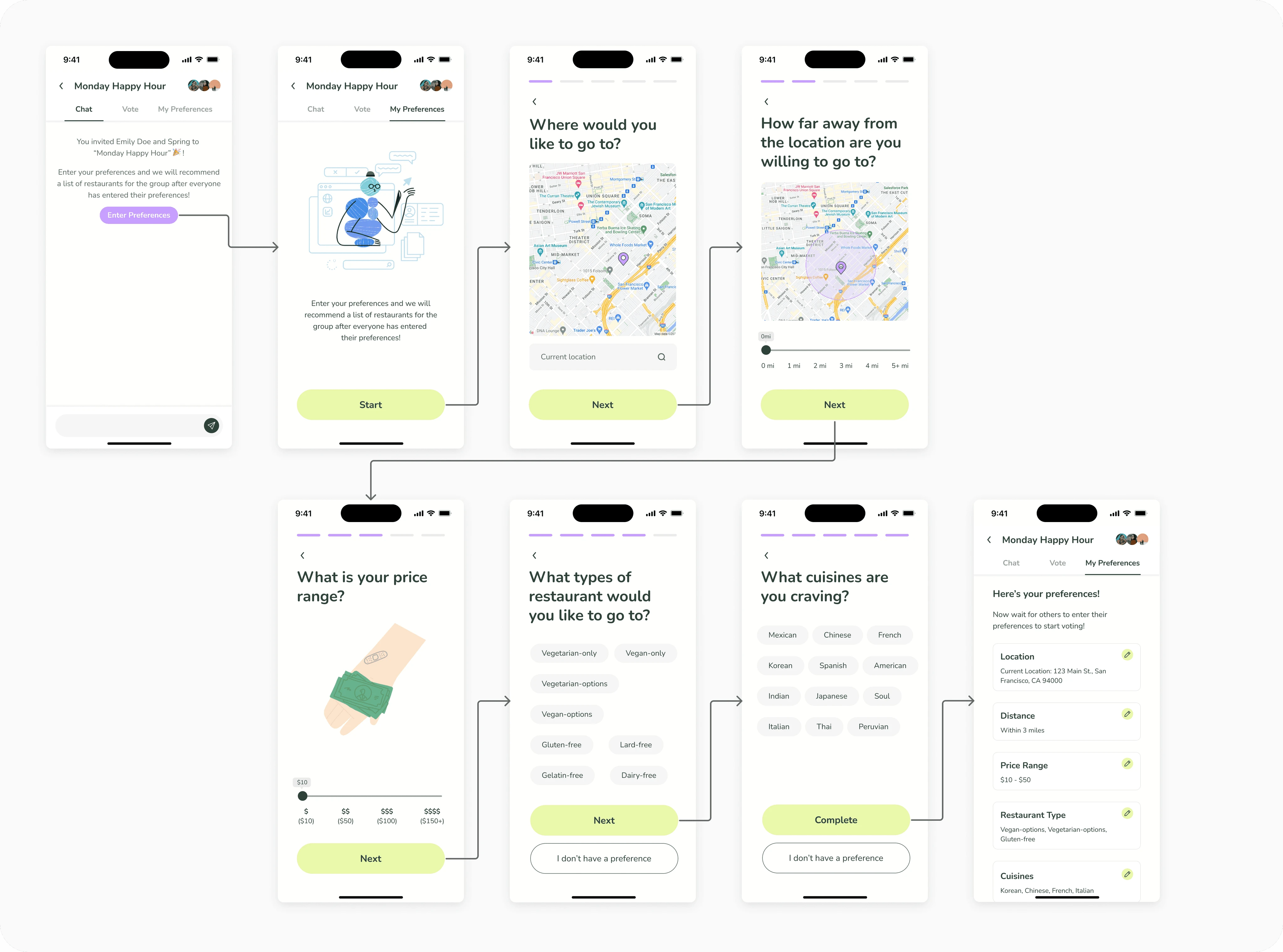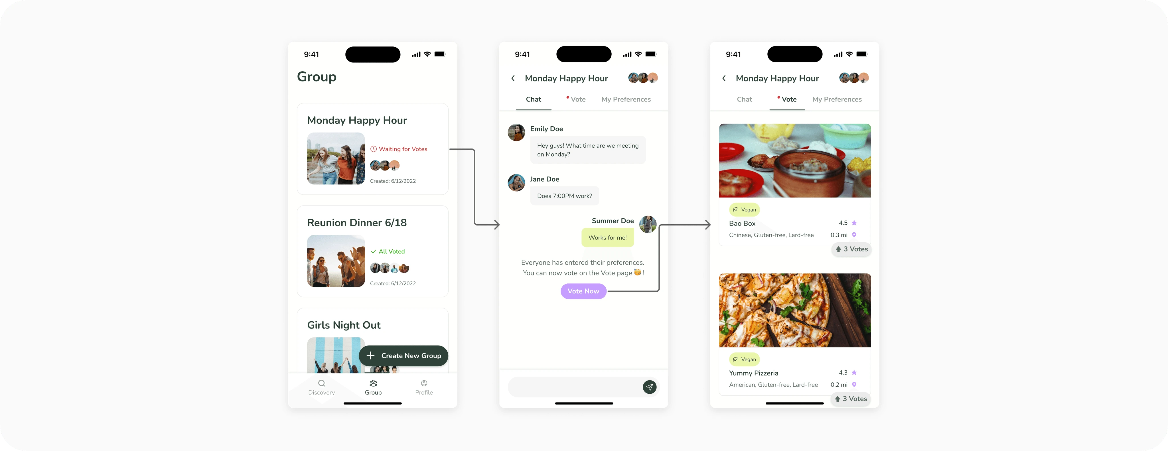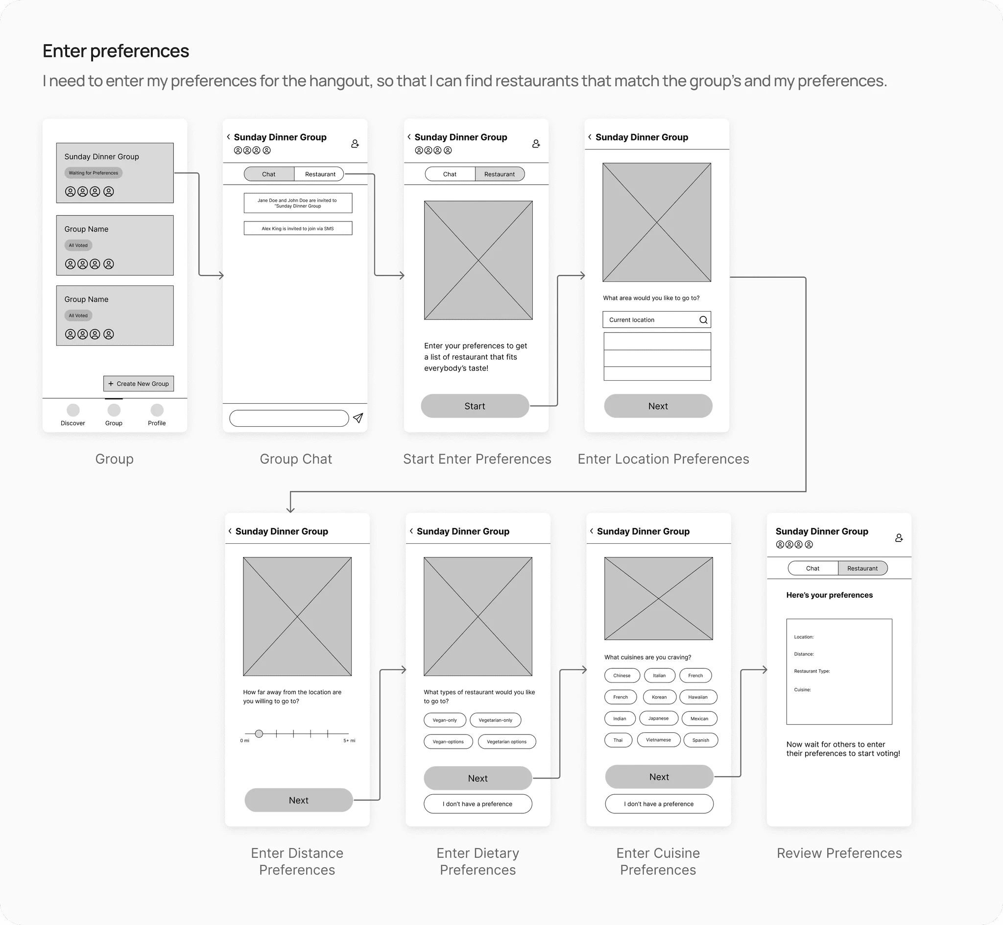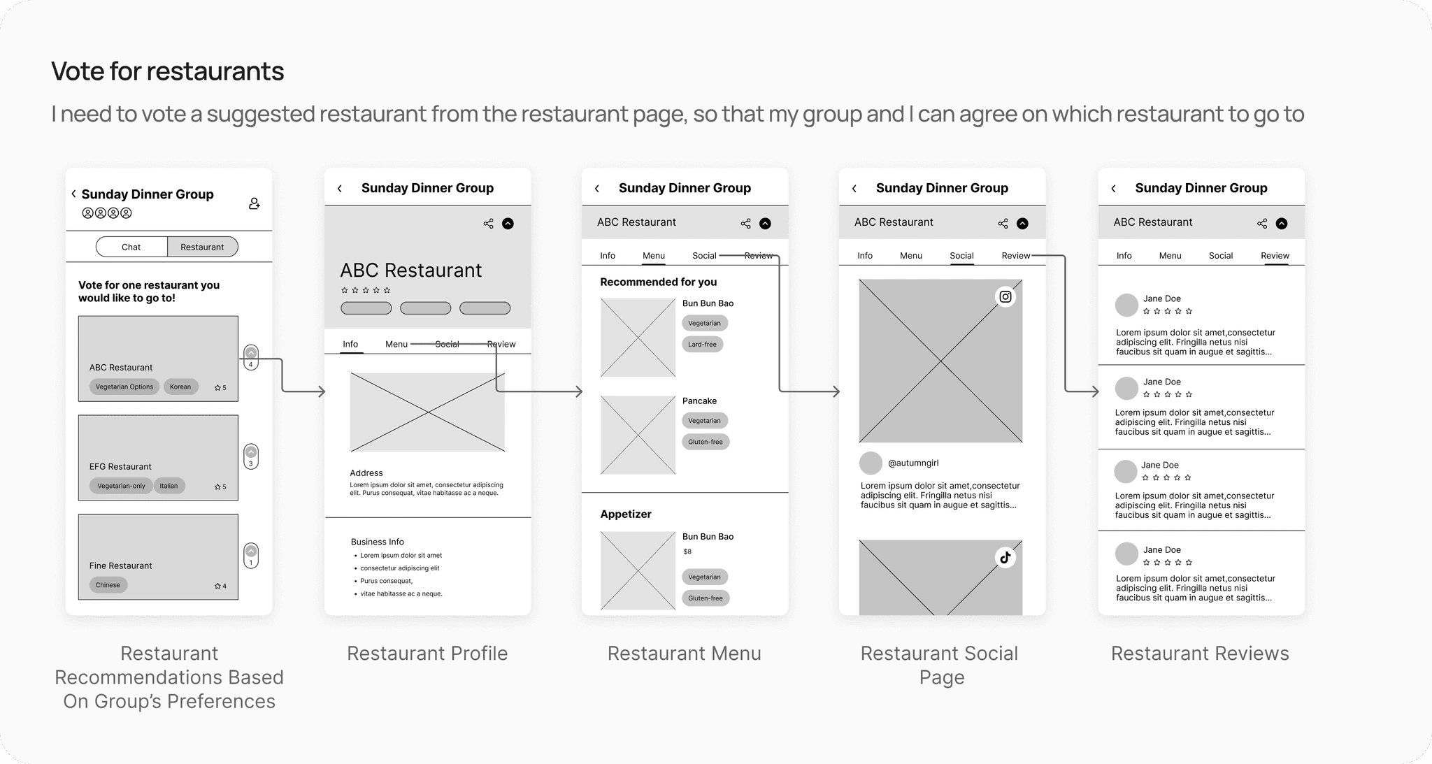 Users had difficulty understanding the purpose of the "Restaurant" tab, which is where they can enter preferences and vote for restaurants. To address this, I separated the two tabs and provided clear labels to help users easily locate and perform the desired actions.