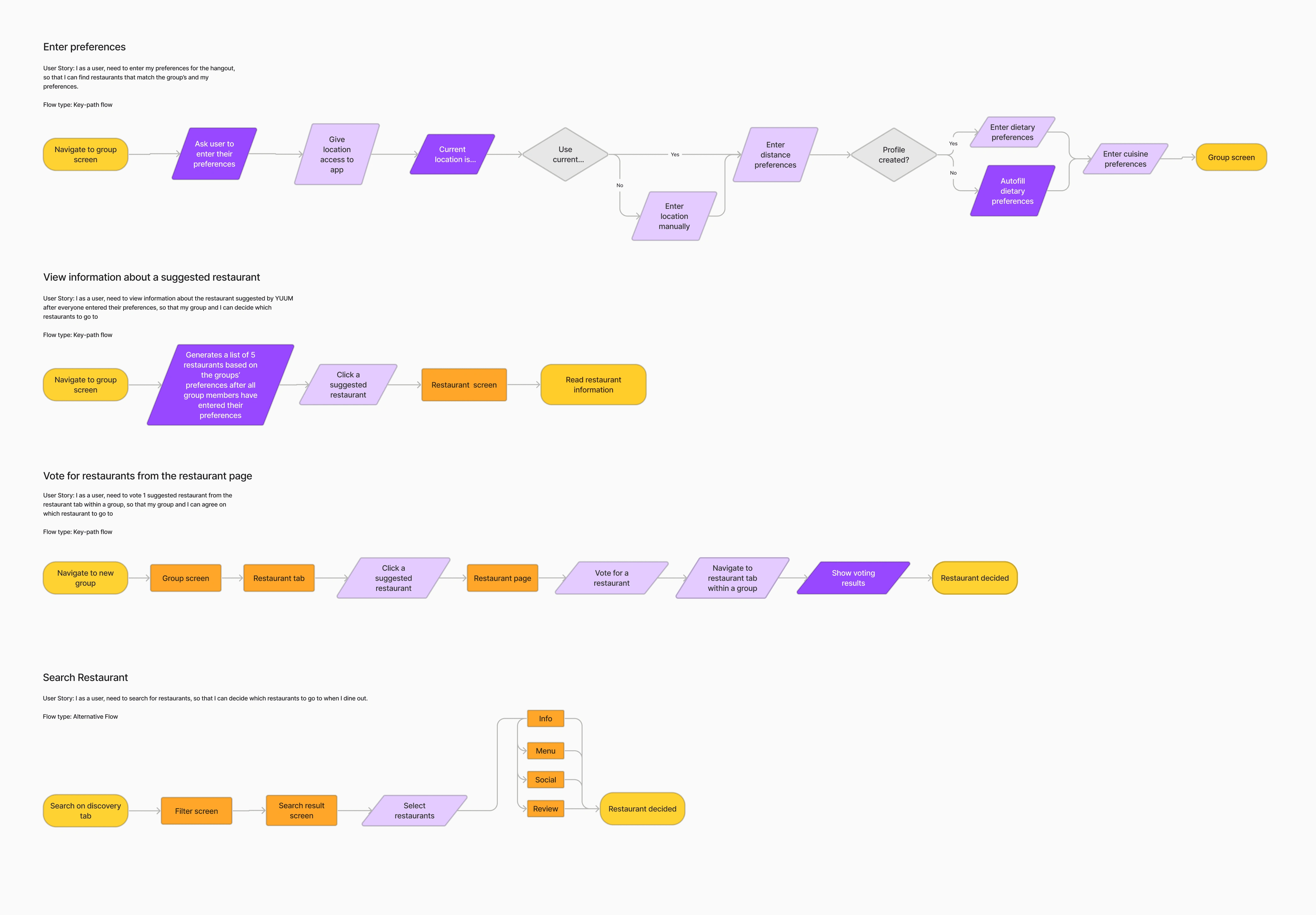 To visualize how users would accomplish their goals, I created user flows based on the proposed features.