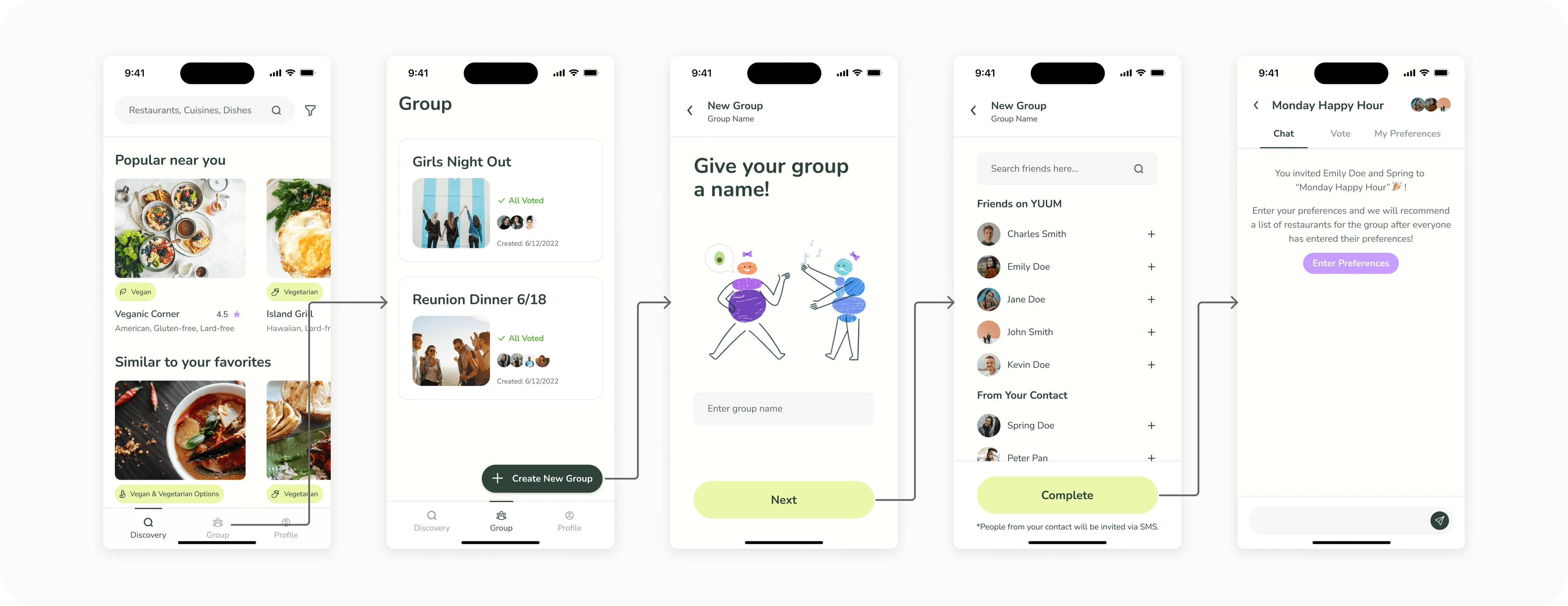 YUUM is an imagined product that helps vegans and vegetarians discover restaurants and organize dine-outs with friends. By integrating social and planning features, we made the restaurant research and planning process a seamless and efficient experience for vegans and vegetarians.