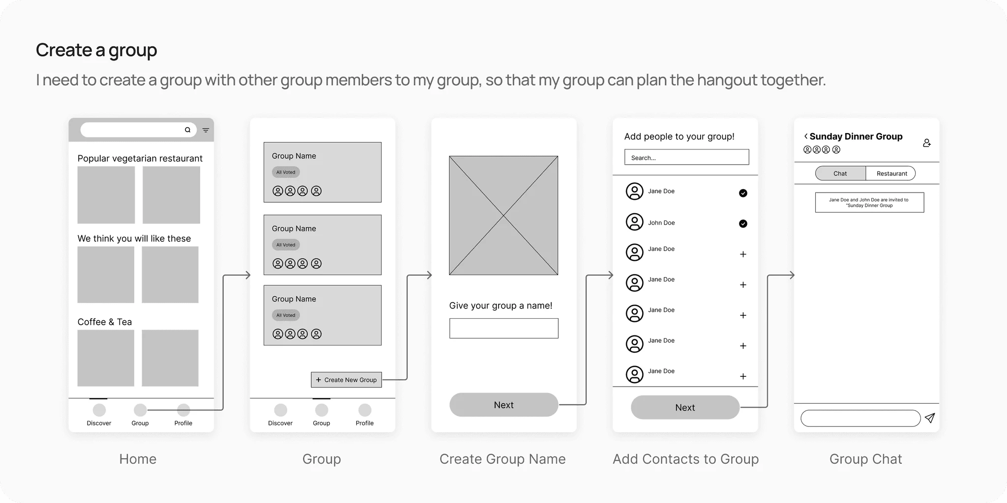 Based on the data and insights gathered from my research, it became clear that vegans and vegetarians need a product that helps them effectively plan dine-outs with others. With this in mind, I identified the following MVP features that are necessary for the product to provide value to users: