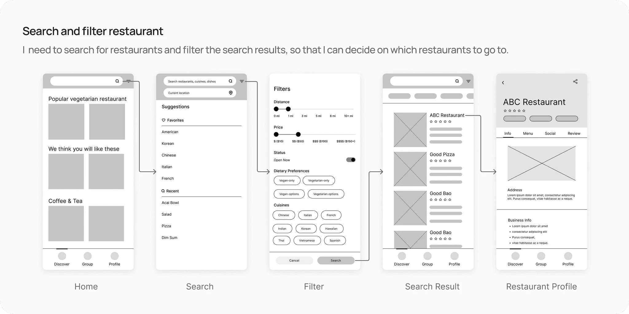 Overall, the users believed that the application will help them streamline their research process when dining out with friends. Meanwhile, I also identified 2 major areas of concern and iterated the design to address those issues.