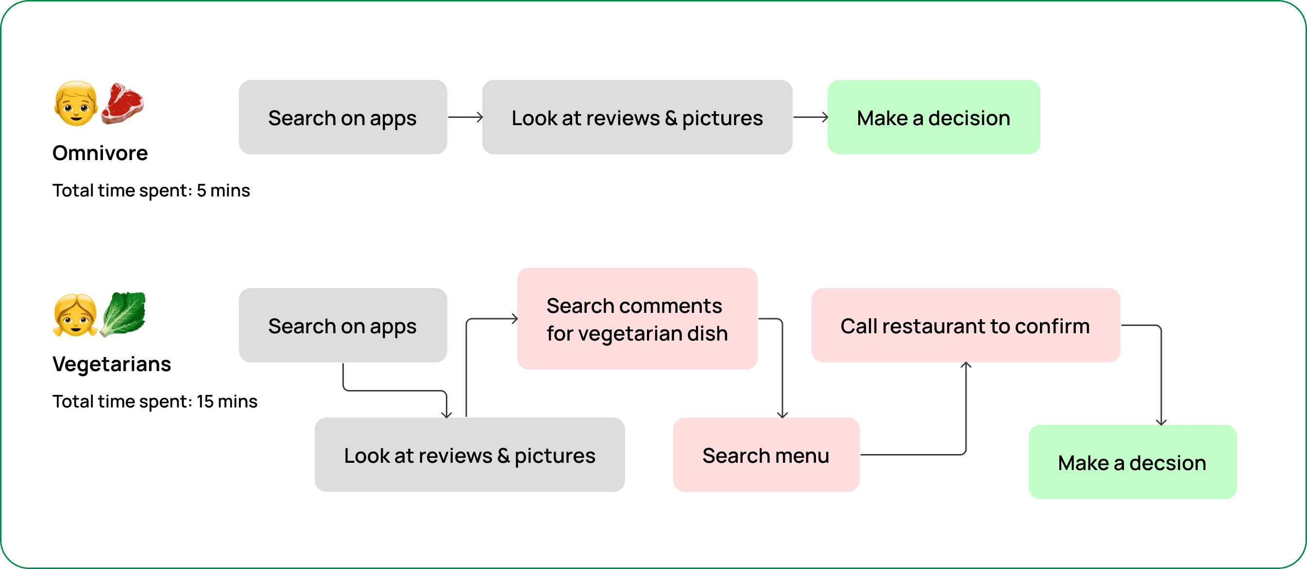 Vegans & vegetarians expressed that the restaurant research and dine-out planning process is inefficient & time-consuming