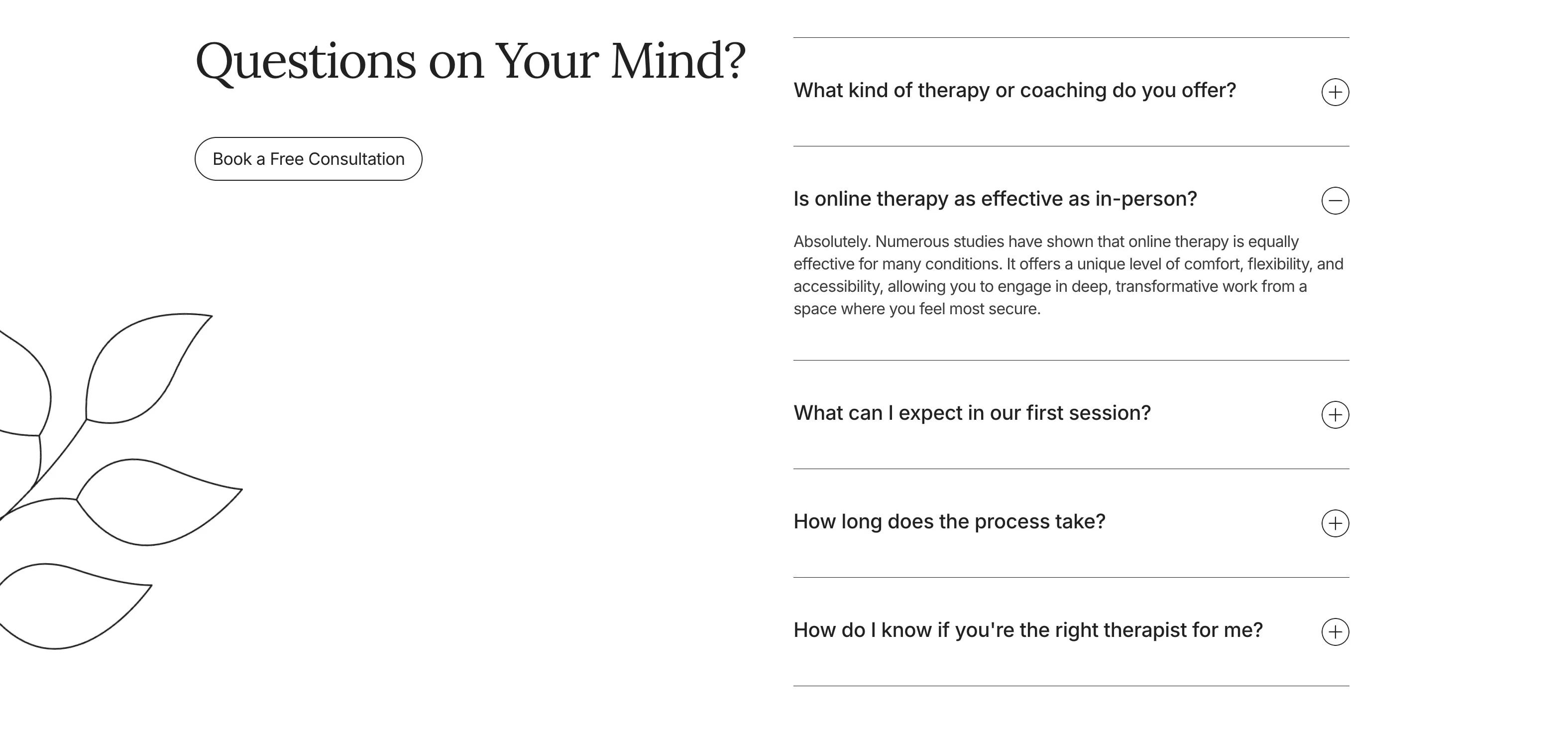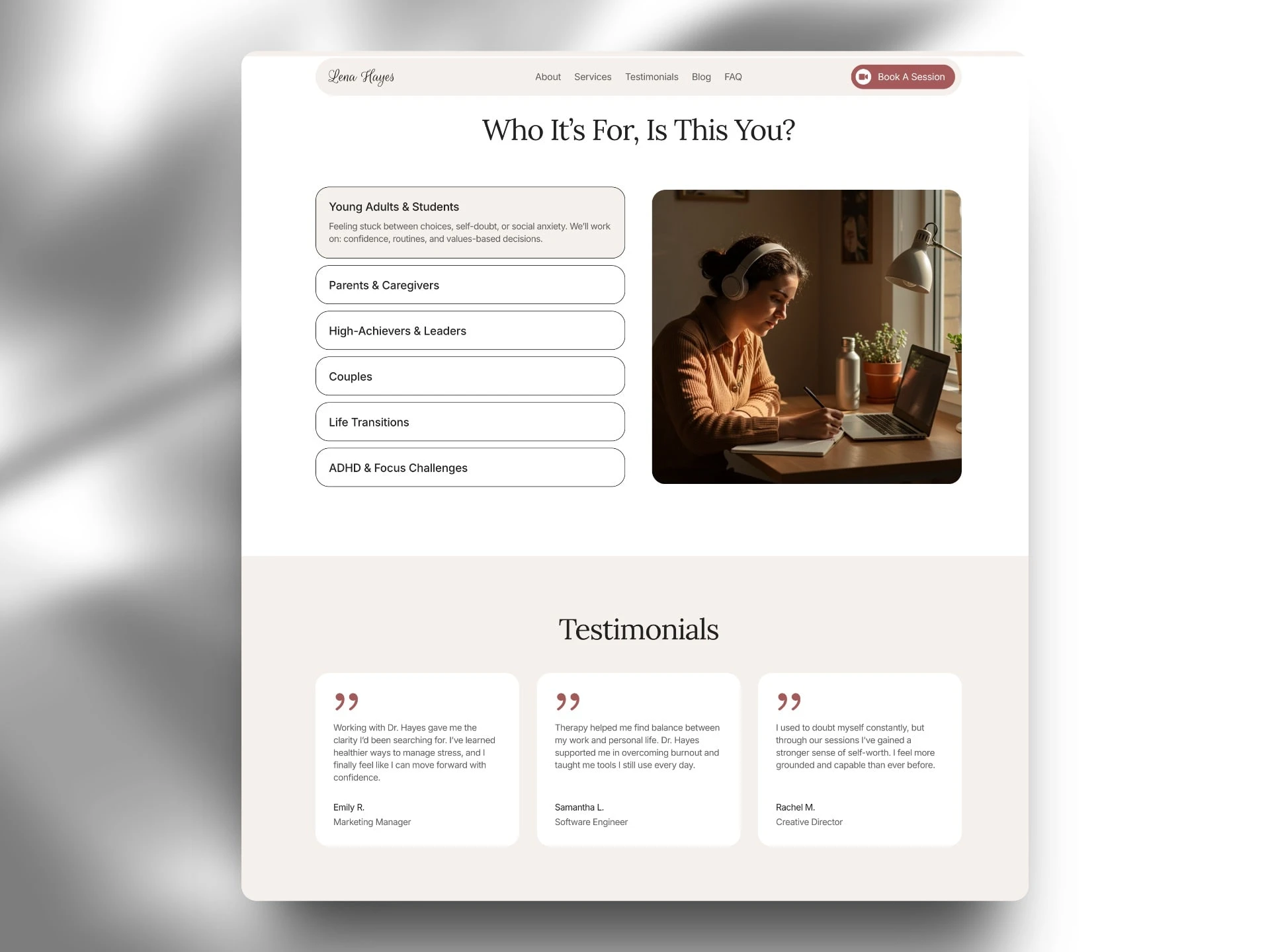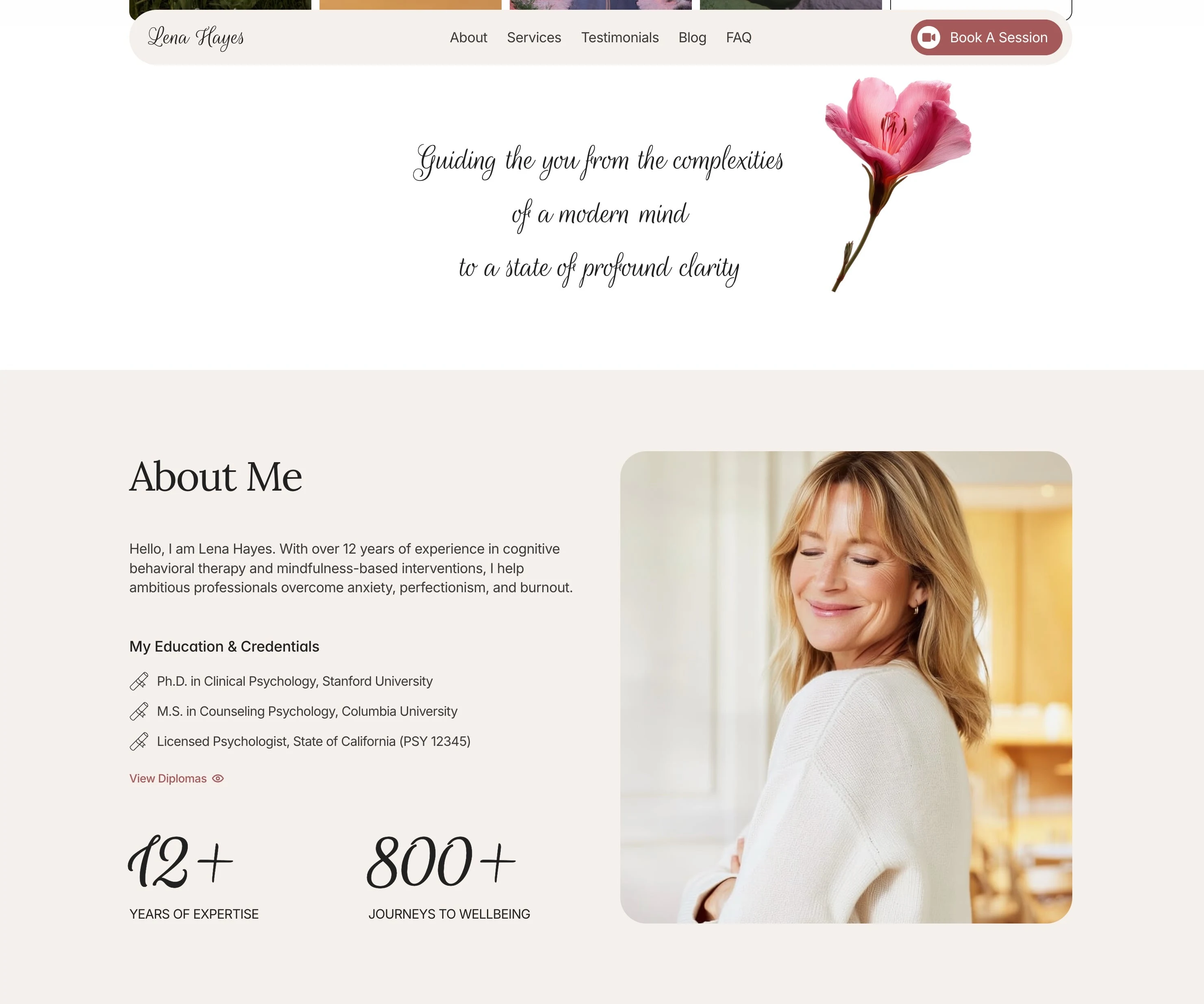 Each section has been carefully designed to support clarity, emotional comfort, and professional trust — key traits for psychologists, therapists, and wellness practitioners.