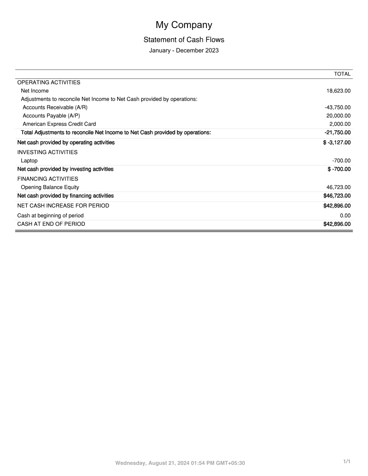 Cash Flow Statement prepared post bank feed & reconciliation for interior design client—shared with insights to support analysis and smart decision-making.