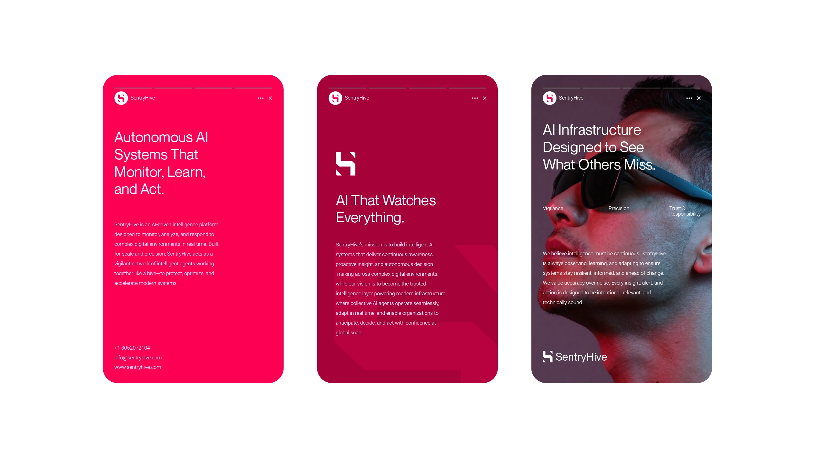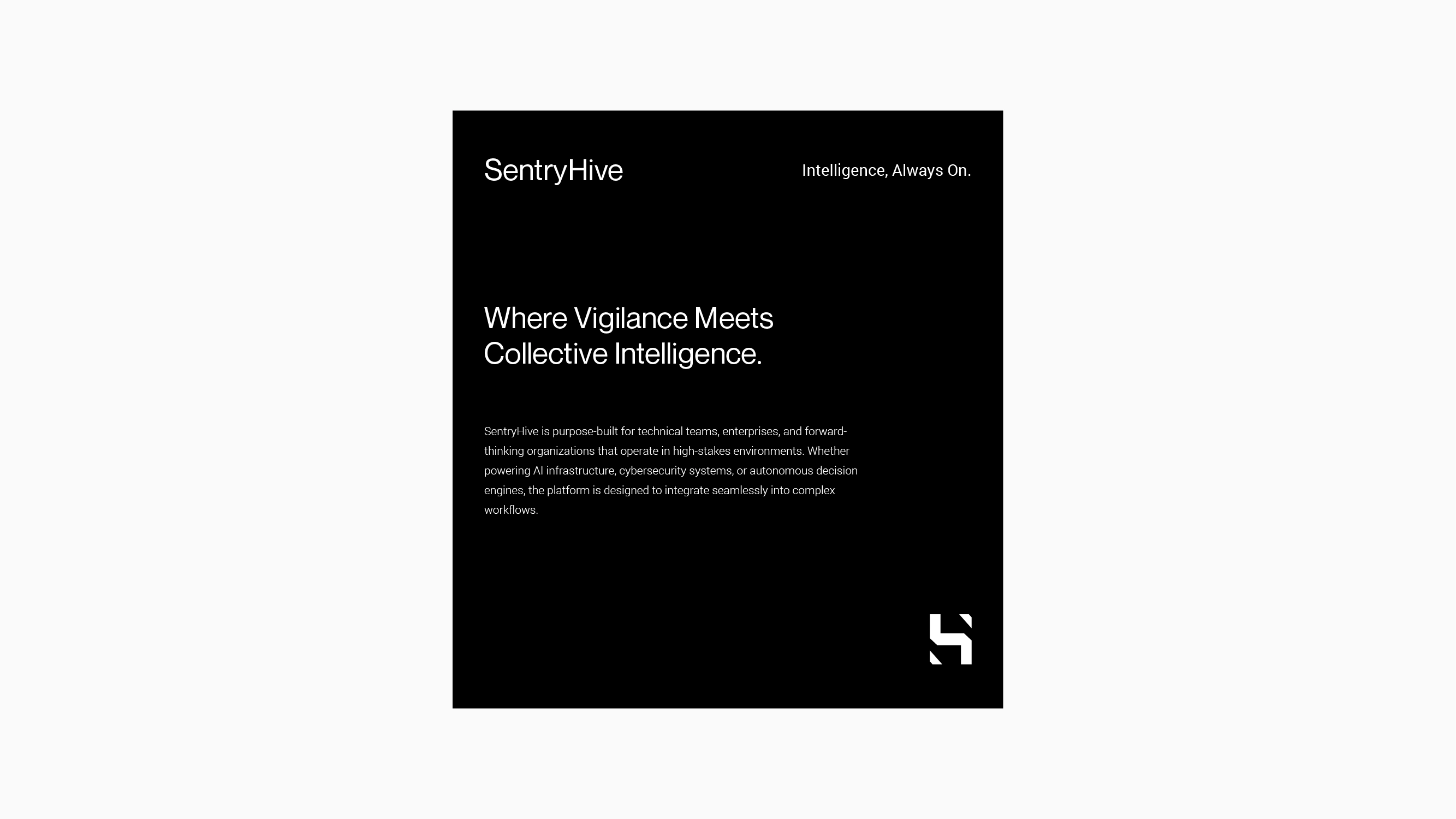 The brand stands at the intersection of trust and performance. “Sentry” represents vigilance,security, and reliability, while “Hive” symbolizes collective intelligence and distributed problem-solving. Together, they communicate a system that is always on, always learning, and always working in coordination.