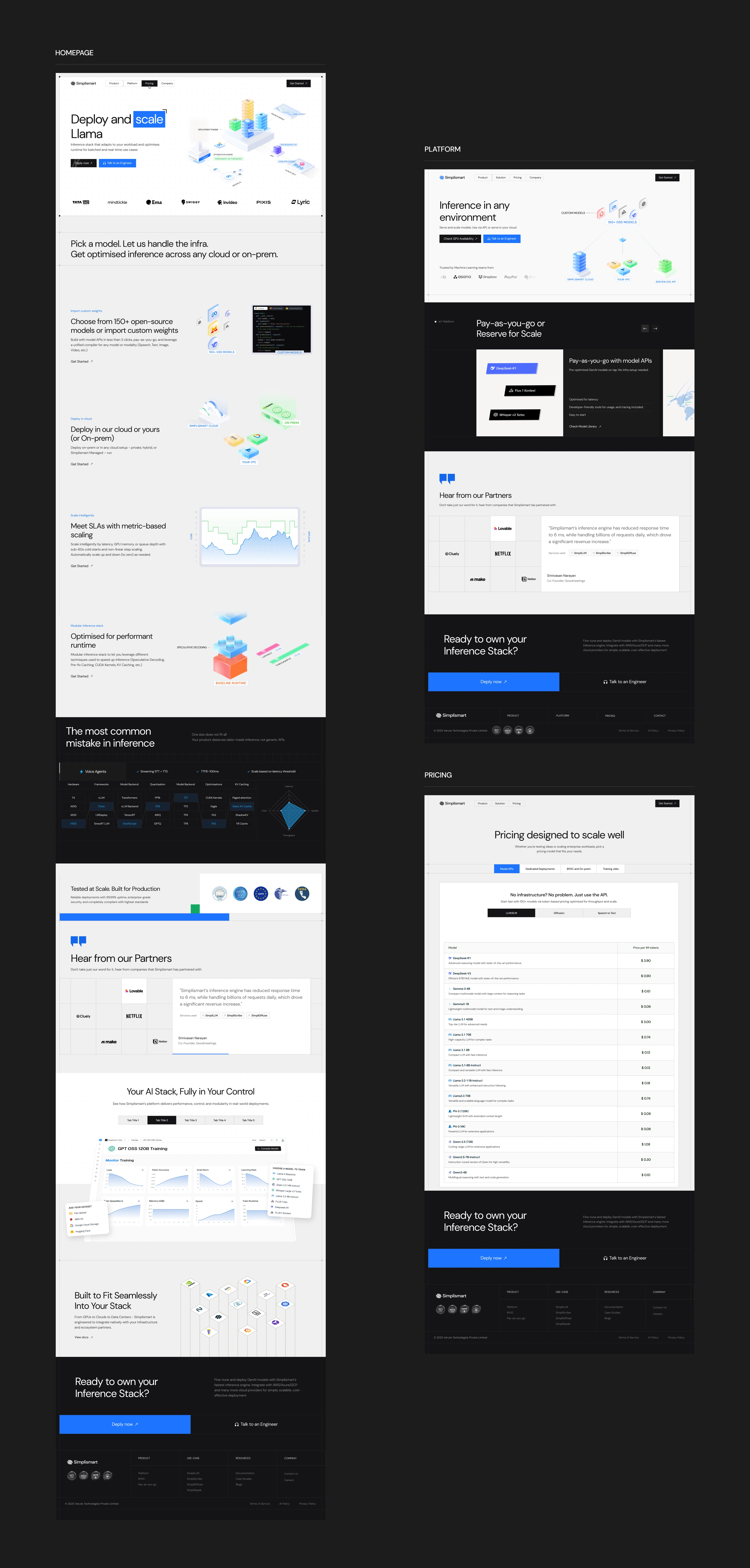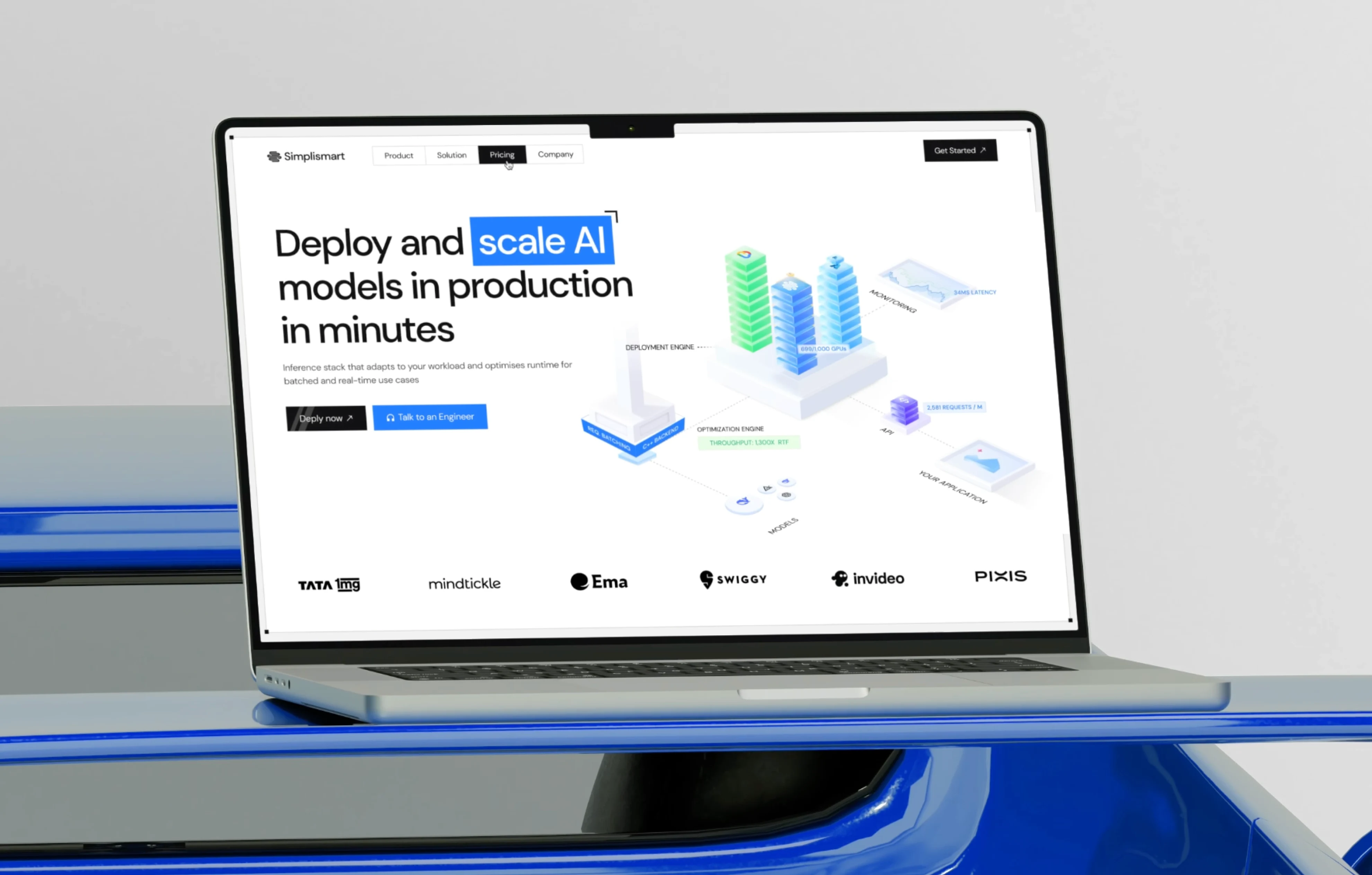 So instead of just redesigning, we zoomed out and asked the right questions. We crafted a strategy to bring forward Simplismart’s “tailor‑made inference” philosophy, balanced technical depth with trust, and created a site experience that converts by making value obvious at every step.