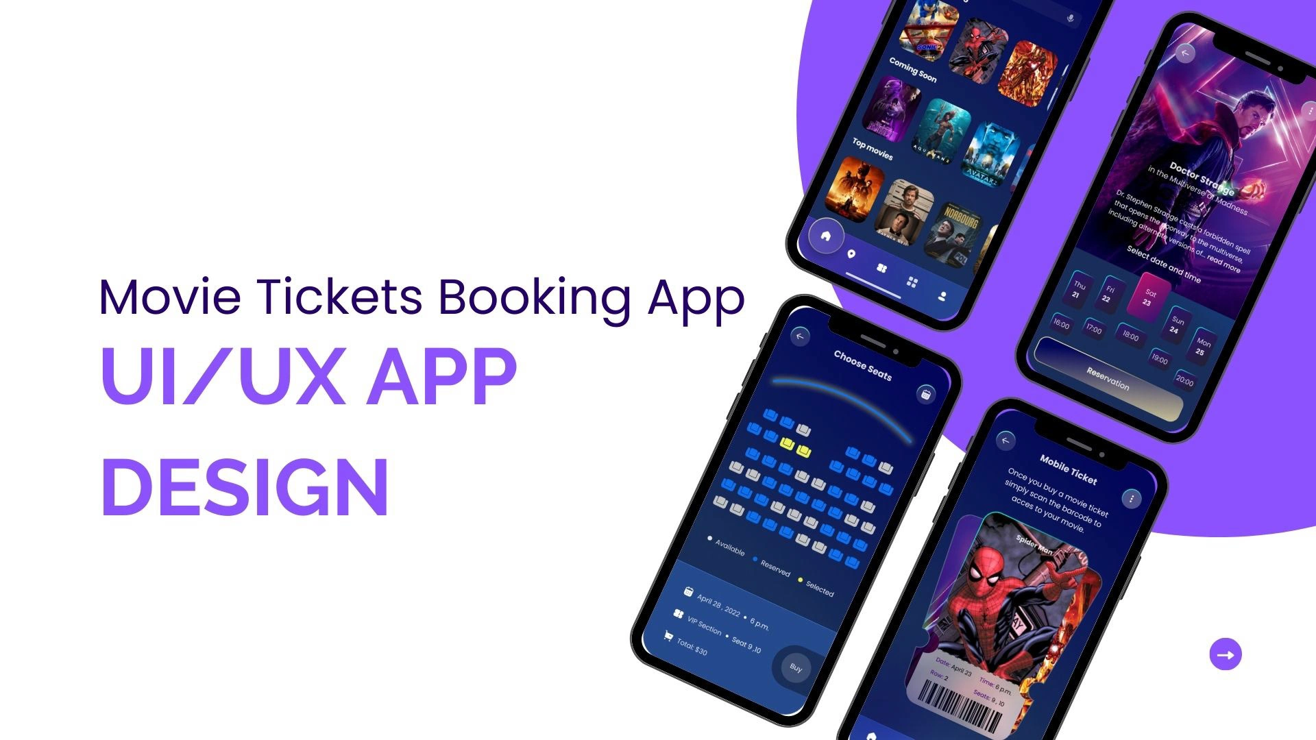 Movie Tickets Booking App – UI/UX Design, UI/UX, Figma