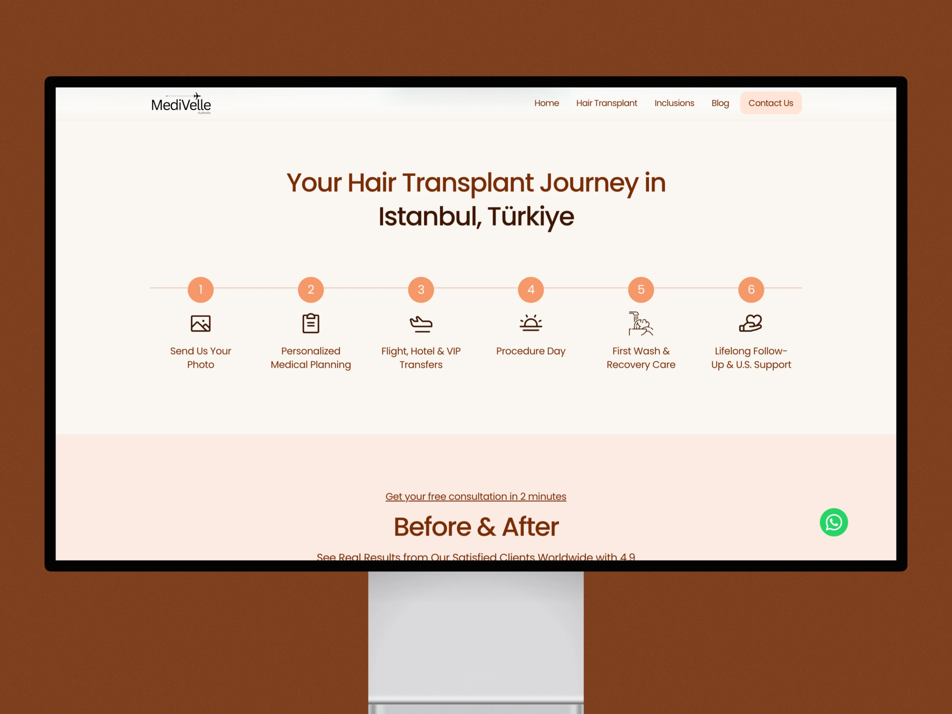 MediVelle is a modern medical tourism website built in Framer, designed to create trust, clarity, and a smooth user experience for international patients. The structure focuses on presenting treatments, services, and the overall journey in a clear and accessible way.