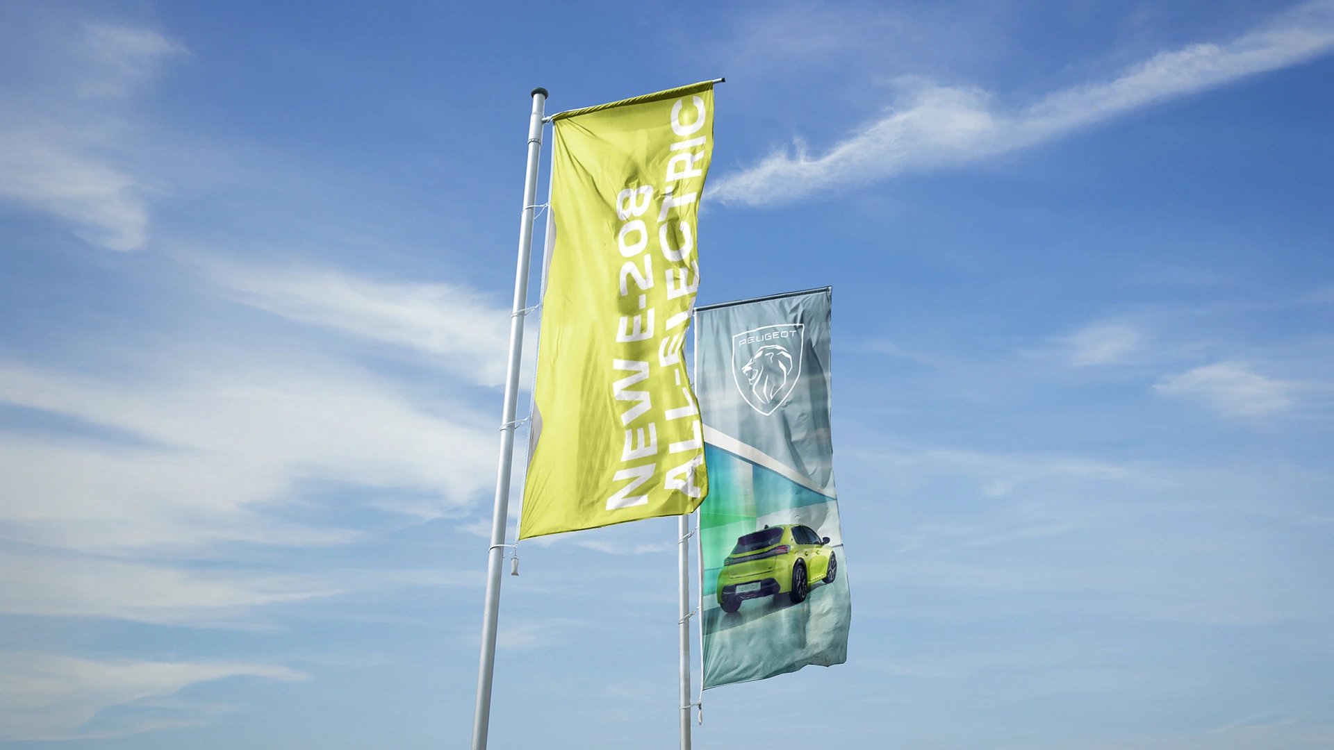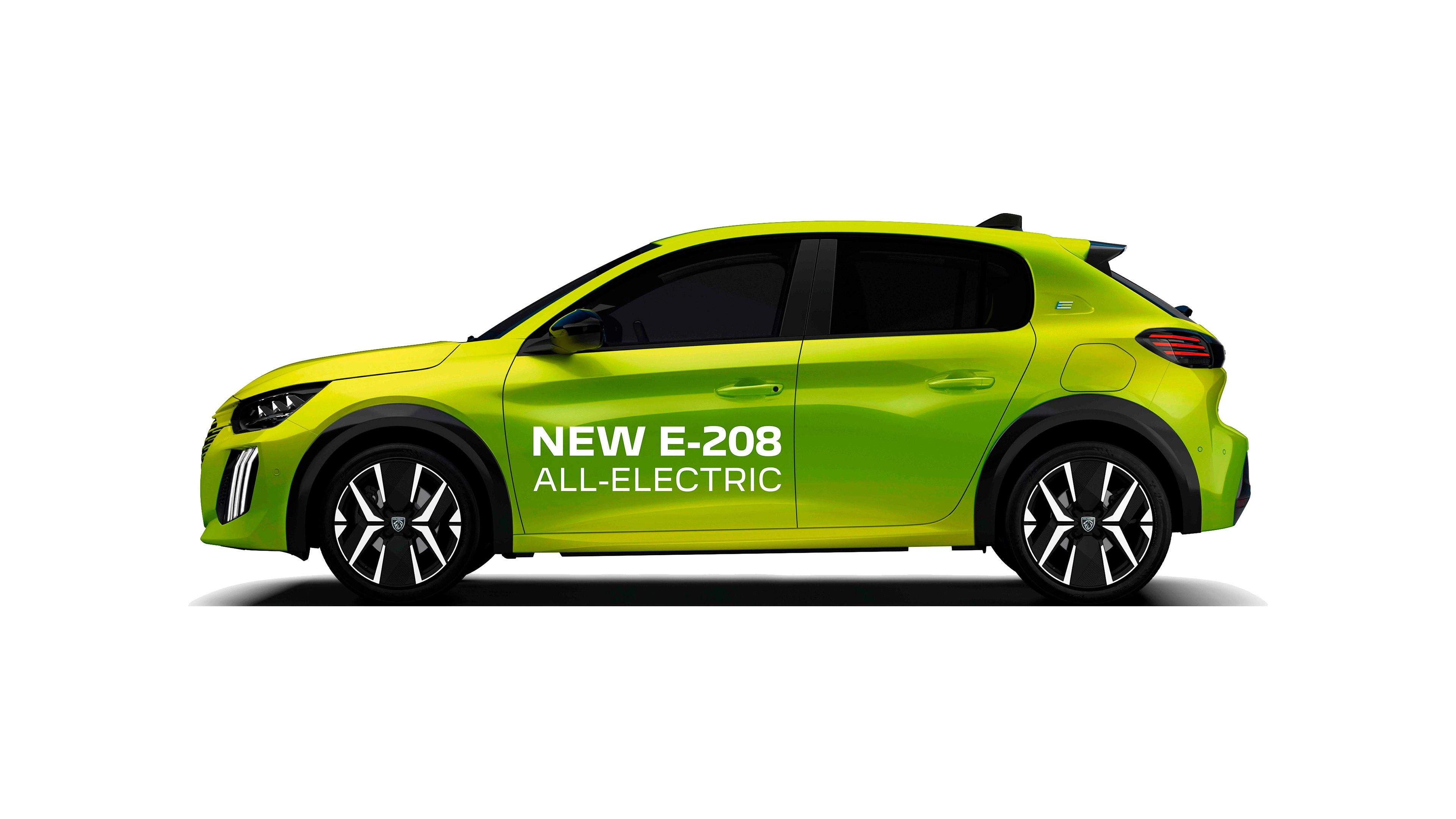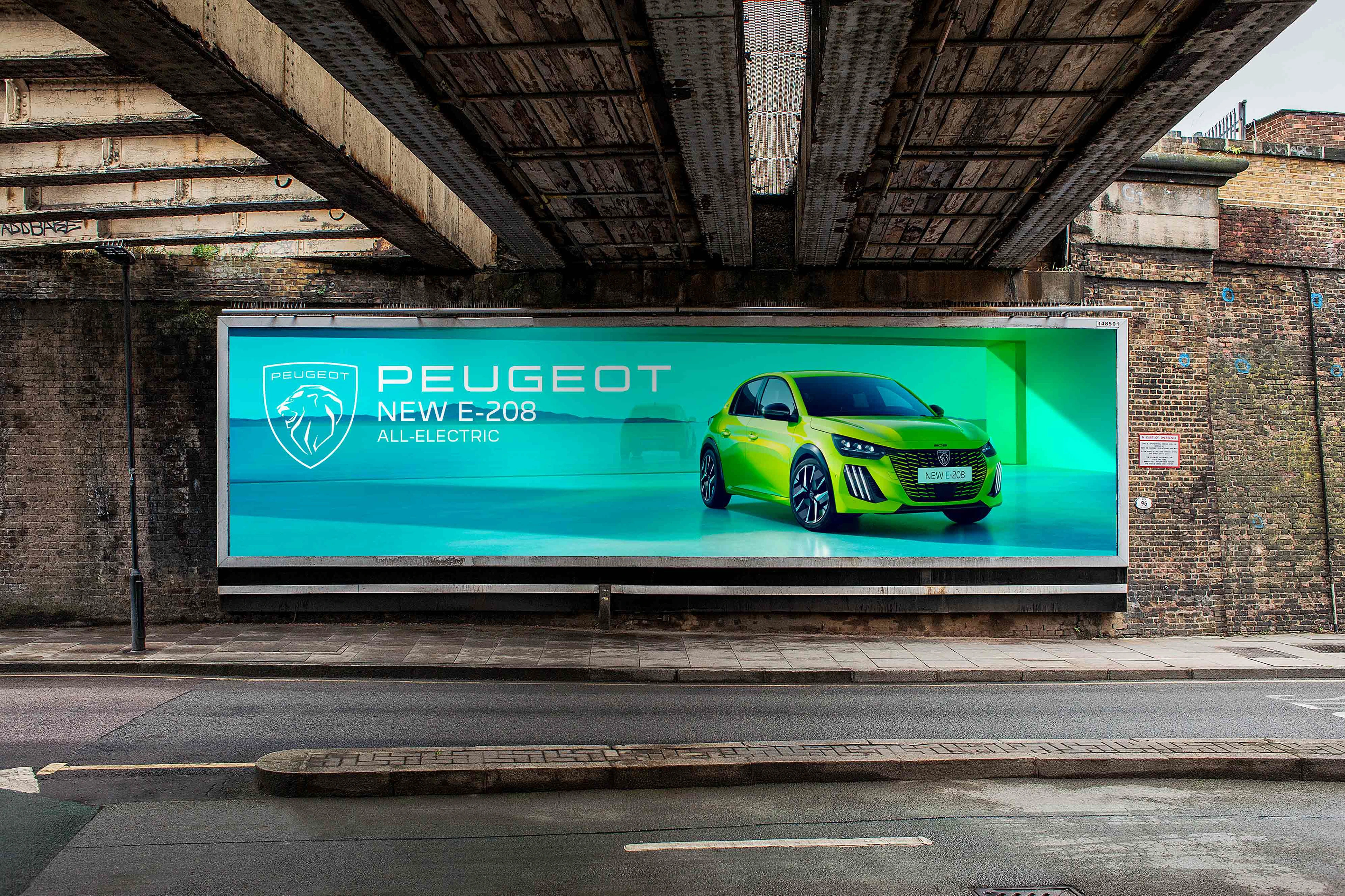 Launch campaign for the Peugeot E-208 with various promotional assets.