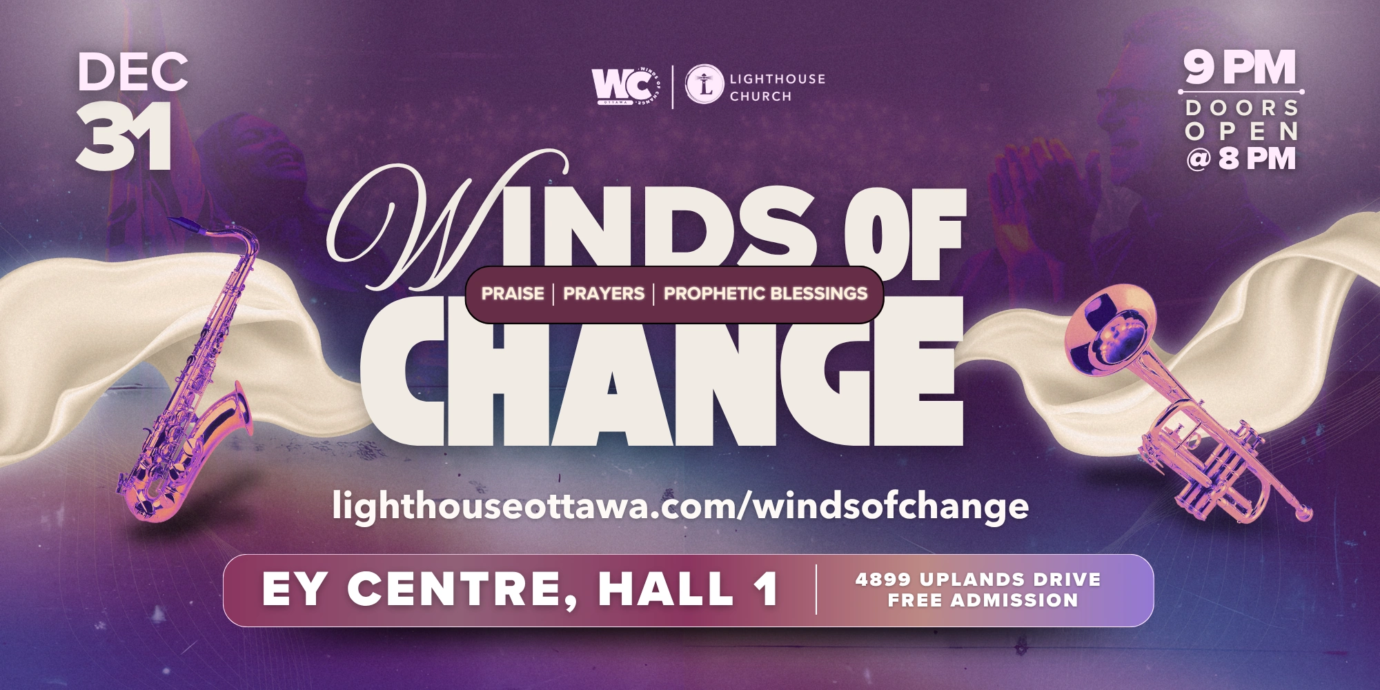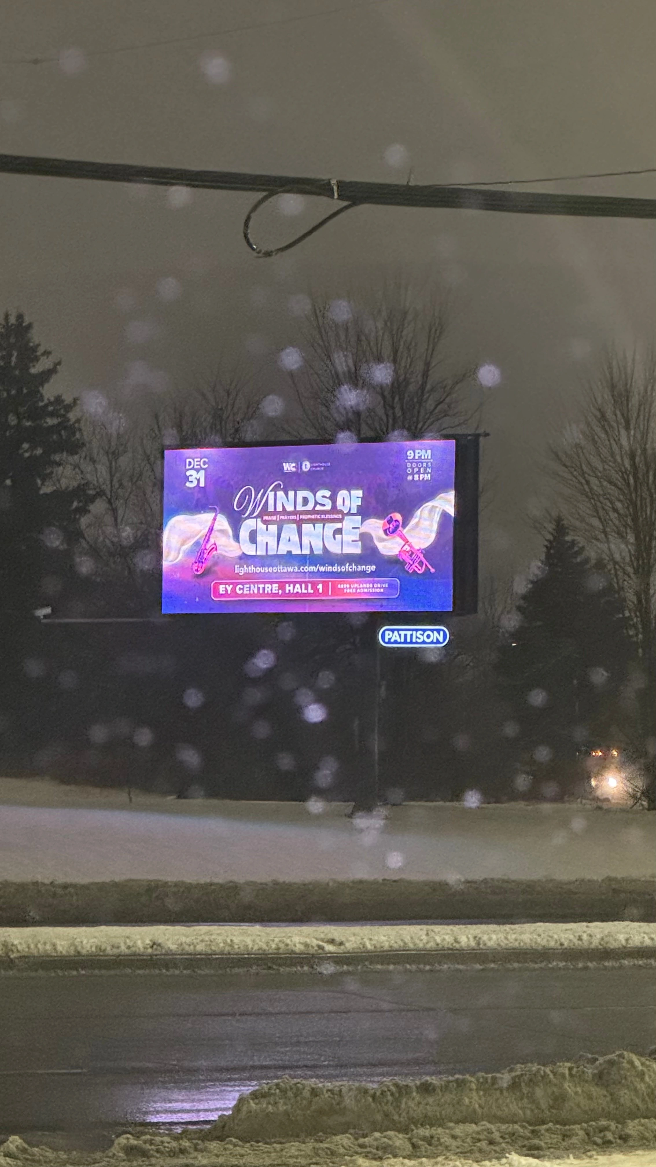 I designed the official event flyer for Winds of Change, Lighthouse Church Ottawa’s New Year’s Eve service. The creative direction centered around movement, high praise, and spiritual momentum heading into 2025. The design needed to be bold enough for billboards, yet refined enough for print, website and digital invites.