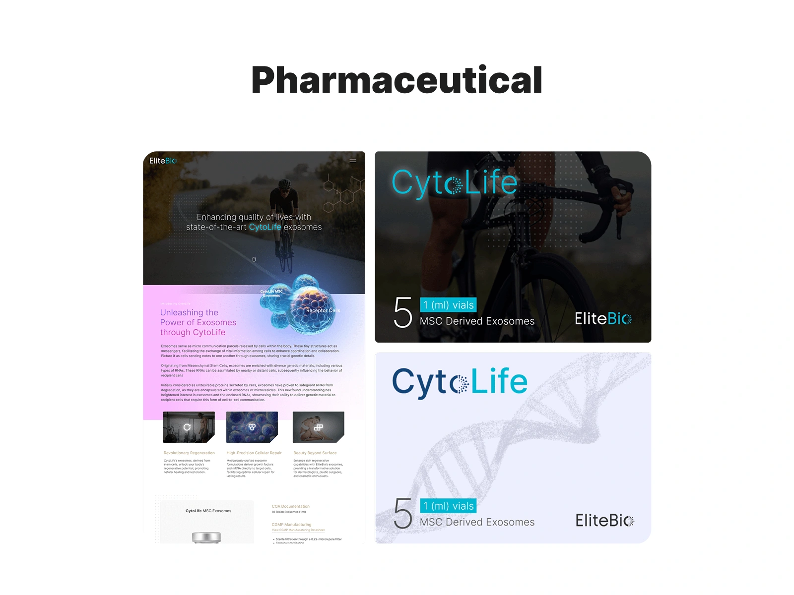 A venture-backed biotech startup developing an exosome-based drug needed a landing page and packaging design to position their brand for investors and early adopters. Contributions included: