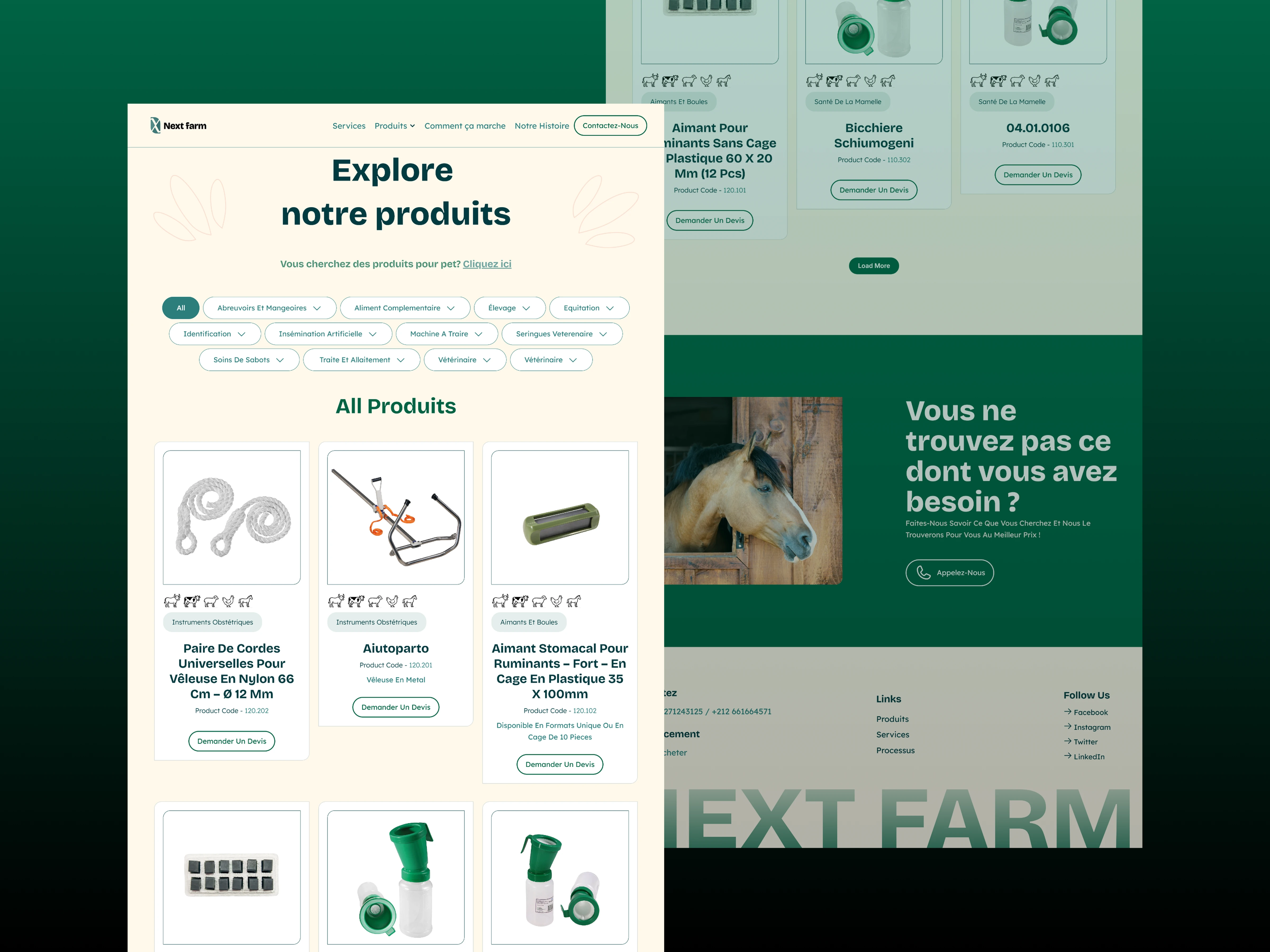 Developed a user-friendly, French-language website for NextFarm with dynamic product filtering and custom design elements.