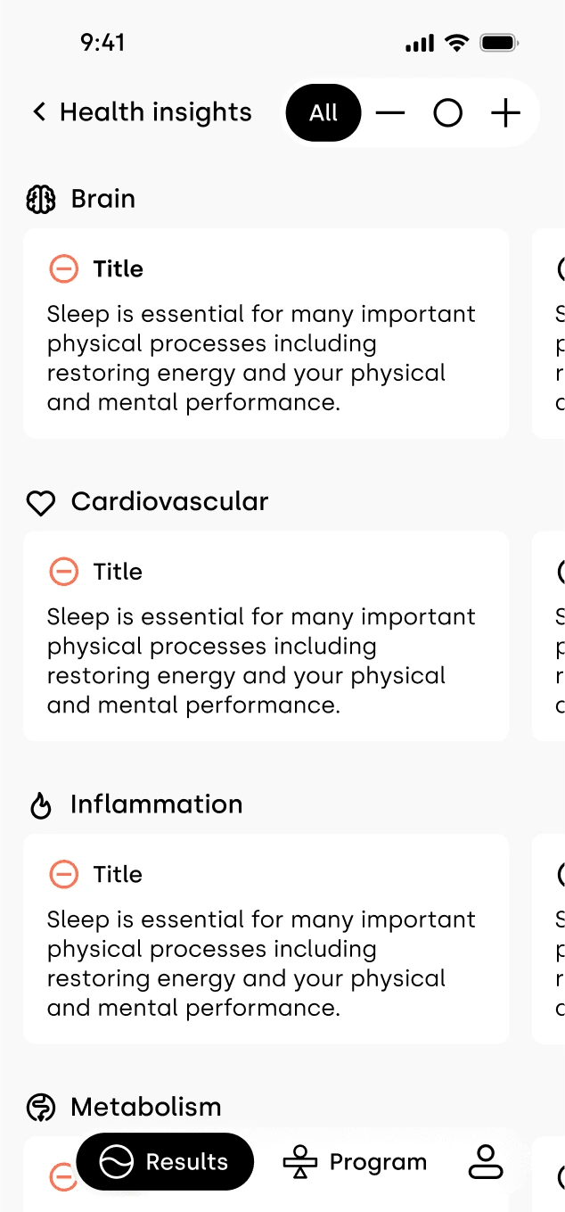 #1 Nina is facing challenges in understanding her results due to her results being too complex and comprehensive.#2 David finds it challenging to stay engaged with the app after reviewing his results, as there's no compelling reason for him to return.