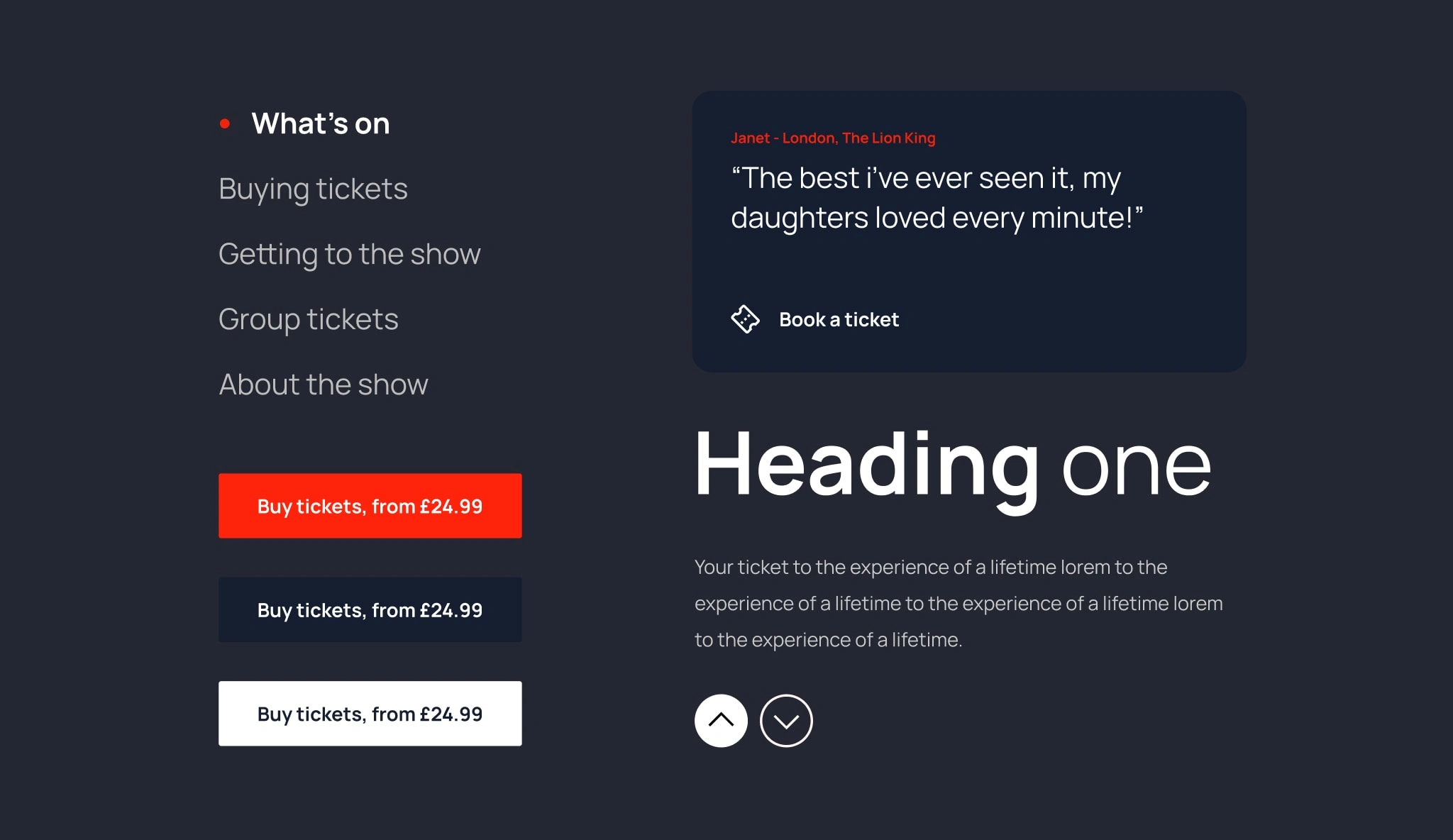 Design and overseeing of end to end user journeies allowing users to browse each show, select tickets and to check out.