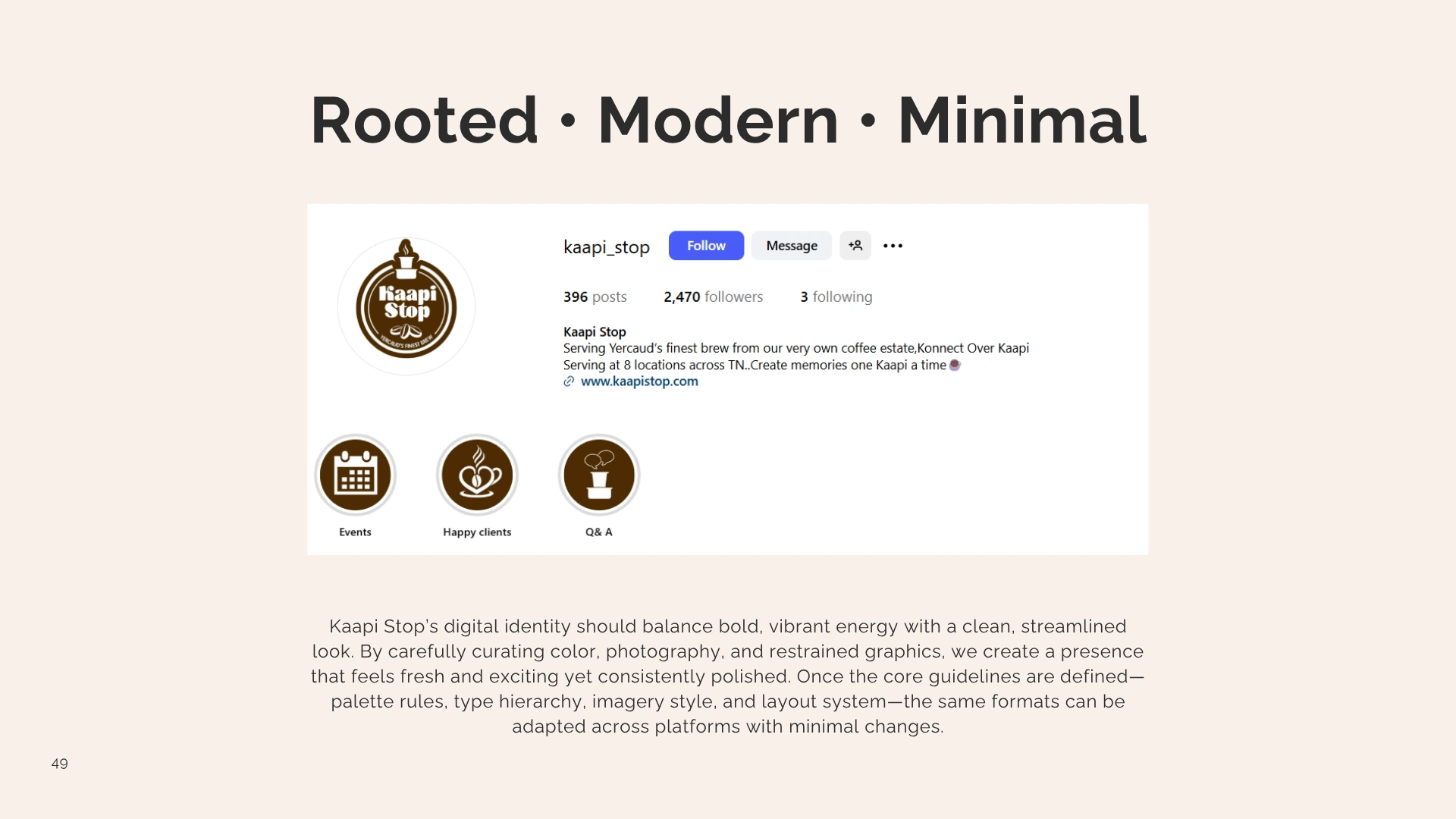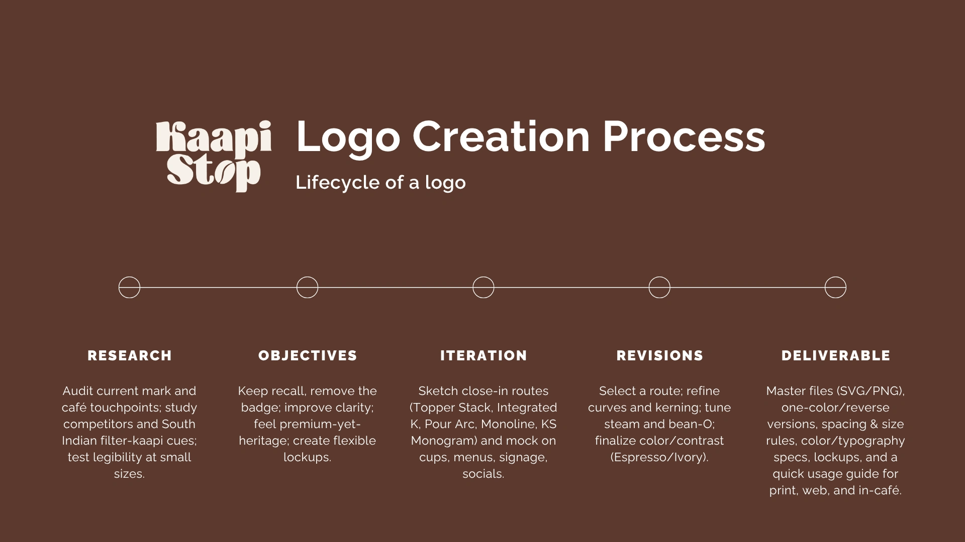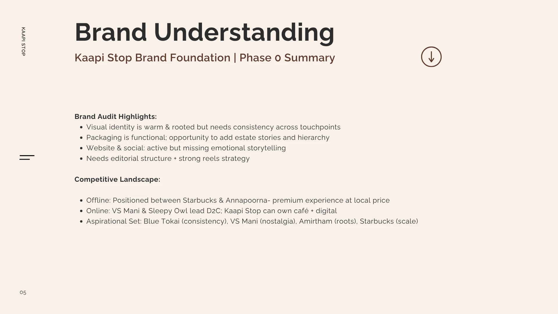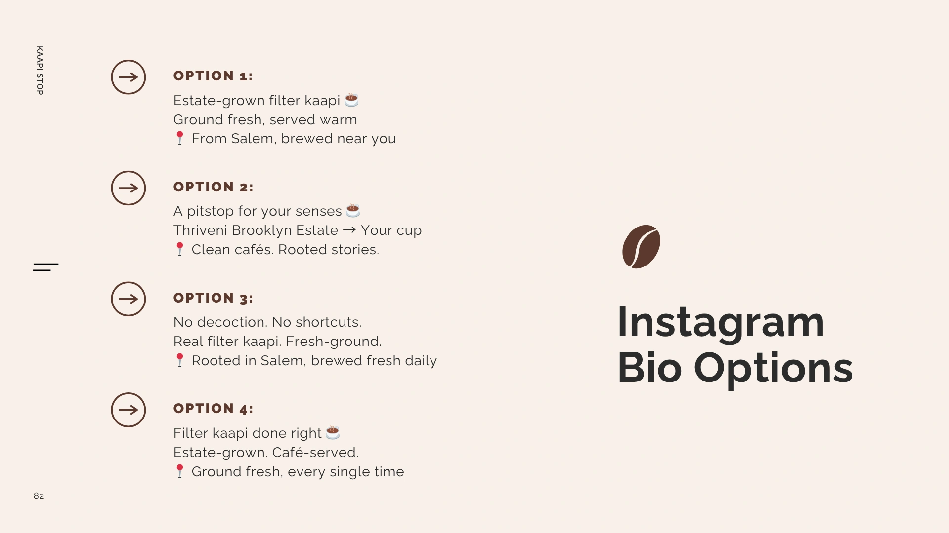 Built a cohesive, roots-led brand for Kaapi Stop - aligning identity, content, and strategy to boost recall, drive footfall, and enable scalable growth.