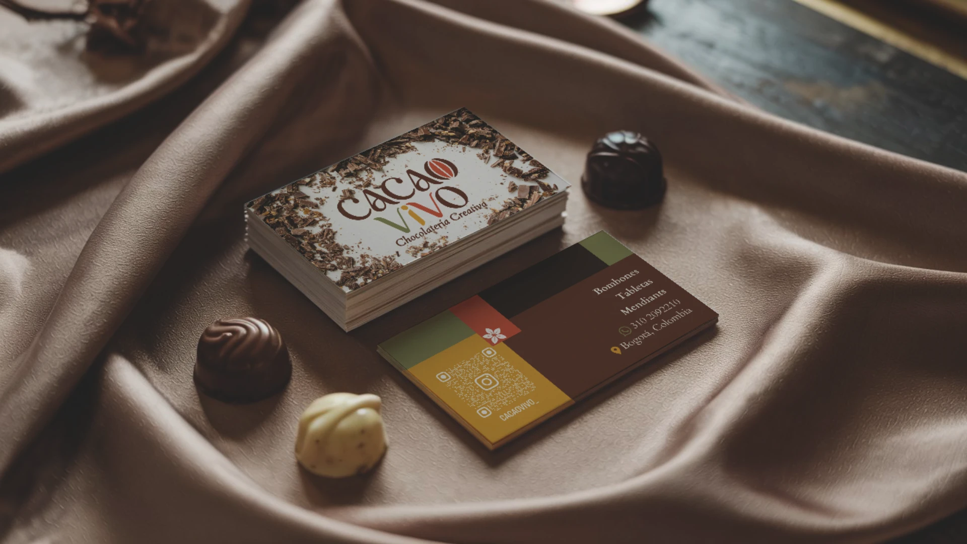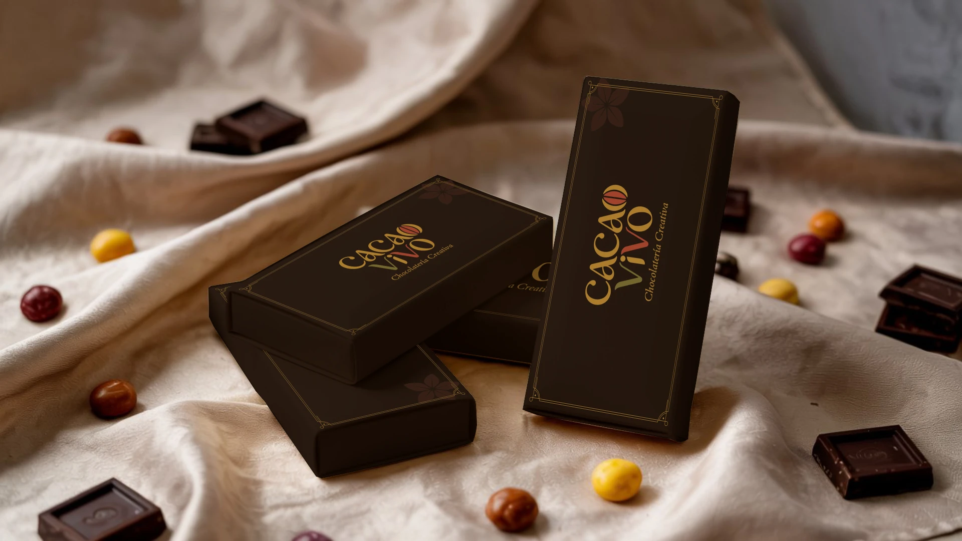 I merged the client's vision with my own interpretation of the concept to achieve a fresh and distinctive visual result. The logo incorporates a color palette inspired by cacao (terracotta, red, green, and yellow), balancing sophistication with vitality. The abstraction of a cacao bean in the letter "O" reinforces the product identity, while the custom typography adds an artisanal, fluid, and contemporary character. The final composition conveys elegance without rigidity, with a friendly and professional dynamism.