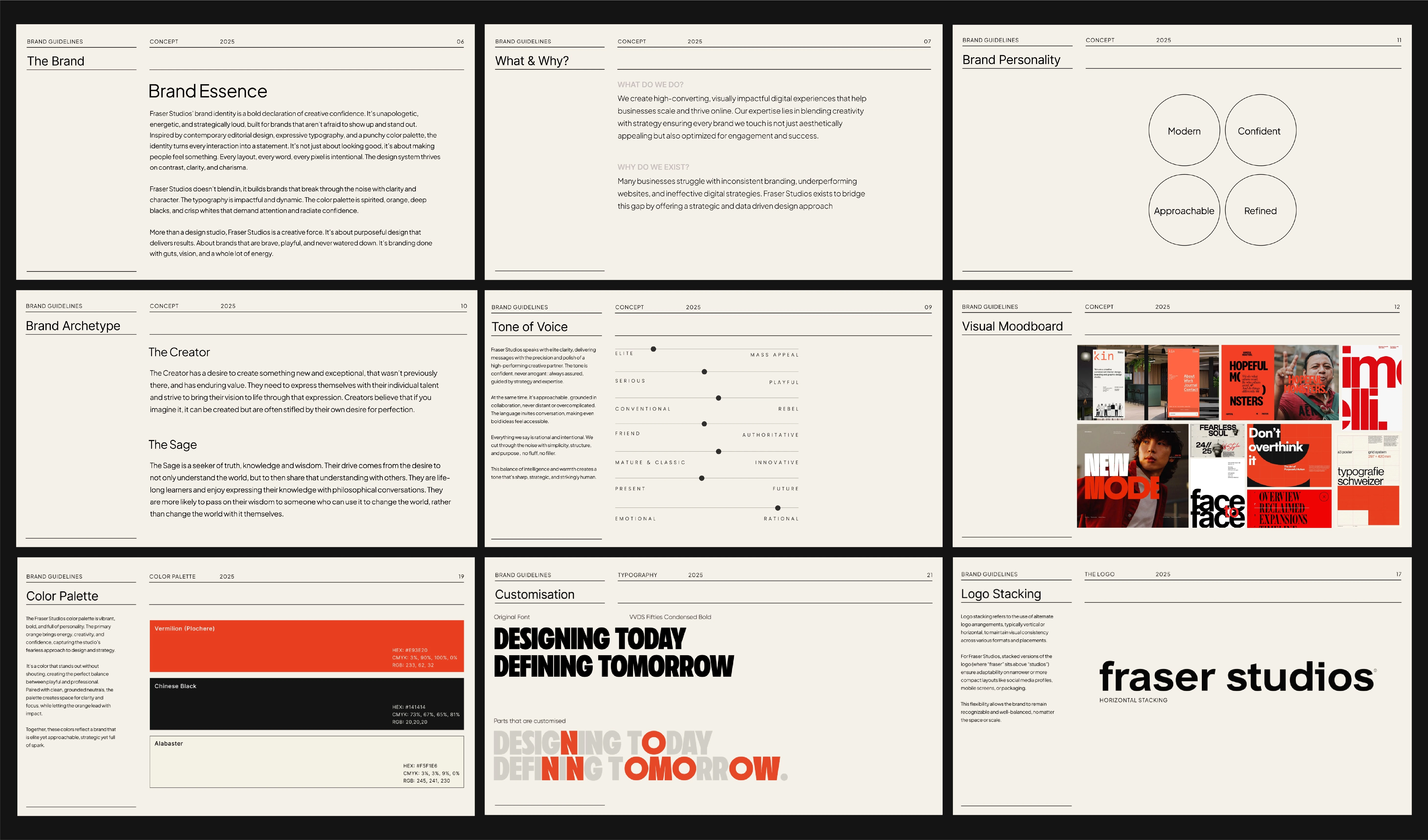 Fraser Studios’ brand identity is a bold declaration of confidence. It’s unapologetic, energetic, and strategically loud, built for brands that aren’t afraid to show up and stand out. Inspired by contemporary editorial design, expressive typography, and a punchy color palette, the identity turns every interaction into a statement. It’s not just about looking good, it’s about making people feel something. Every layout, every word, every pixel is intentional. The design system thrives on contrast, clarity, and charisma.