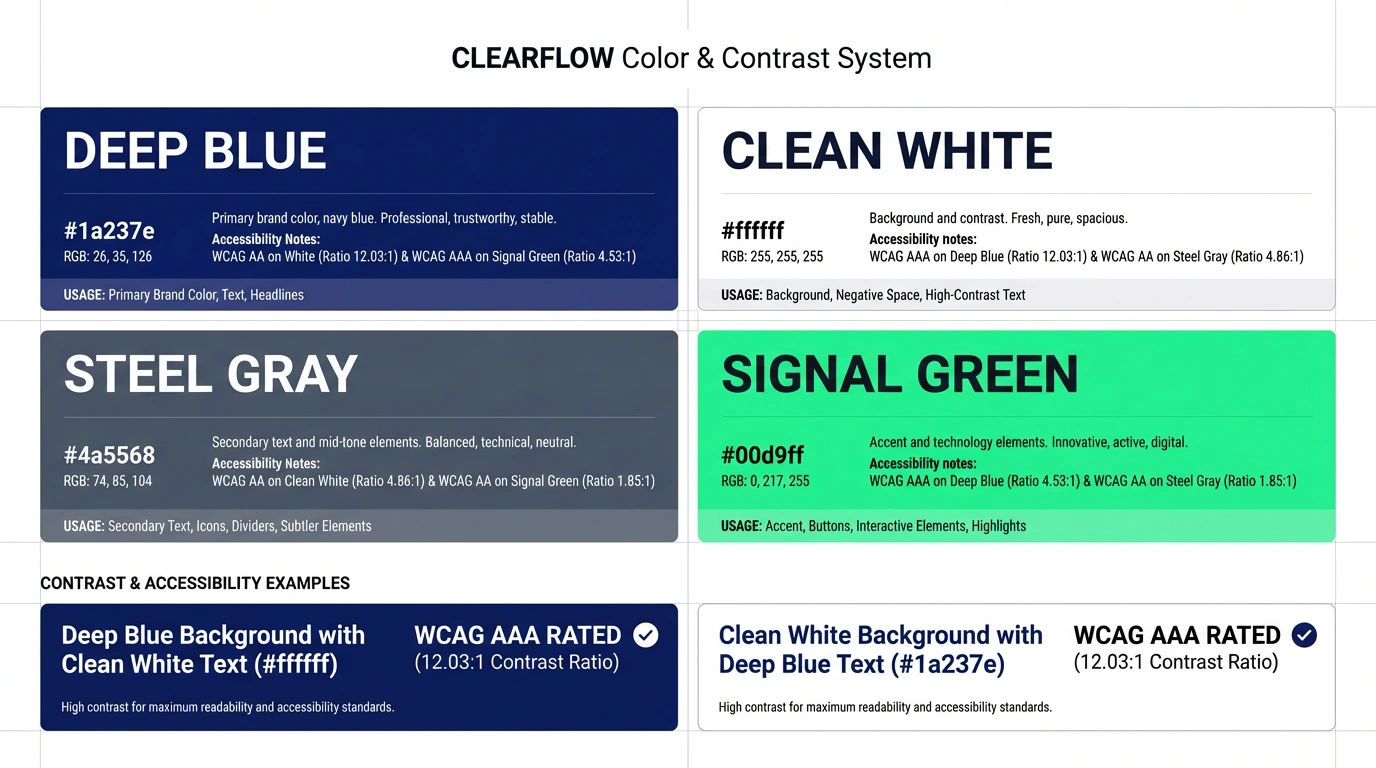 Secondary: Clean White ((reinforces clarity and professionalism)