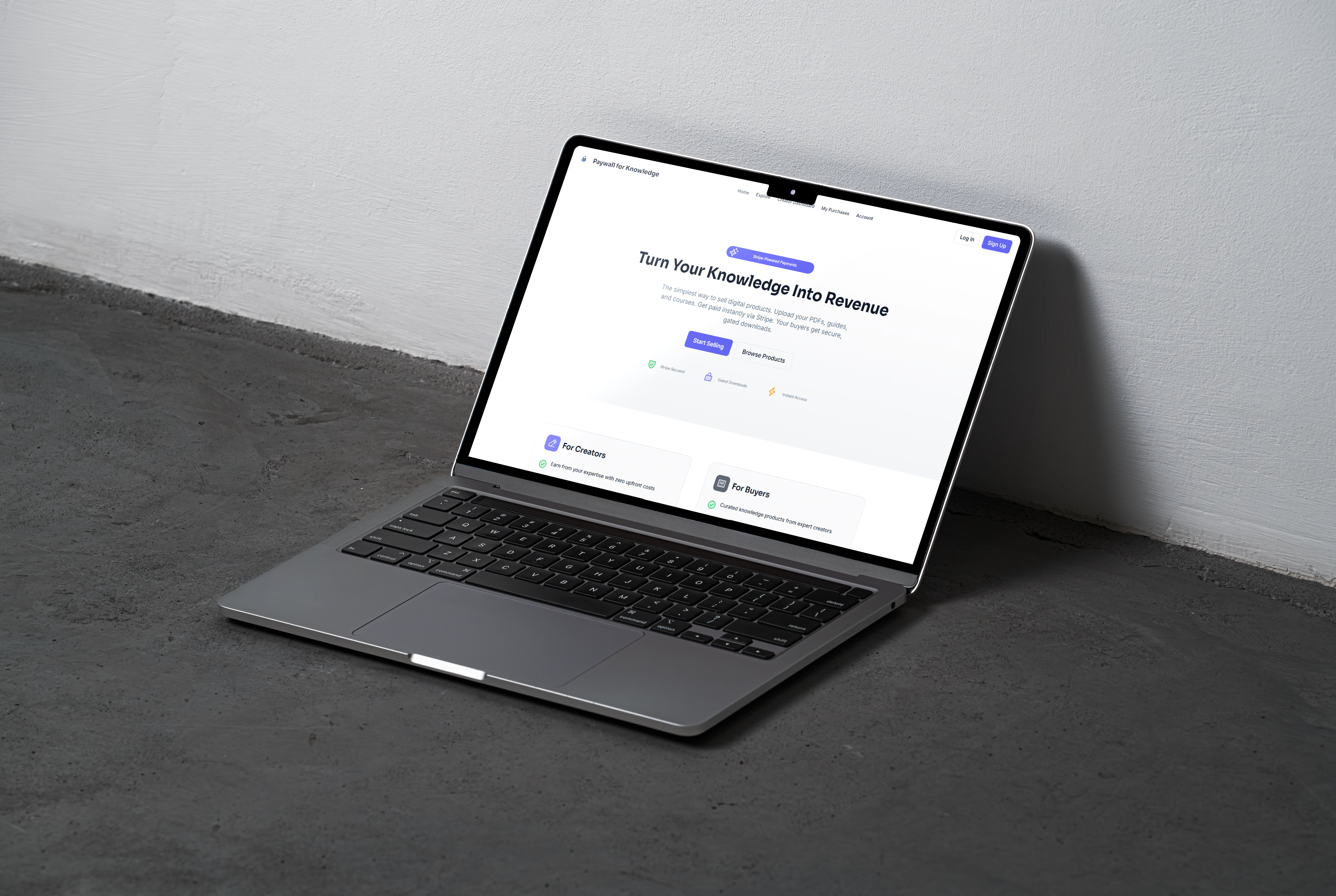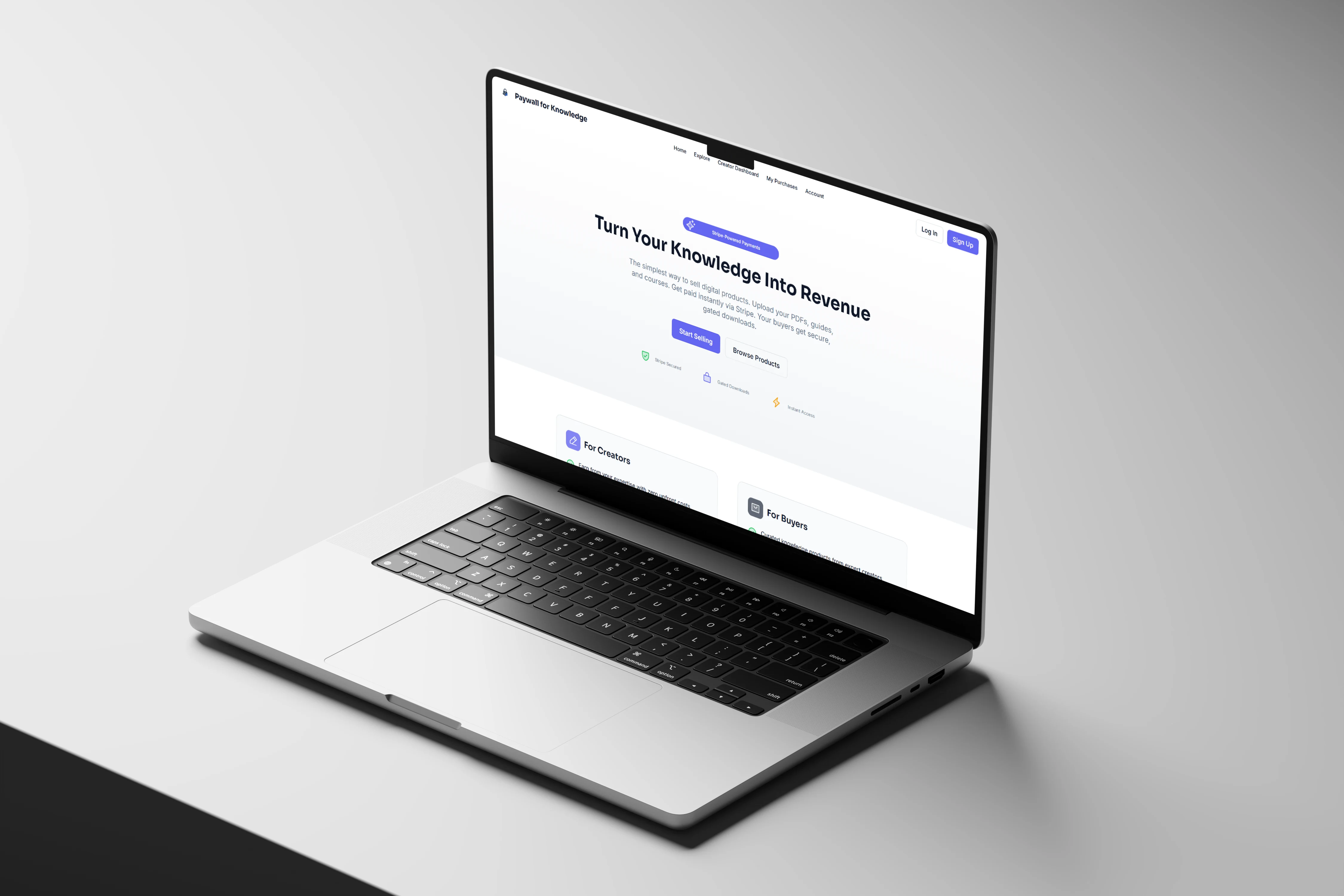 Paywall for Knowledge is a Gumroad-like web application built using Bubble. It enables creators to upload digital products such as PDFs, templates, or ZIP files, set a price, and share a link to sell instantly. The platform focuses on simplicity, fast setup, and secure delivery. Instead of relying on marketplace discovery, creators can directly monetize their audience through a clean, conversion-focused experience.