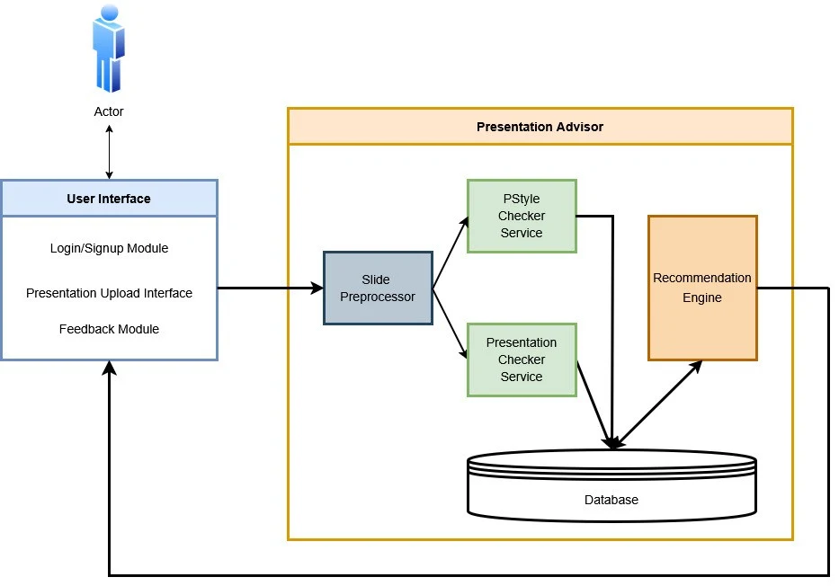 I built an end-to-end AI system that analyzes PowerPoint slides, detects layout and readability issues, evaluates style consistency, and generates actionable improvement recommendations. The system uses deep-learning computer vision models, a dual-branch CNN for style comparison, and a hybrid recommender engine to suggest tailored improvements.