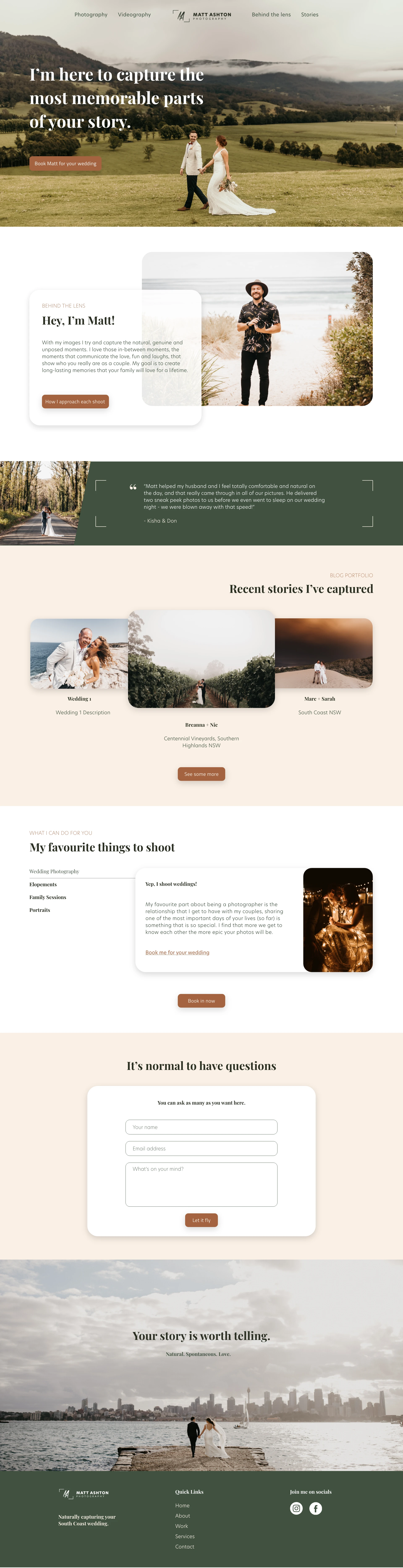 Home page for one of Sydney's best wedding photographers. Designed the Logo, Typography, Colour Palette, and pulled it all together to make his photos the hero.