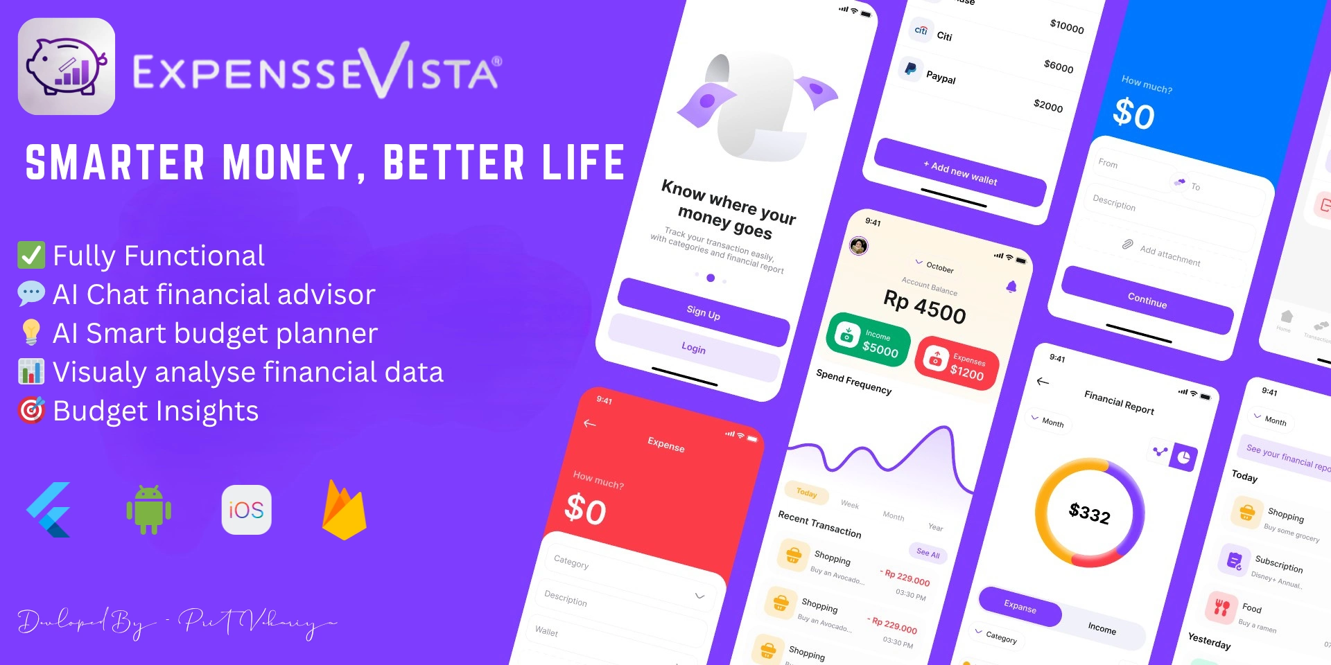 Custom Icons & Color System: For intuitive navigation and branding.π§Ύβ¨ ExpenseVista β Smart Personal Finance App with AI Budgeting