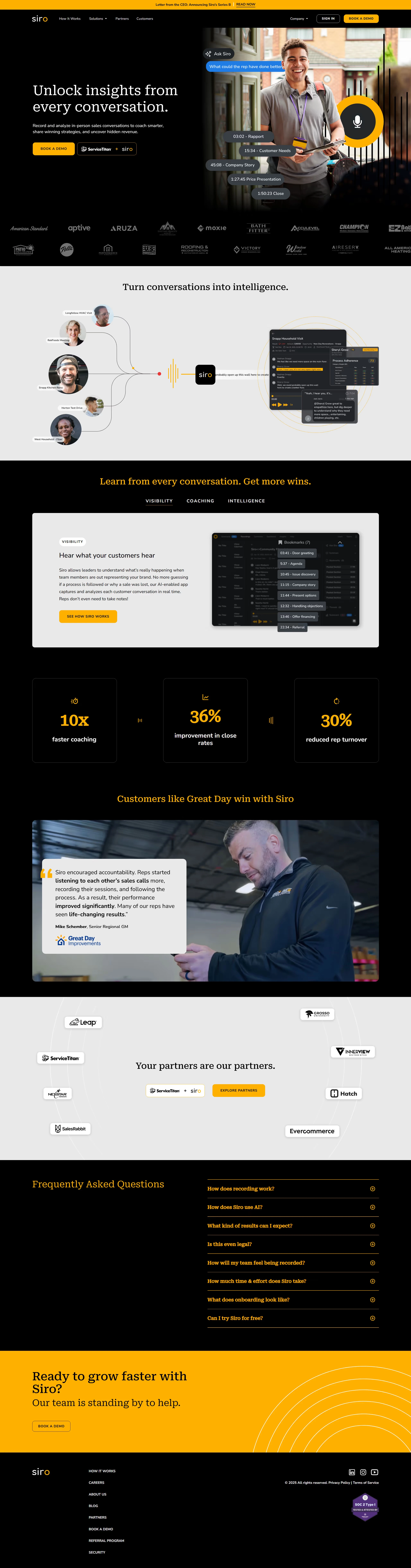 Siro launched a new website to showcase their AI sales product. Homepage built in Webflow by Red Panther in less than a week.