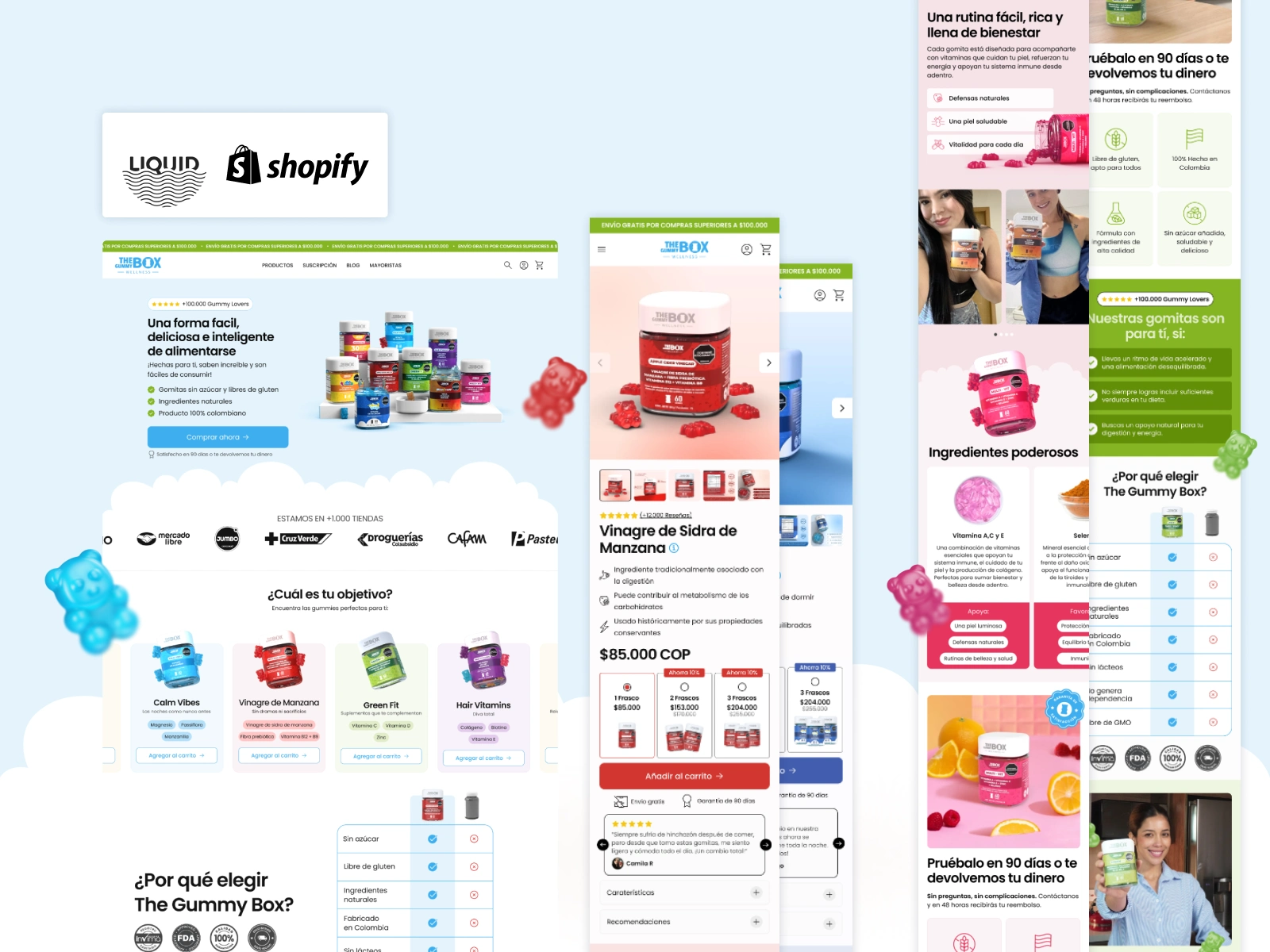 The Gummy Box is a rapidly growing DTC brand offering functional gummies for wellness and nutrition. Our mission was to transform their outdated eCommerce experience into a high-converting, trust-building, mobile-first Shopify store, powered by custom Liquid code.