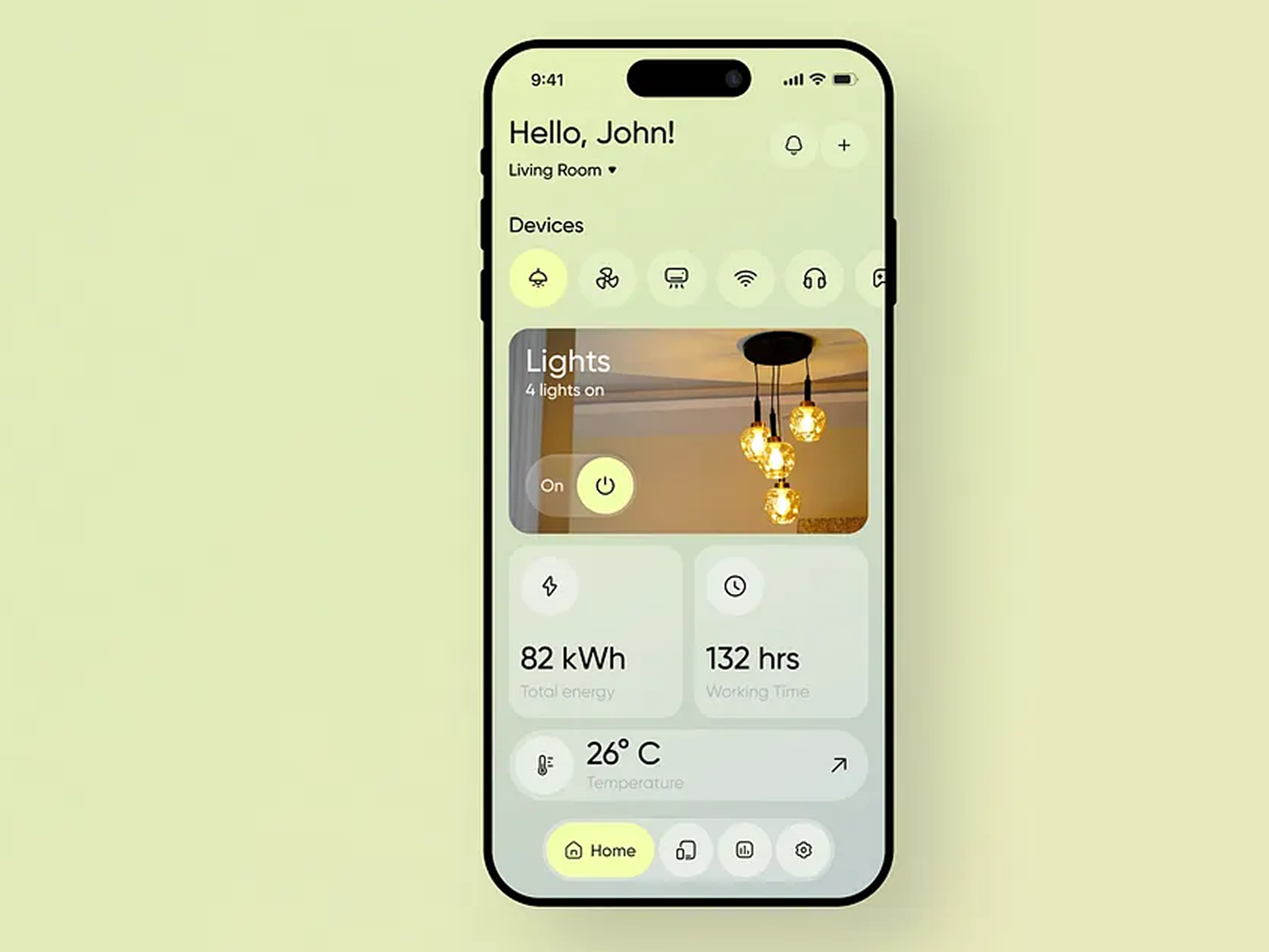 Clean Dashboard: A central control hub that displays the status of lights, temperature, security systems, and appliances at a glance.