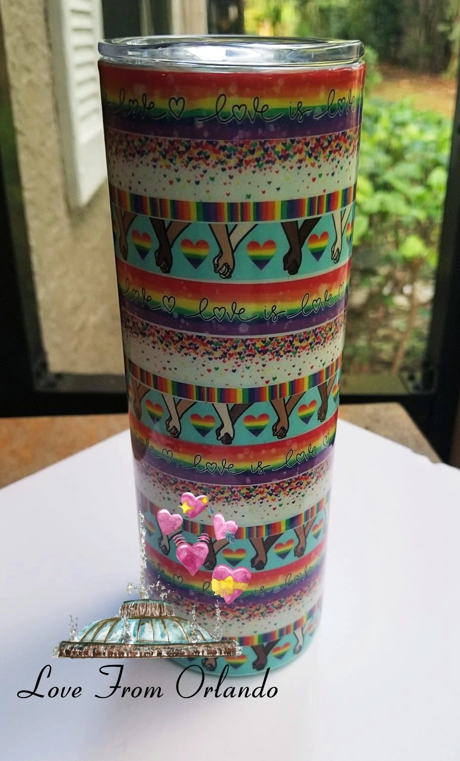 Tumbler using pride themed washi tape.