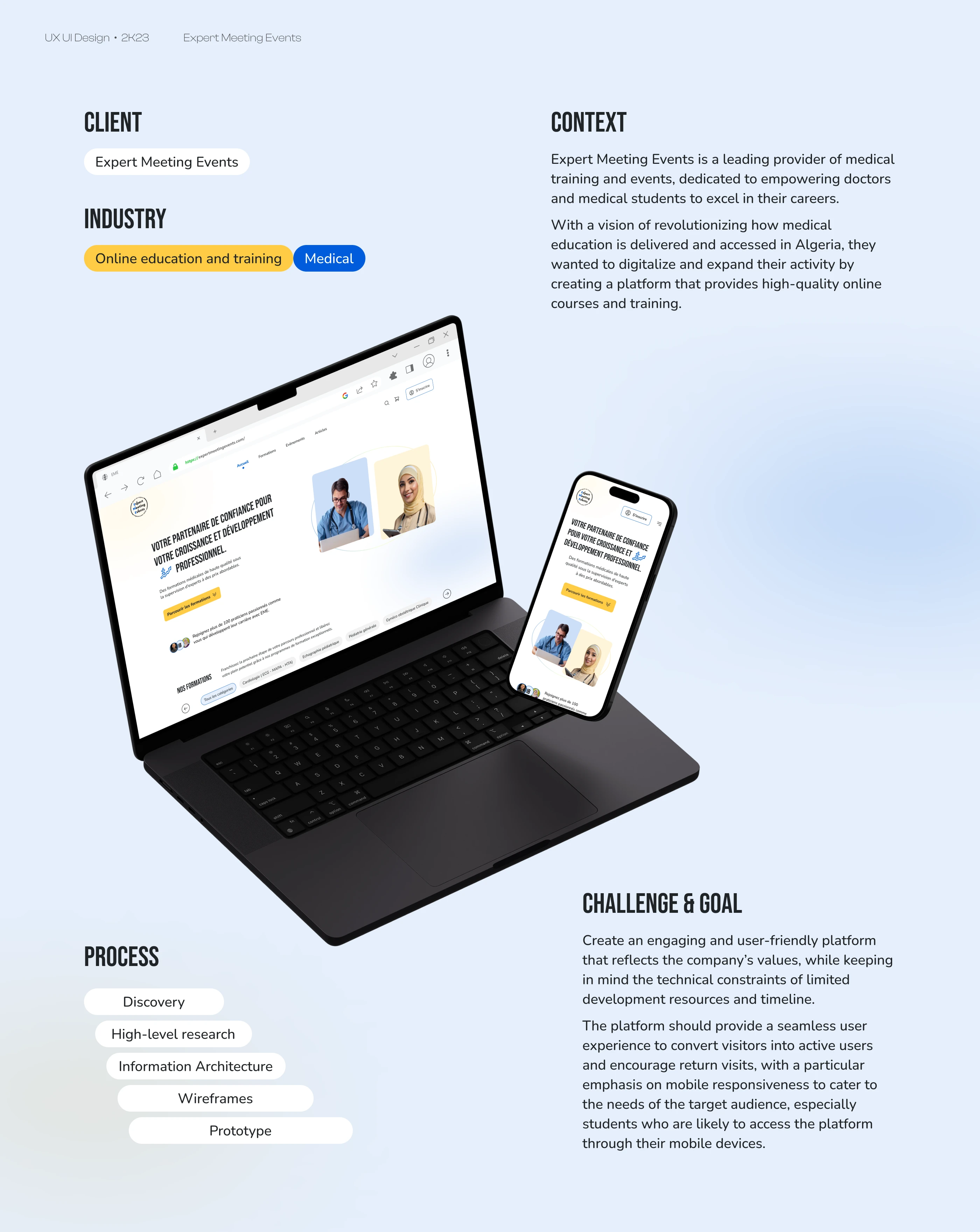 Expert Meeting Events wanted to digitalize and expand their activity by creating a platform that provides high-quality online courses and training.