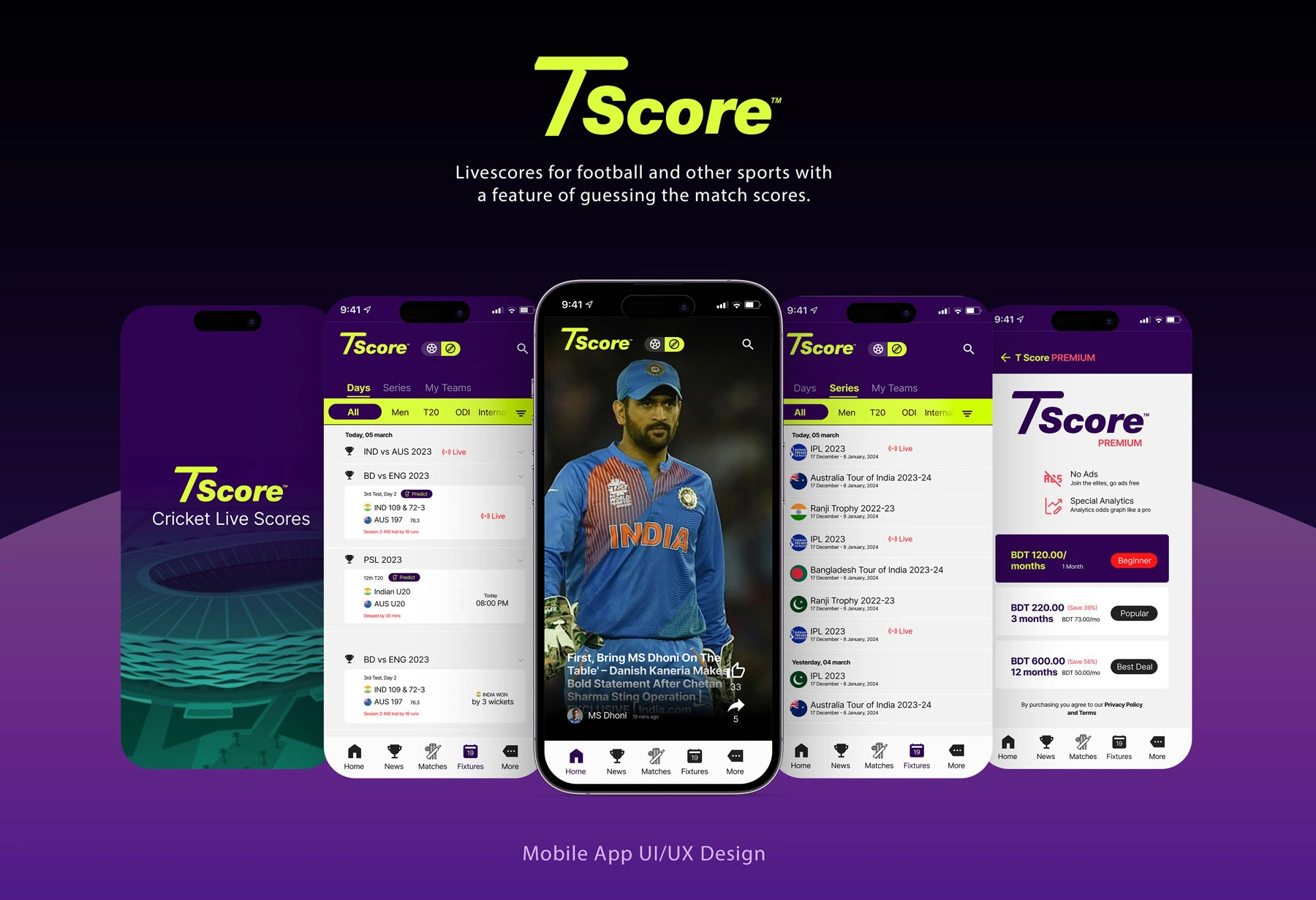 The T-score App UI/UX is a mobile application designed for sports enthusiasts who want to stay up to date with the latest scores and statistics of their favori…