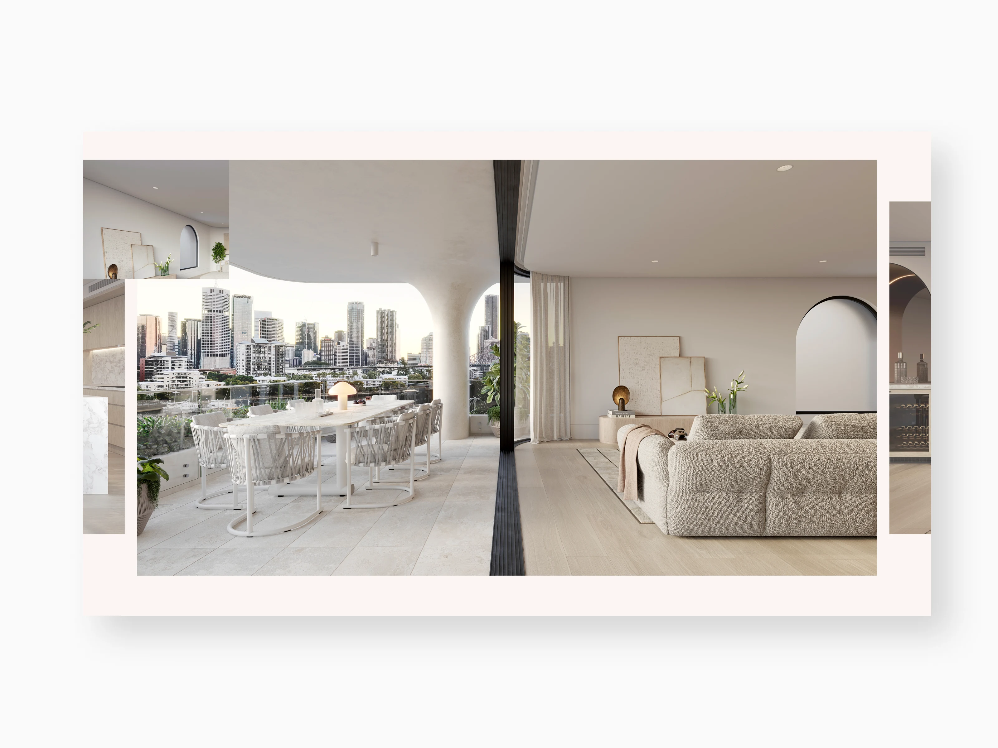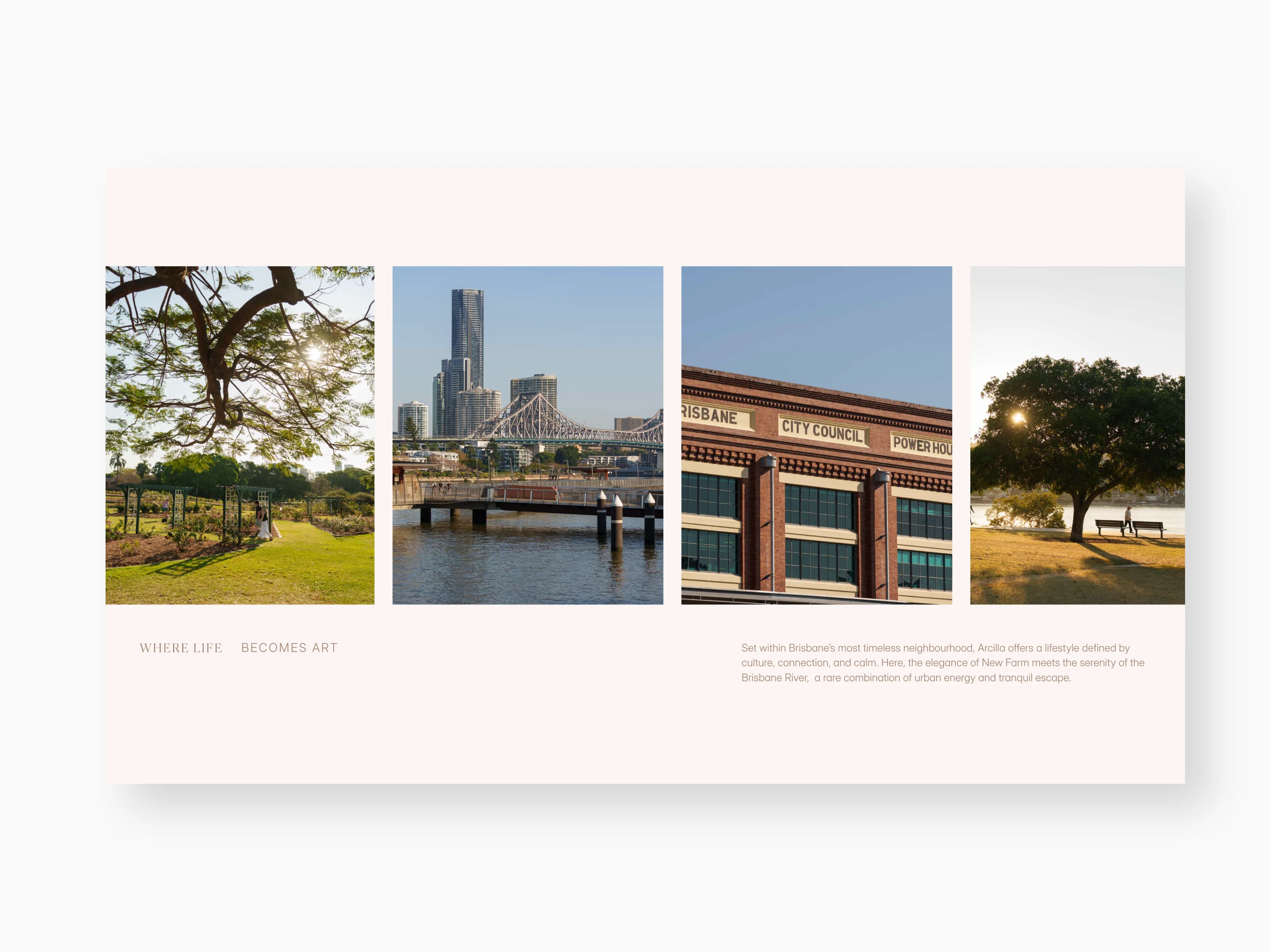 Neighborhood Integration: Curated a "Where Life Becomes Art" gallery, pairing project visuals with iconic New Farm landmarks to emphasize the rare combination of urban energy and tranquil escape.