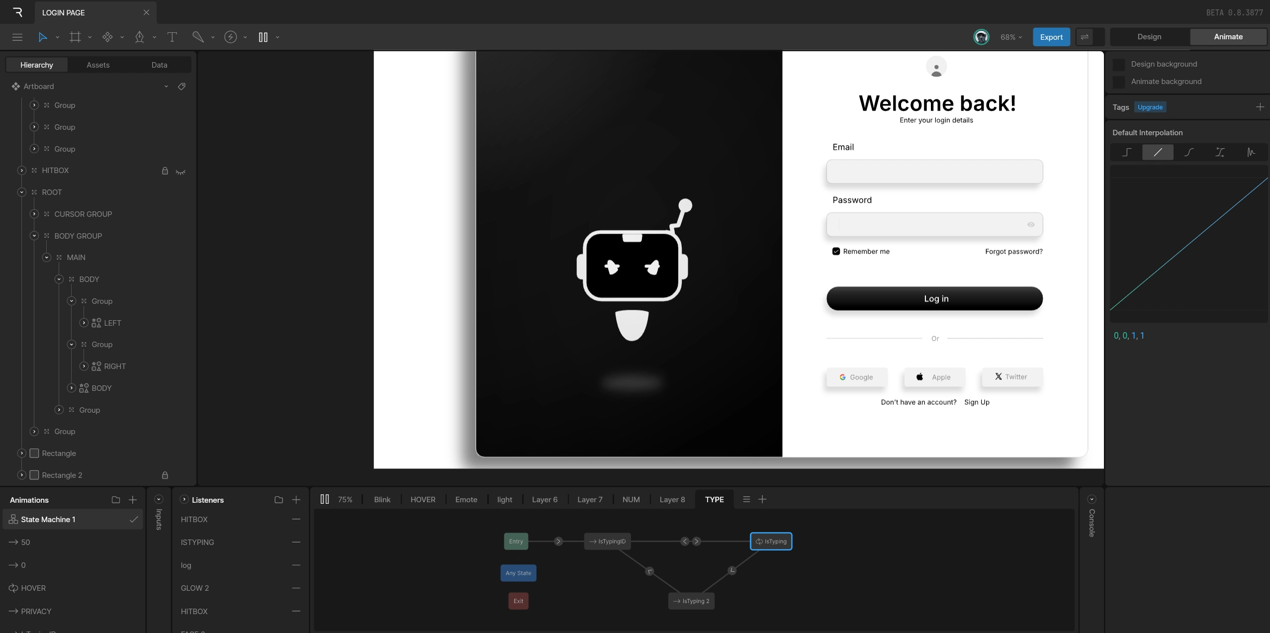 Designed an interactive login page with a reactive animation for enhanced user interaction.