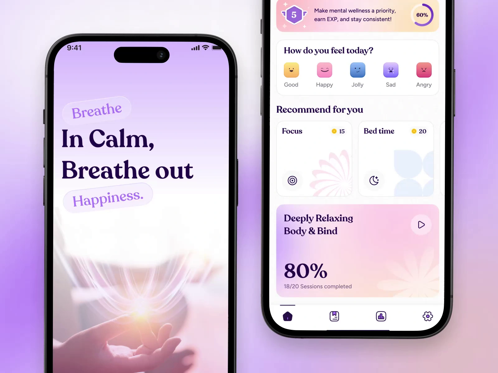 Key features include guided meditation sessions, breathing exercises, and personalized recommendations, all wrapped in a clean, intuitive interface that supports users’ daily well-being and helps them cultivate a balanced, mindful lifestyle.