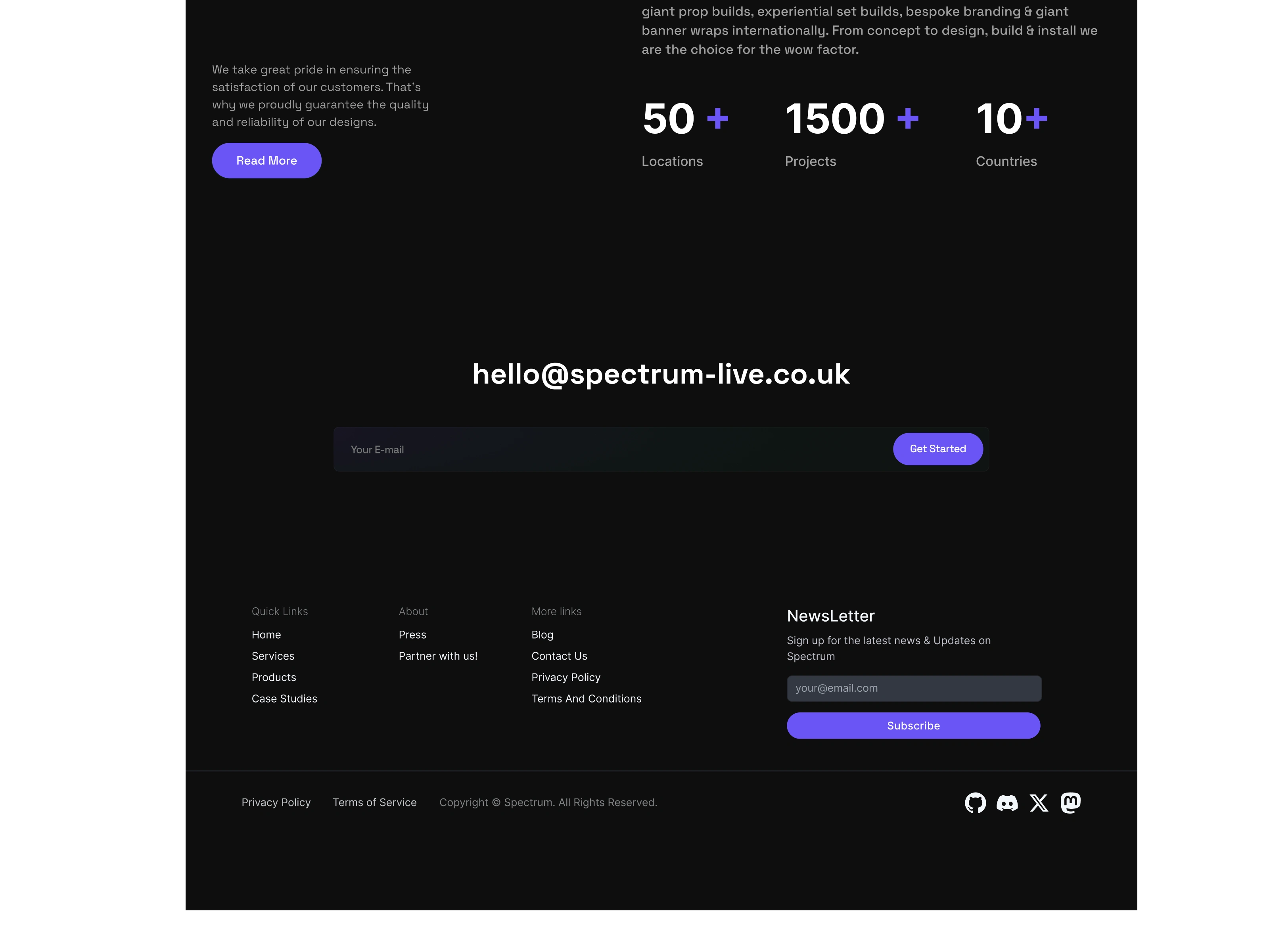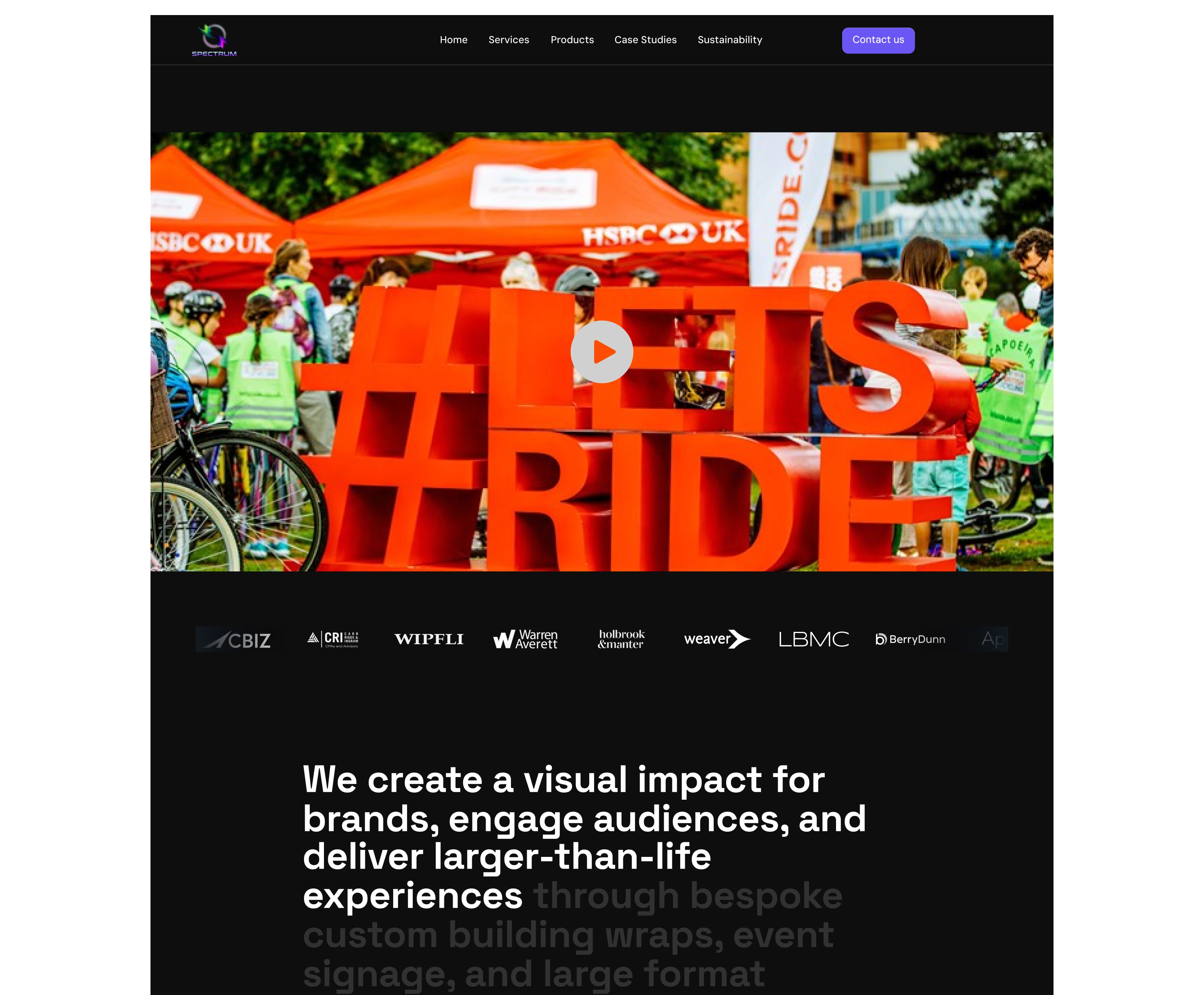 I redesigned the landing page for Spectrum Live, a multi-award-winning event branding agency known for fan engagement, rigging, sets & props, building wraps, signage, and large-scale event branding.