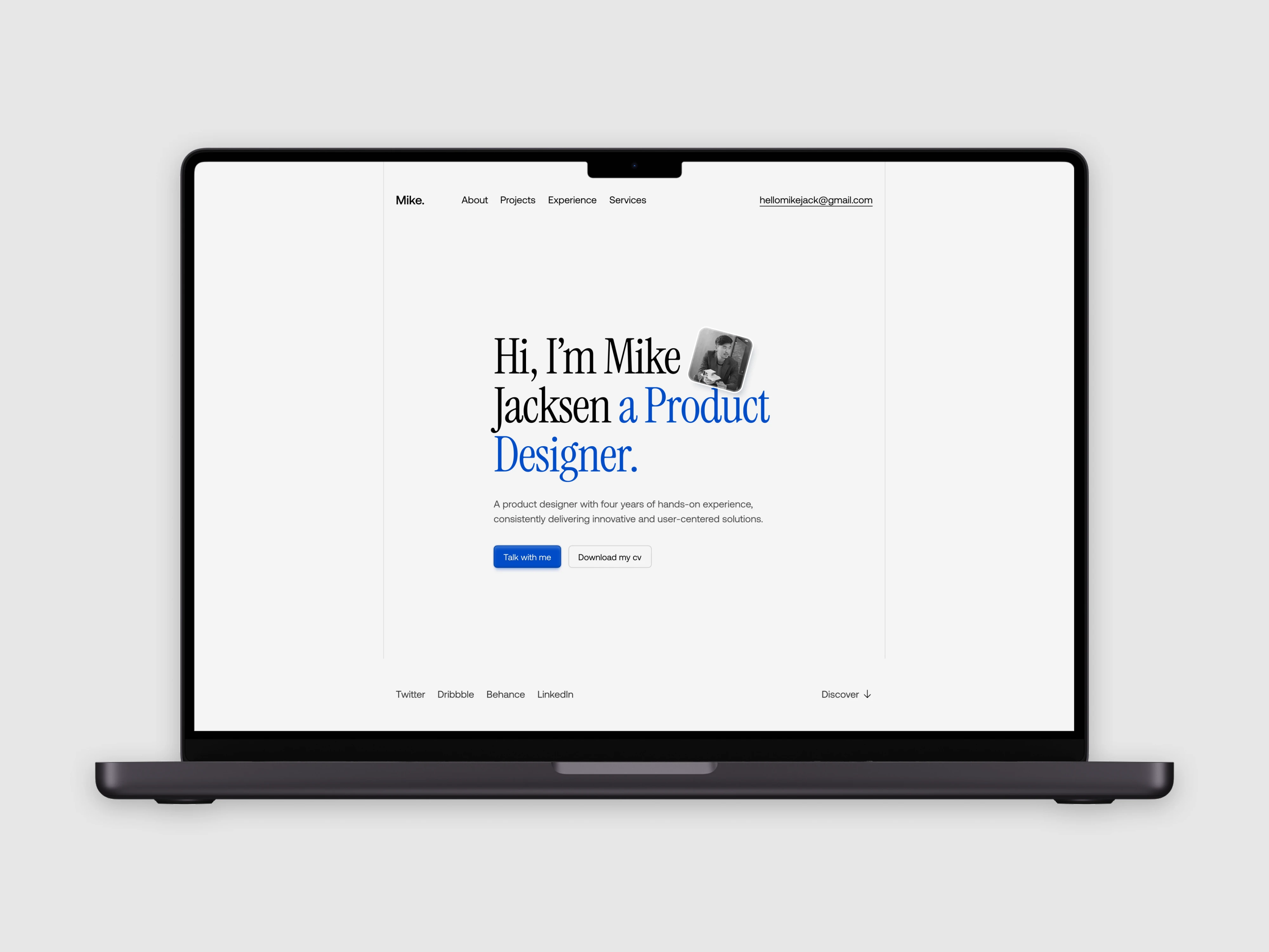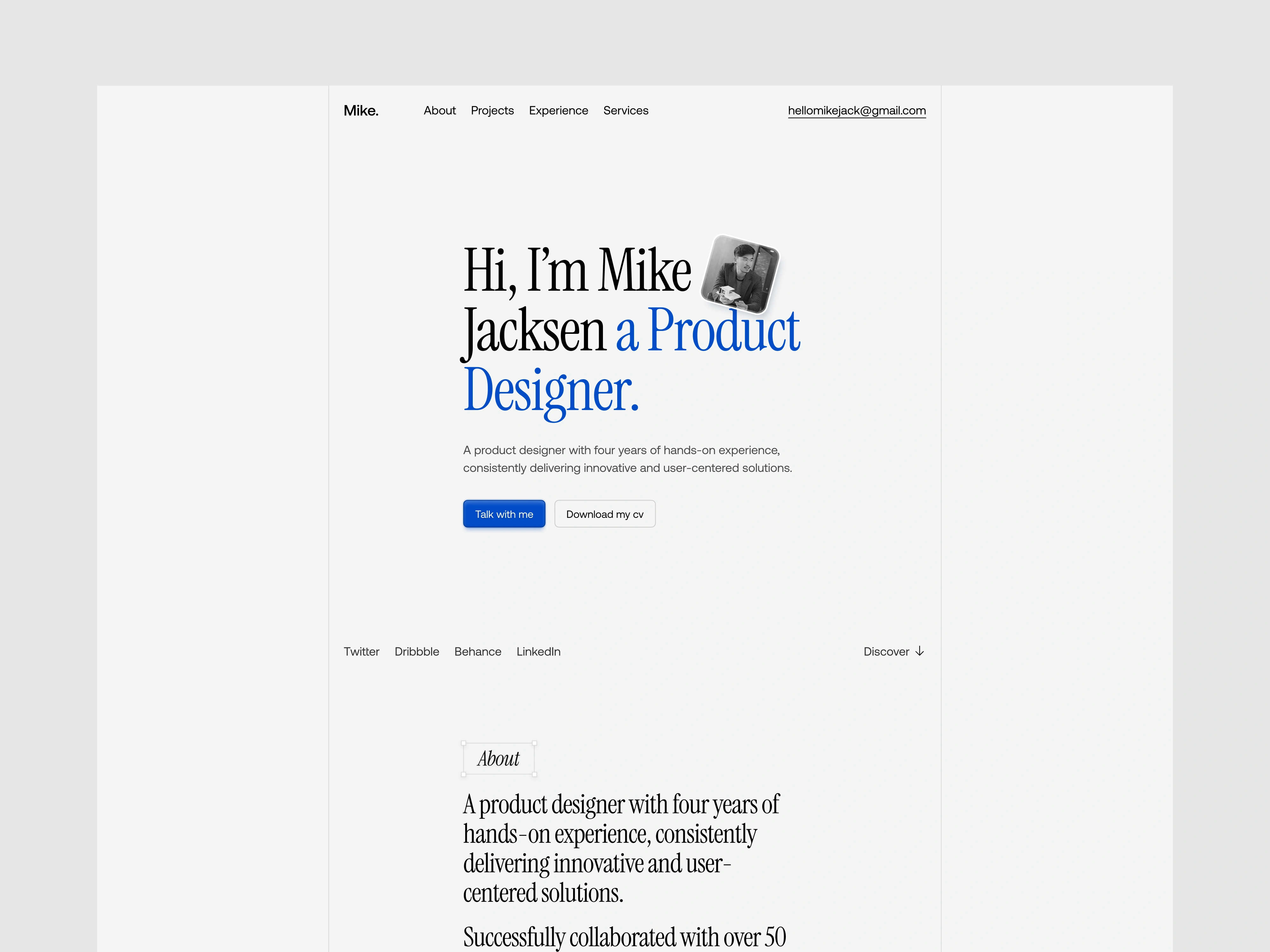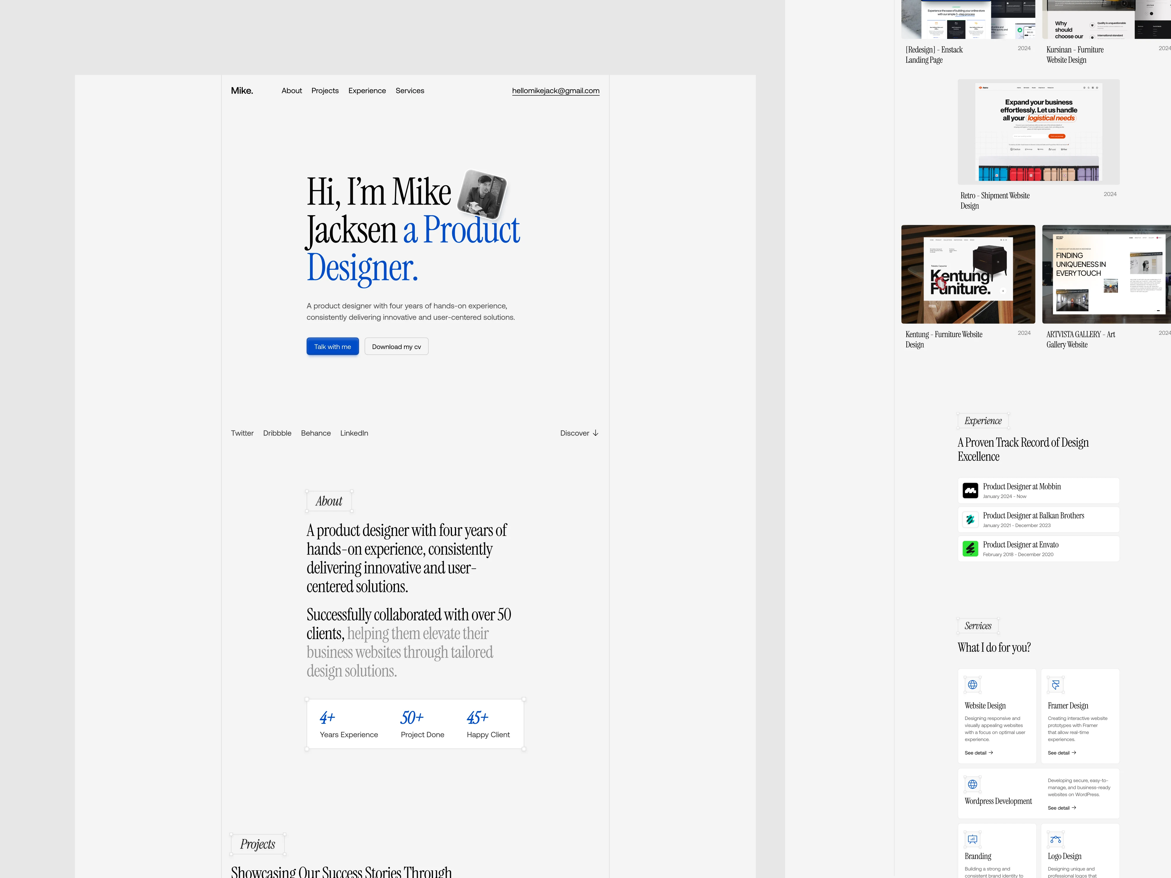 Presenting a uniquely modern landing page for a product designer. This design blends creativity and innovation, offering a clean, visually striking interface that highlights the designer's work and expertise. Perfect for showcasing portfolio pieces while ensuring an engaging user experience.