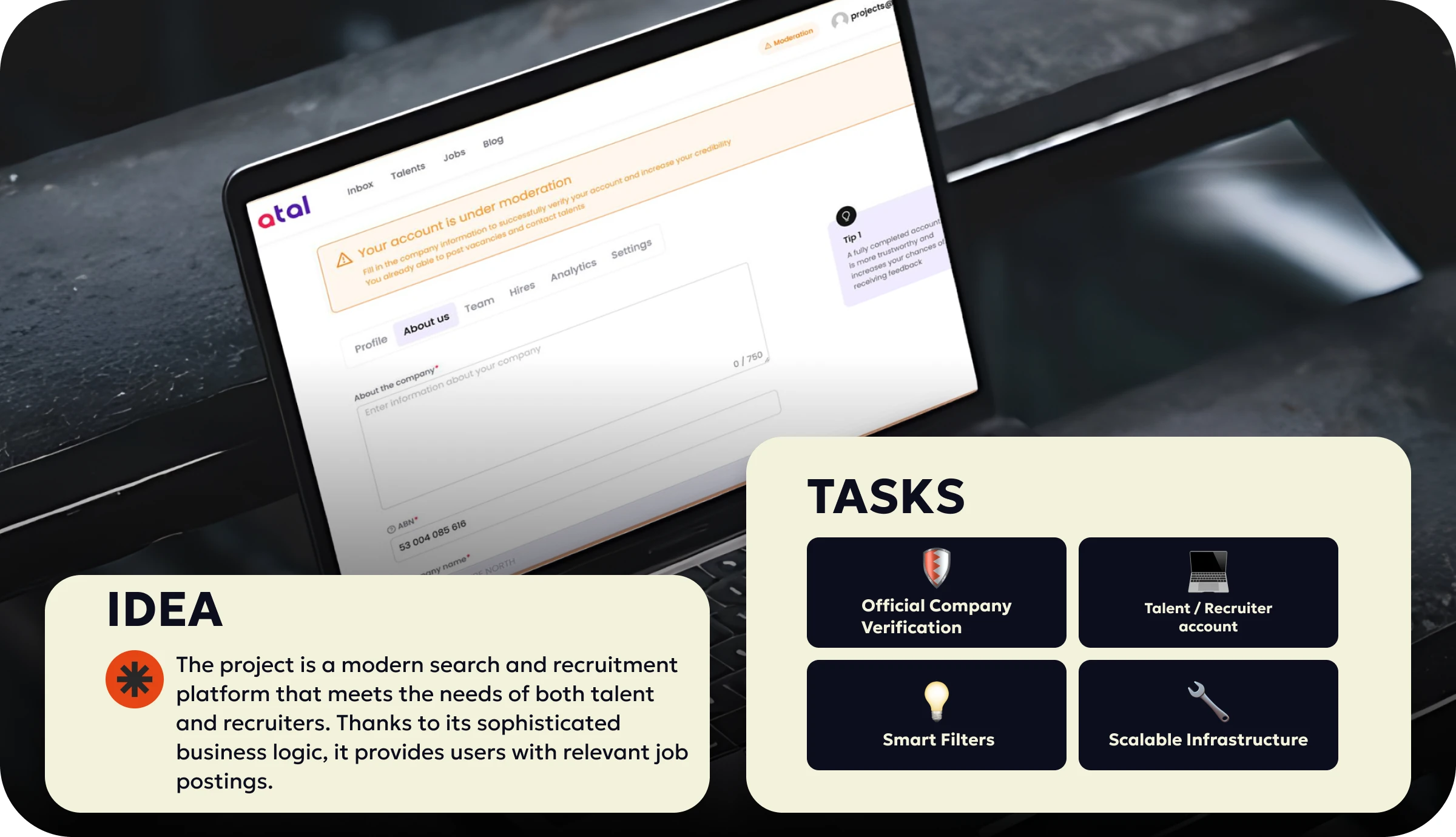 Through a freelance platform, a client was found with the need for a service to simplify the recruitment and job search process in Australia. One of the tasks was to verify if a company is official and registered
