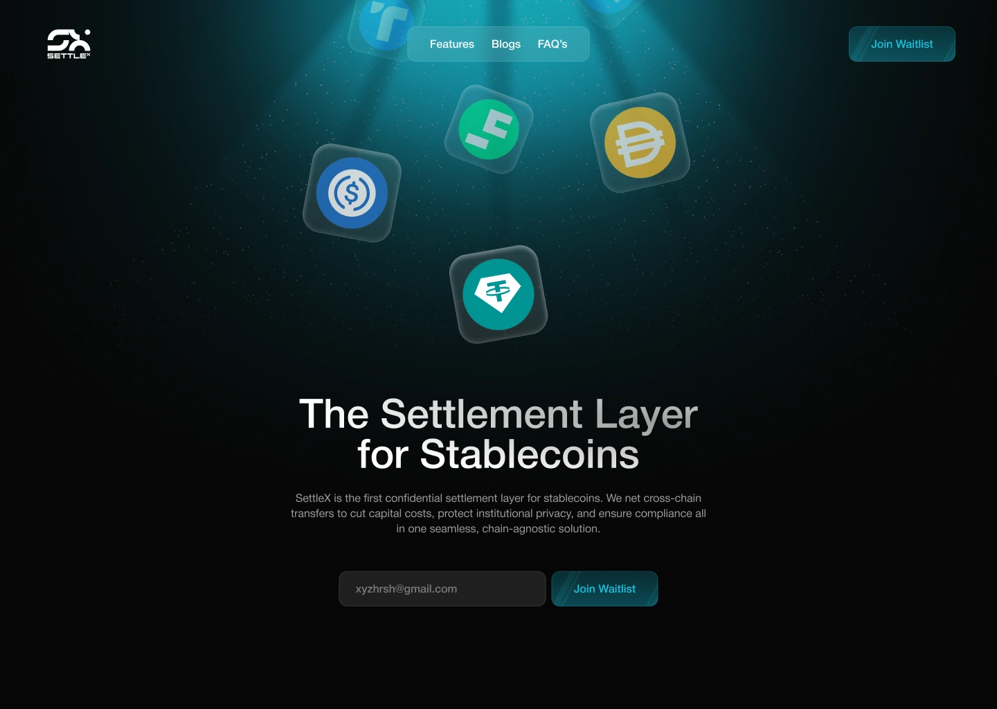 Designed a sleek landing page for Settlex, a confidential stablecoin settlement layer. Focused on clarity, clean UI, and strong call-to-action flow.