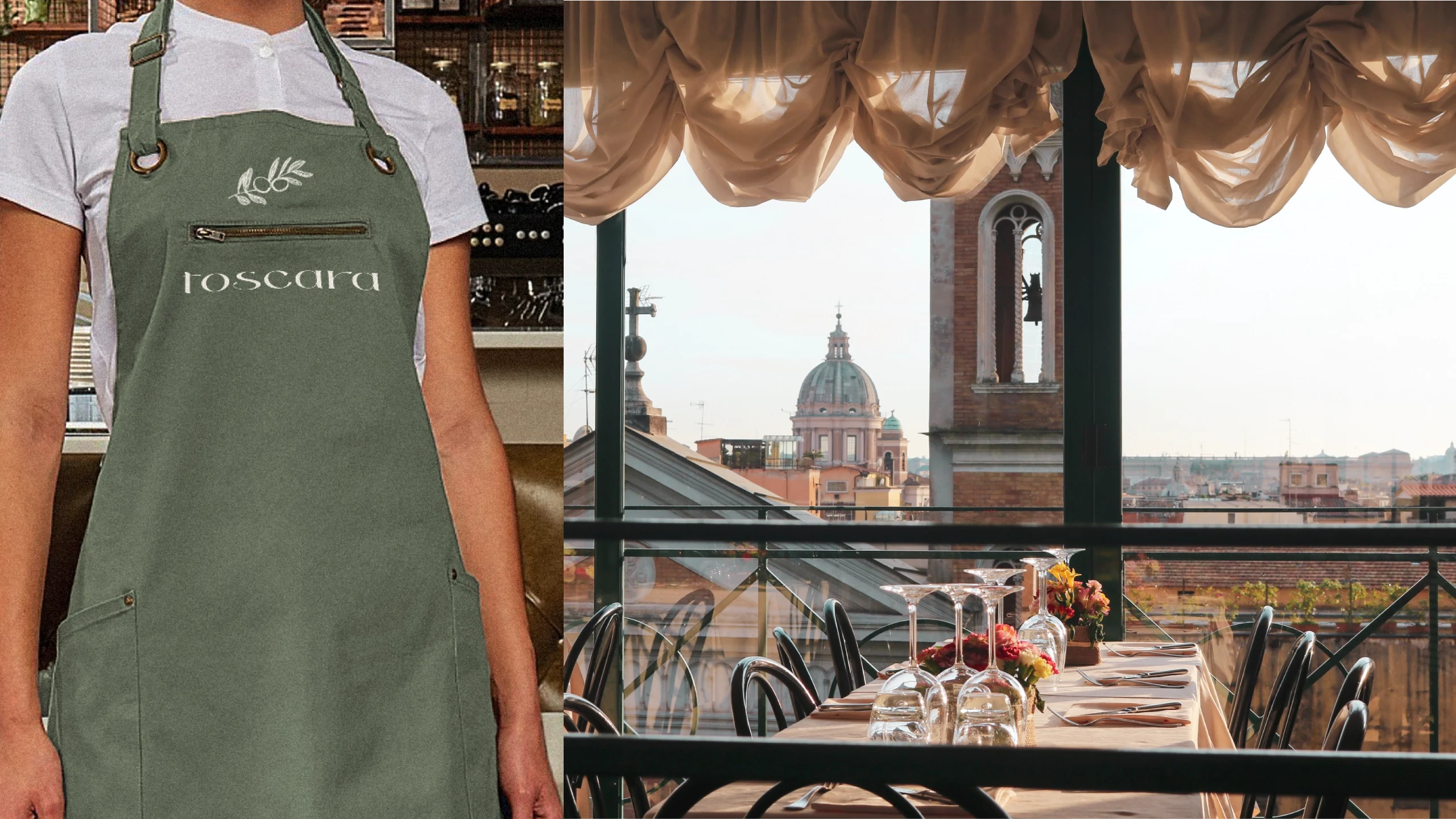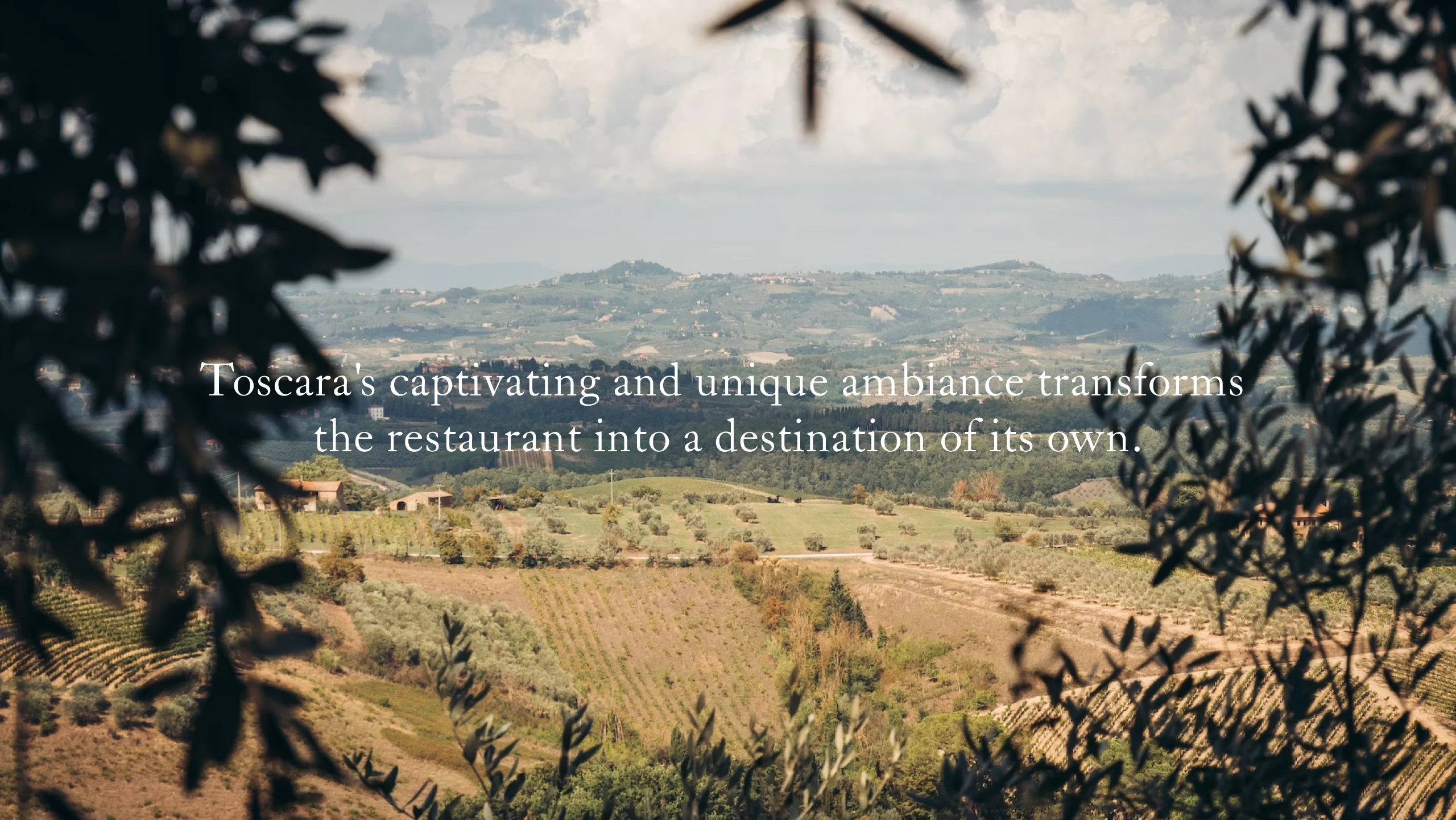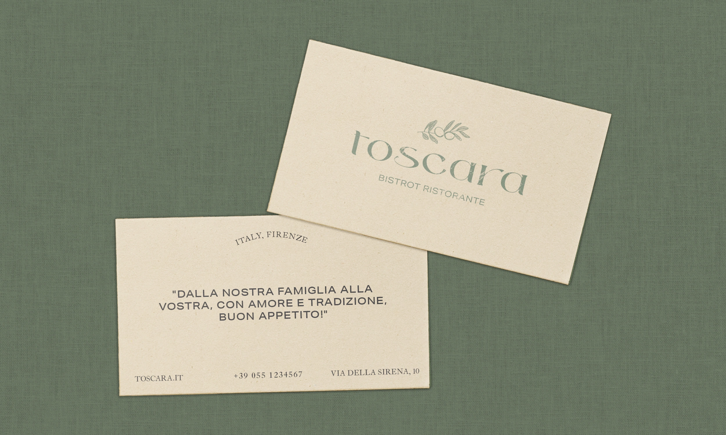 Branded Toscara to capture Tuscan culinary tradition, emphasizing olives and authentic flavors, reflecting Tuscany's heritage and serene ambiance.