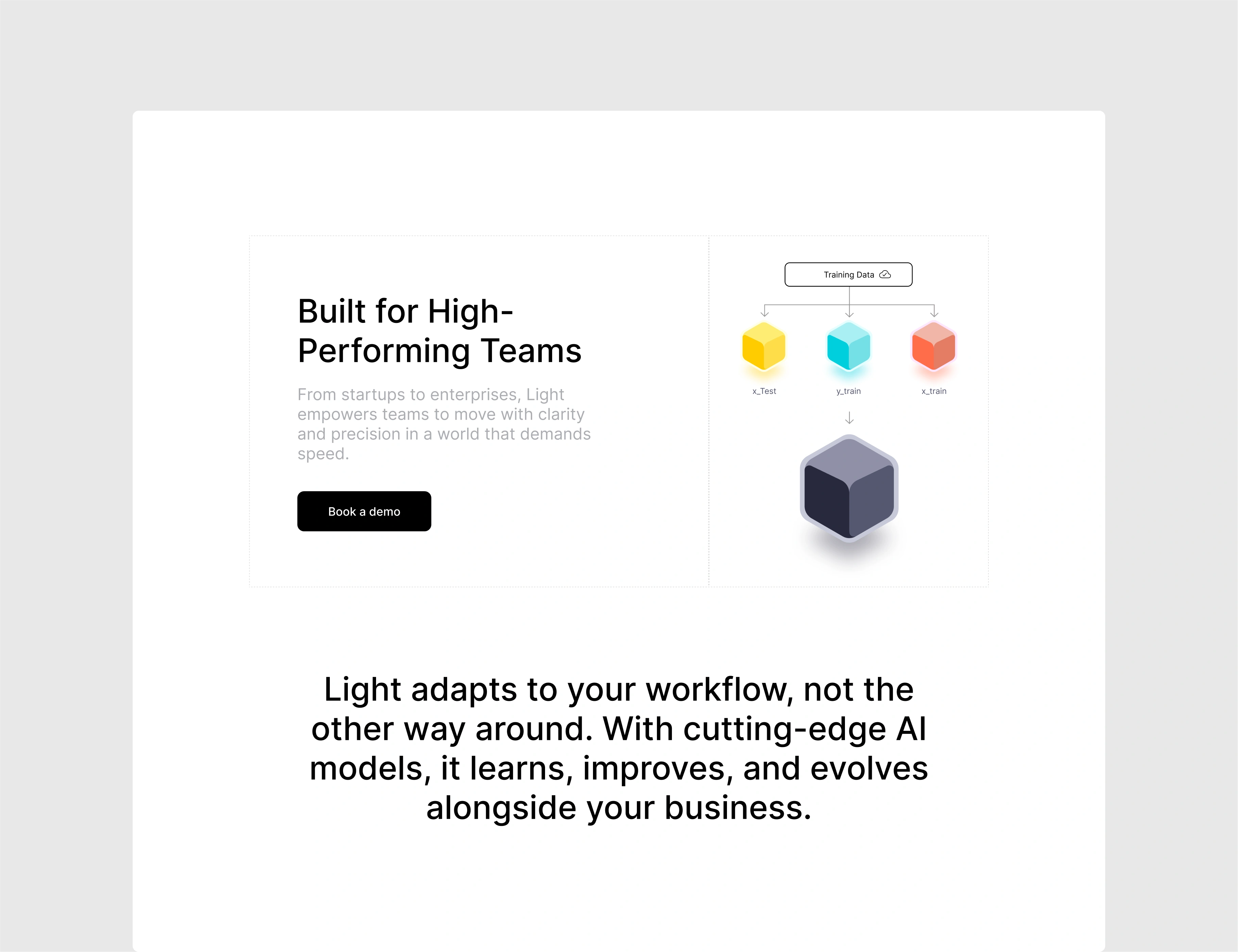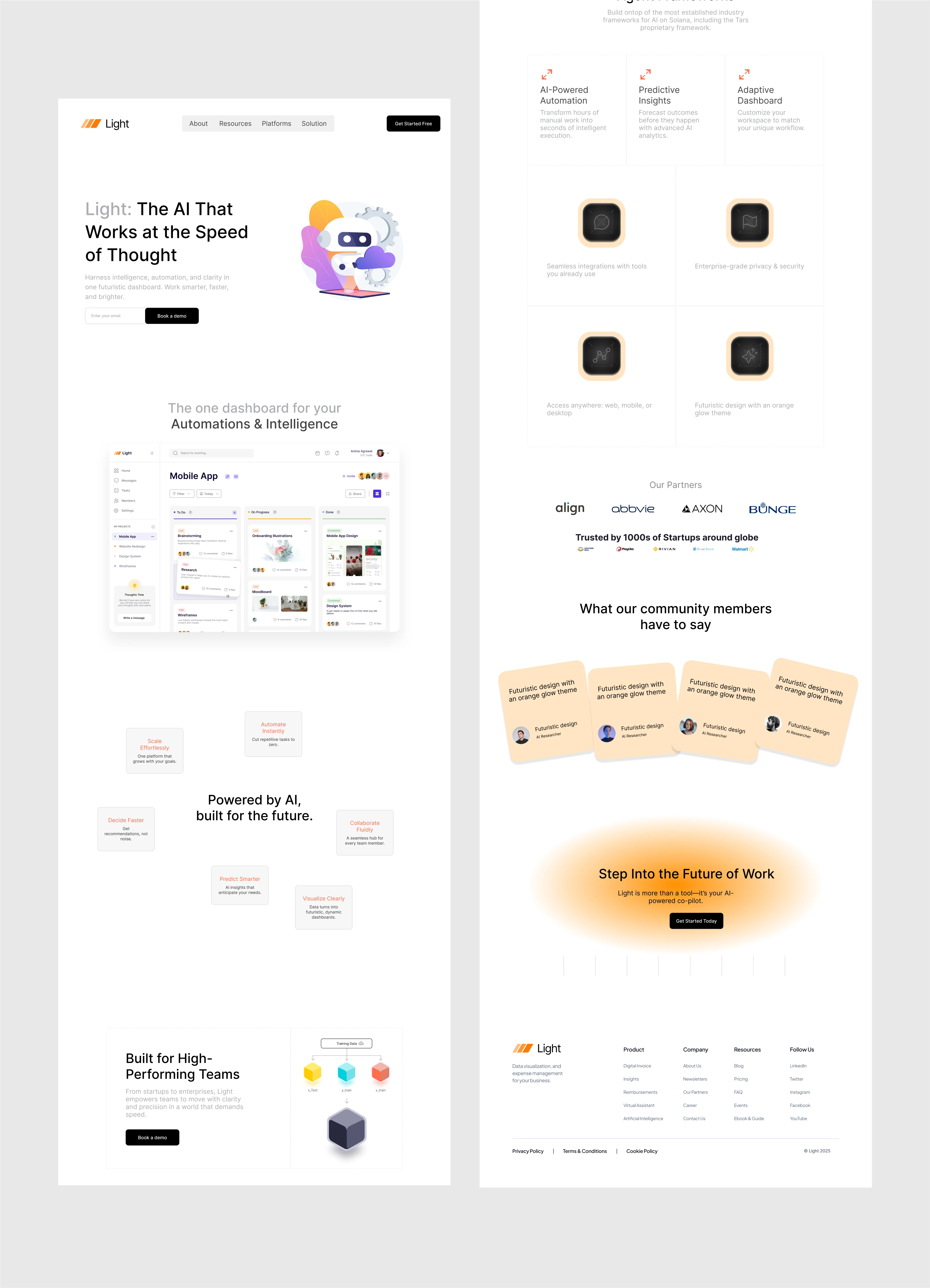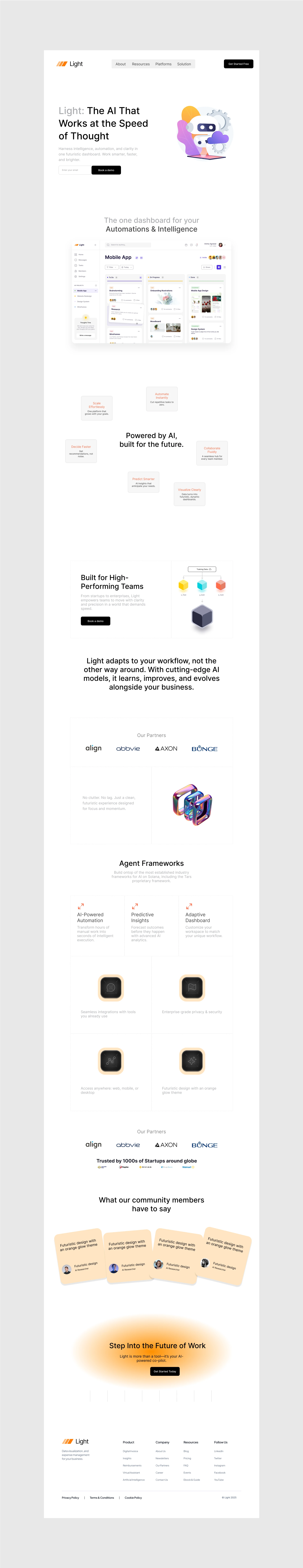 I leaned into bold typography, dark-futuristic visuals, and smooth motion to mirror the product’s speed. Every section was built to flow like thought itself; fast, seamless, and intuitive. In Webflow, I engineered responsive layouts, micro-interactions, and structured CTAs so the story didn’t just look futuristic, it converted.