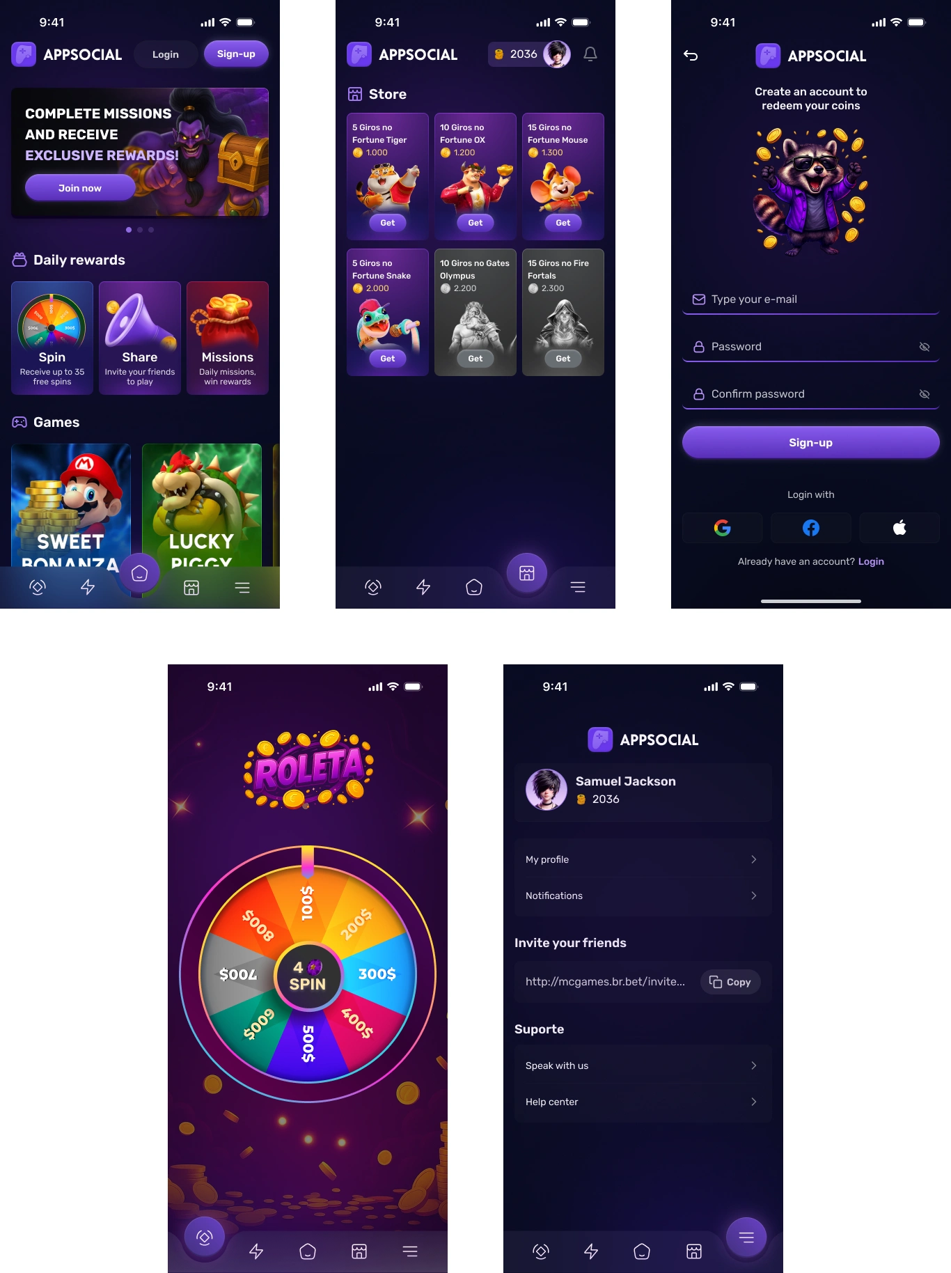 Mobile UI/UX for a gaming app. Focused on visual hierarchy for rewards, optimized sign-up flows, and a modern gamer aesthetic to elevate the user experience.