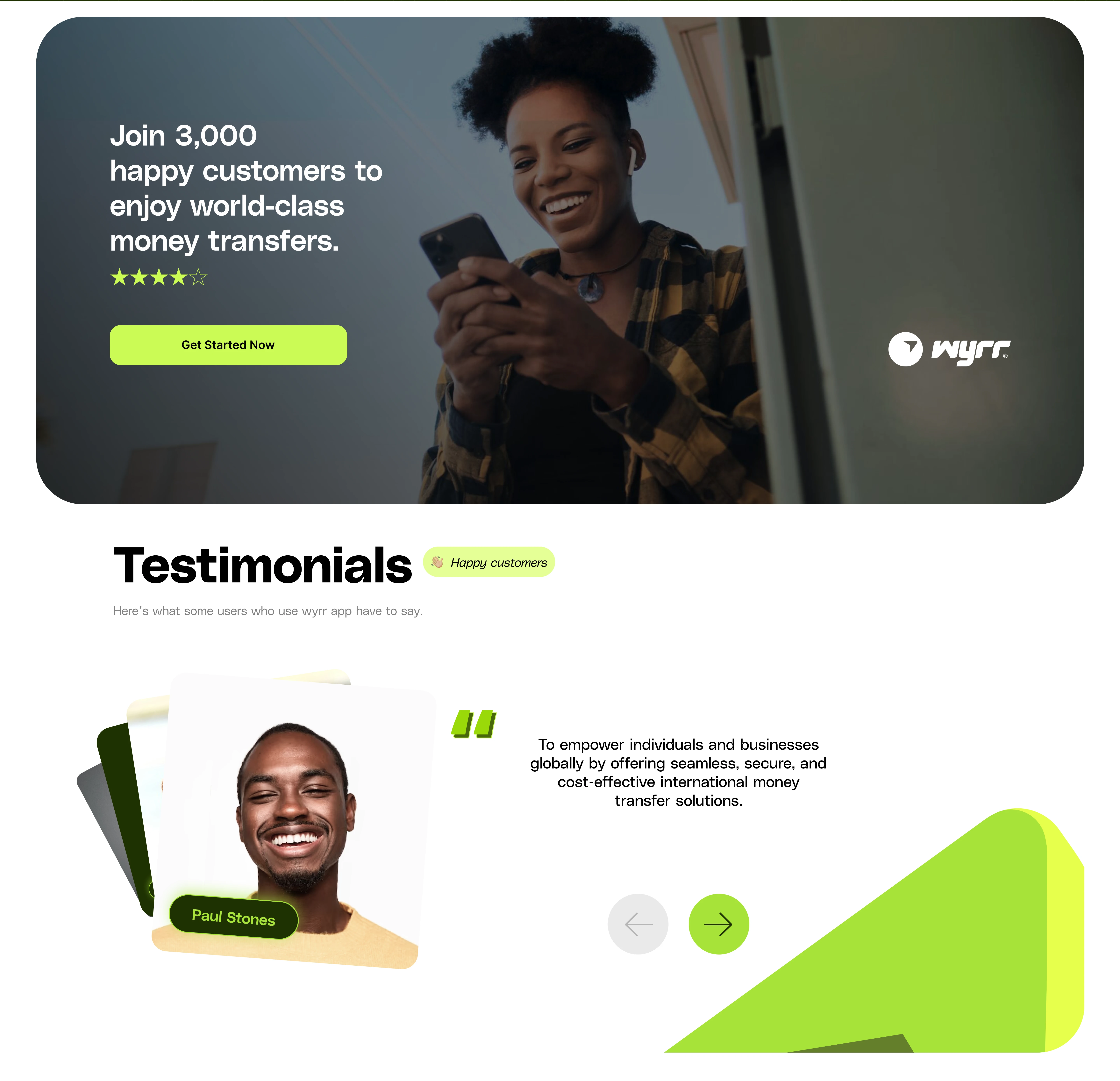 I revamped the Wyrr homepage with captivating 3D design elements, enhancing interactivity for a more engaging experience. Streamlined text ensures effortless navigation, while strategic use of colors delineates sections, establishing a visually pleasing hierarchy. Through experimentation with various landing page styles, one ultimately resonated with me.