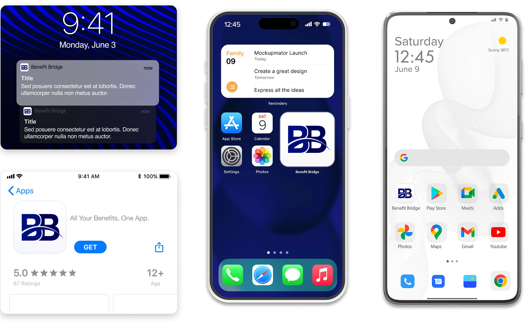 To bring the brand and design system into a real product environment, we developed app experience concepts showcasing how users interact with Benefit Bridge through a clear, intuitive, and human-centered interface.
