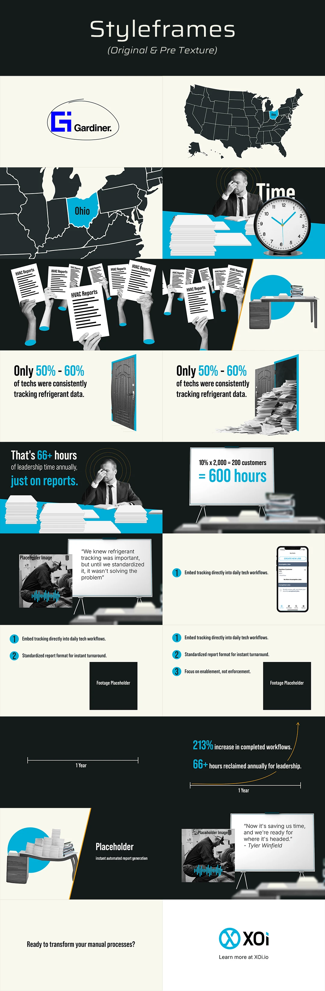The goal of the project was to showcase the growth of Gardiner since they started using the XOi service. I worked with the 9Miles team as the creative lead.