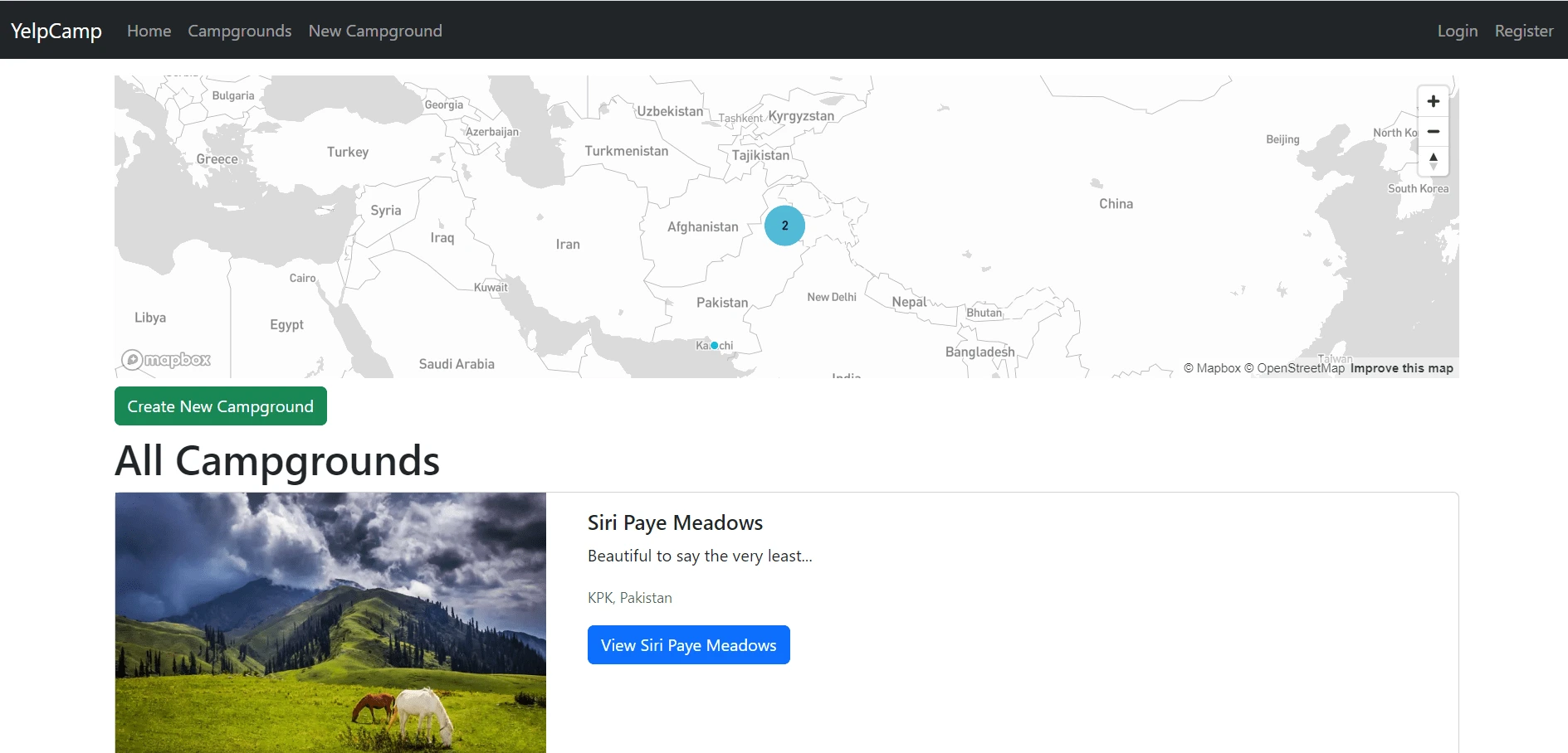 Users could register and then login to post new campgrounds, edit campgrounds they posted and give reviews on campgrounds posted by others.