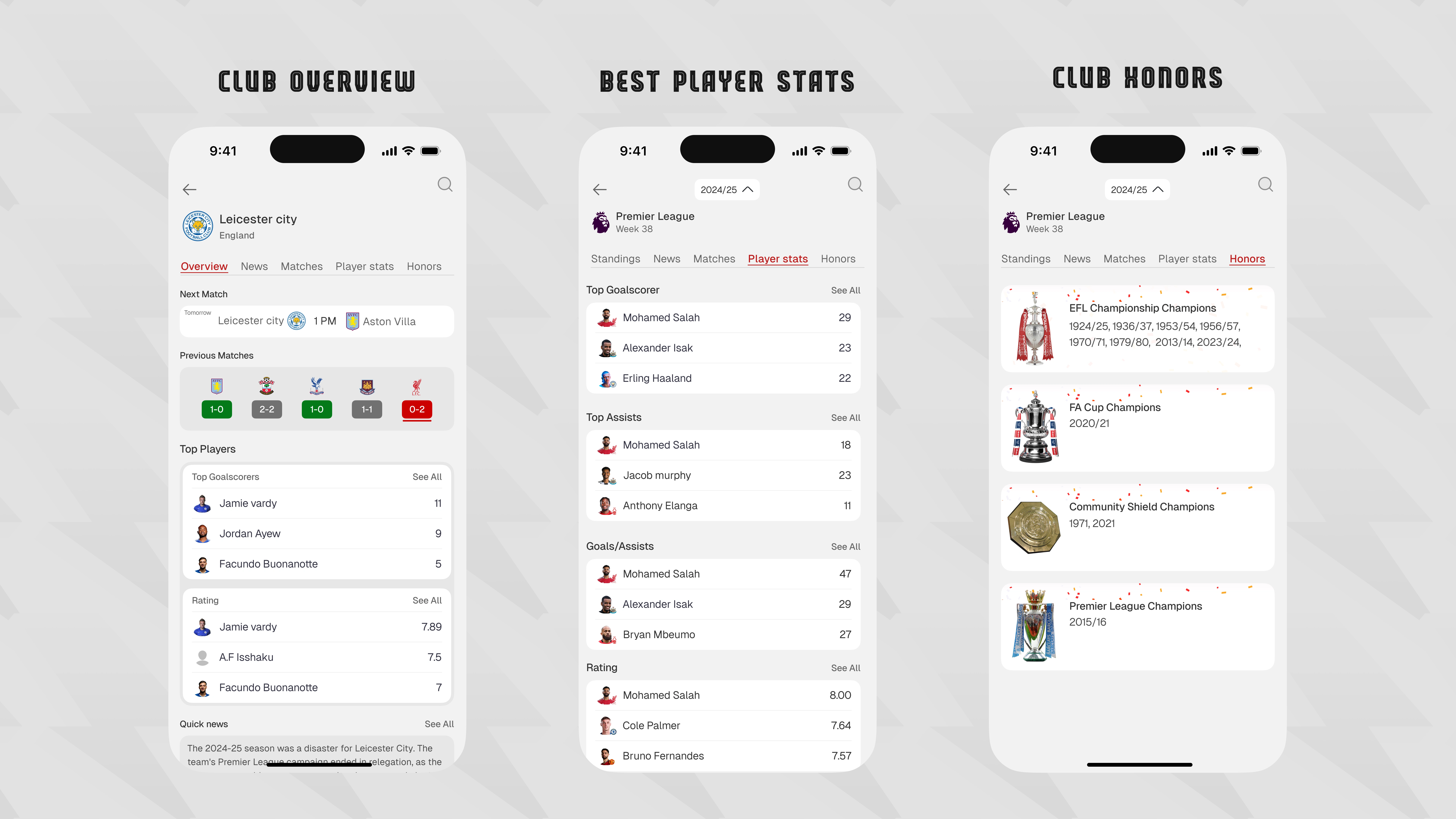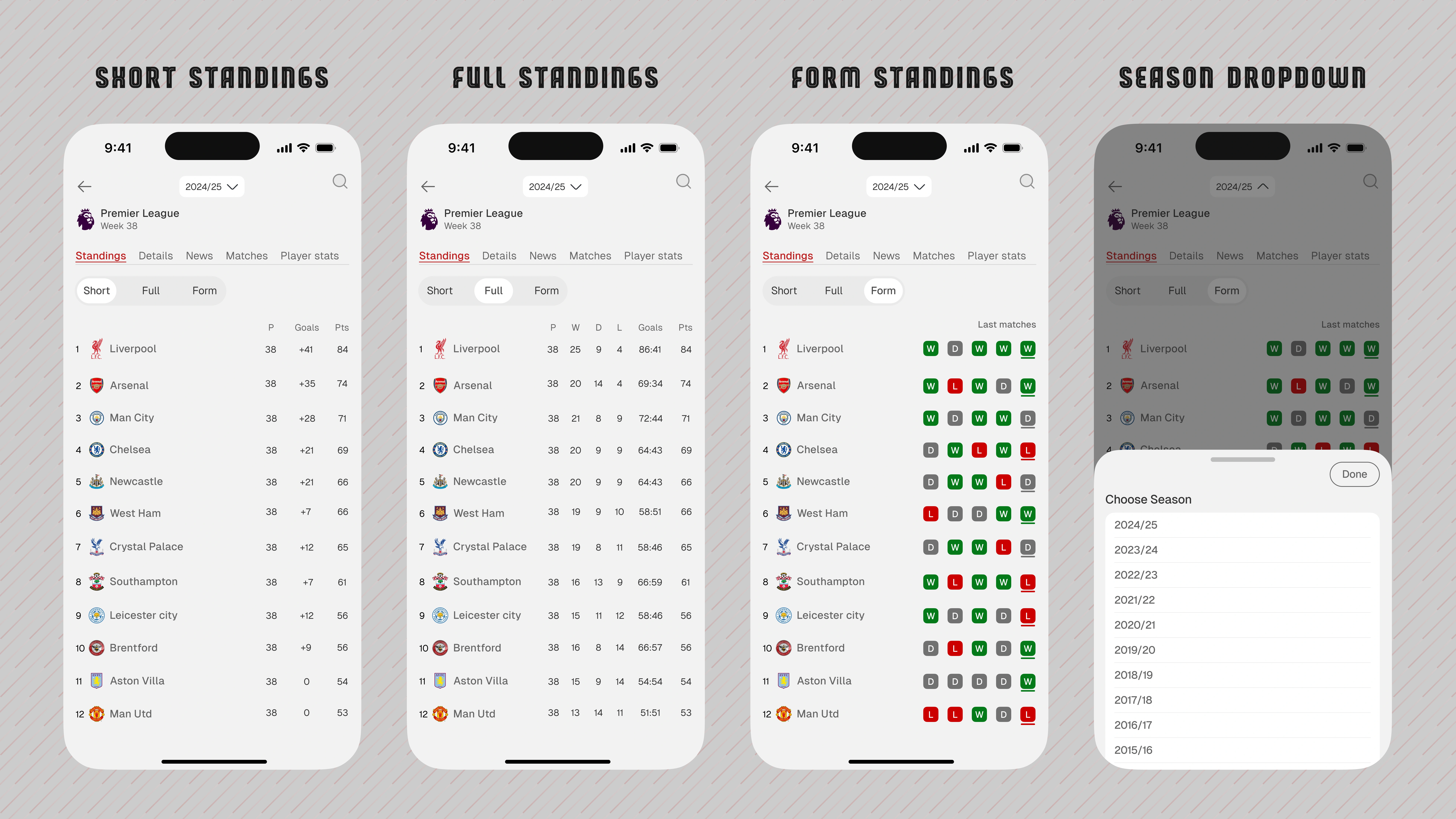 I also added multiple features to the app so the user can check out details from previous matches, upcoming matches, their favorite team and player’s trophy cabinet, H2H record against a rival team, league standing, form table and so much more.