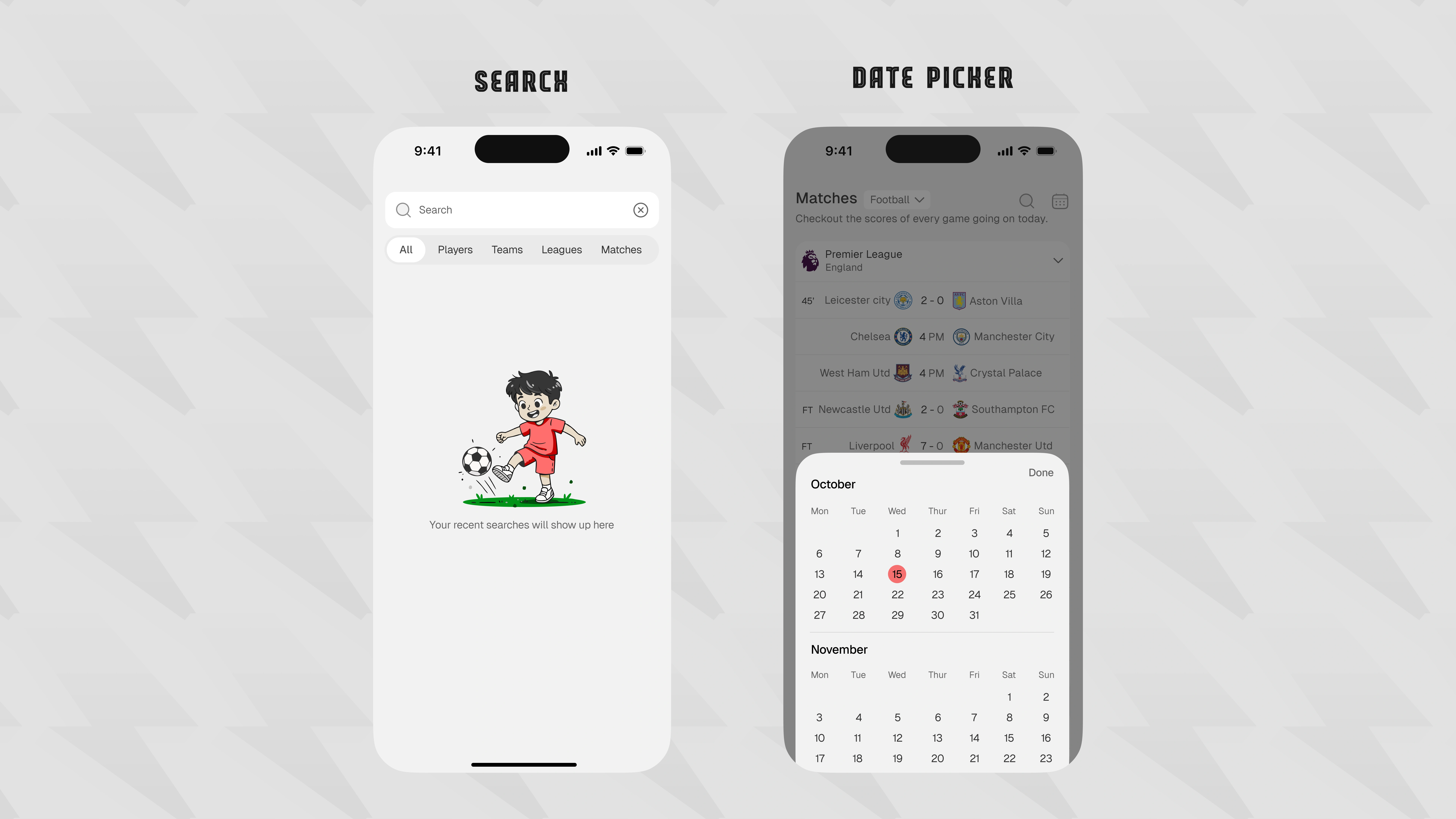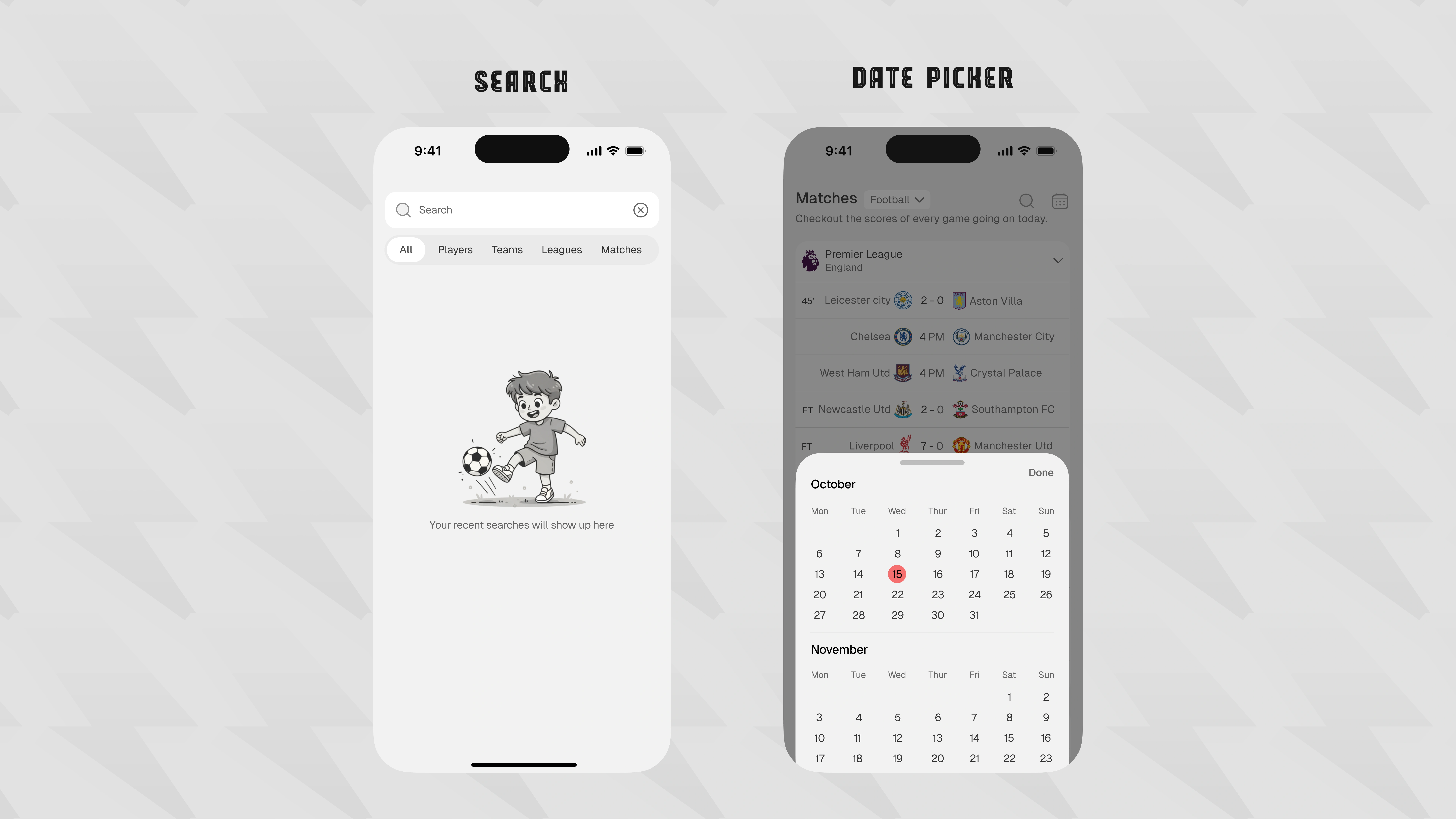As a football fan myself since i was a little boy, it was very easy for me to approach the problem from the perspective of the user. I understand the emotions and the feelings a fan goes through when their favorite team is either winning or losing.