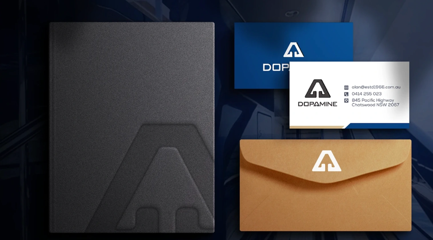 The final identity gives Dopamine Charter a clear and recognizable visual presence.
